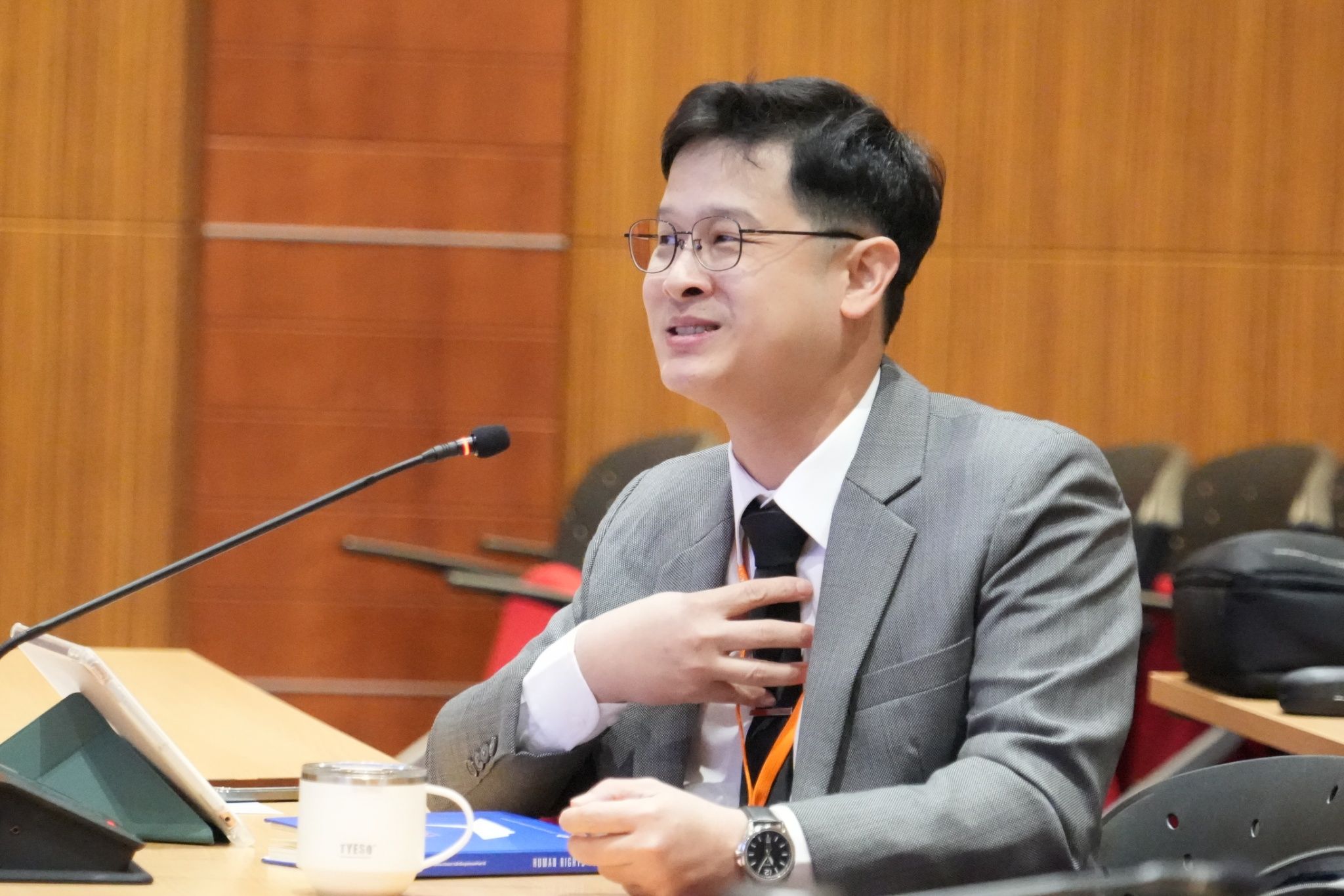 เมื่อวันที่ 29 มกราคม 2569 เวลา 09.00 น.  นายภาณุวัฒน์  ทองสุข นายจุมพล  ขุนอ่อน รองเลขาธิการคณะกรรมการสิทธิมนุษยชนแห่งชาติ พร้อมด้วย นางสาววรพร  นรเศรษฐวิวัฒน์ ที่ปรึกษาสำนักงานคณะกรรมการสิทธิมนุษยชนแห่งชาติ ด้านสิทธิมนุษยชน ร่วมการเสวนาในหัวข้อ “บทบาท หน้าที่ และอำนาจของสถาบันสิทธิมนุษยชนในประเทศไทย” ในหลักสูตรประกาศนียบัตรสิทธิมนุษยชนสำหรับนักบริหารระดับสูง รุ่นที่ 5 (ปสม.5) ณ ห้องสัตมรามาธิราช ชั้น 5 สถาบันพระปกเกล้า