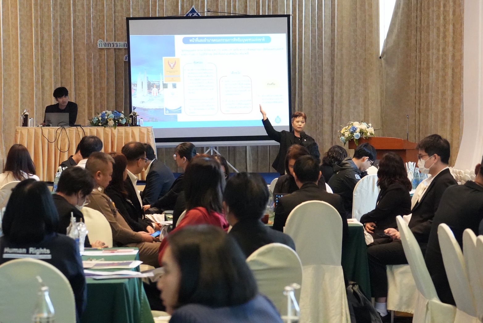 เมื่อวันที่ 13 - 14 มีนาคม 2569 สำนักงานคณะกรรมการสิทธิมนุษยชนแห่งชาติ (สำนักงาน กสม.) จัดกิจกรรมส่งเสริมสิทธิมนุษยชนเนื่องในวันยุติการเลือกปฏิบัติสากล ณ โรงแรมรามาการ์เด้นส์ กรุงเทพมหานคร โดยมีวัตถุประสงค์เพื่อเสริมสร้างความรู้ ความเข้าใจเกี่ยวกับหลักสิทธิมนุษยชนและหลักการไม่เลือกปฏิบัติ รวมถึงเป็นเวทีแลกเปลี่ยนความคิดเห็นระหว่างหน่วยงานภาครัฐ เพื่อนำไปสู่การปฏิบัติงานอย่างเหมาะสม ตลอดจนส่งเสริมความร่วมมือด้านสิทธิมนุษยชน โดยมีนางสาวสุภัทรา  นาคะผิว กรรมการสิทธิมนุษยชนแห่งชาติ เป็นประธานกล่าวเปิดและบรรยายพิเศษ เรื่อง ความรู้พื้นฐานด้านสิทธิมนุษยชนกับการขจัดการเลือกปฏิบัติ พร้อมทั้งเป็นวิทยากร และนางสาววรพร  นรเศรษฐวิวัฒน์ ที่ปรึกษาสำนักงาน กสม. ด้านสิทธิมนุษยชน กล่าวชี้แจงวัตถุประสงค์การจัดกิจกรรม โดยมีผู้เข้าร่วมกิจกรรมจากหน่วยงานภาครัฐ ประกอบด้วย สำนักงานคณะกรรมการการศึกษาขั้นพื้นฐาน สำนักงานคณะกรรมการการอาชีวศึกษา สำนักงานคณะกรรมการการอุดมศึกษา กรมสวัสดิการและคุ้มครองแรงงาน สำนักงานประกันสังคม กรมการจัดหางาน กรมกิจการเด็กและเยาวชน กรมกิจการผู้สูงอายุ กรมพัฒนาสังคมและสวัสดิการกรมส่งเสริมและพัฒนาคุณภาพชีวิตคนพิการ กรมกิจการสตรีและสถาบันครอบครัว กรมคุ้มครองสิทธิและเสรีภาพ กรมราชทัณฑ์ กรมพินิจและคุ้มครองเด็กและเยาวชน กรมคุมประพฤติ สำนักงานกิจการยุติธรรม กรมควบคุมโรค กรมอนามัย กรมส่งเสริมการปกครองท้องถิ่น กรมที่ดิน สำนักงานตำรวจสอบสวนกลาง สำนักงานตรวจคนเข้าเมือง สำนักงานตำรวจนครบาล และเจ้าหน้าที่สำนักงาน กสม. รวมจำนวน 50 คน