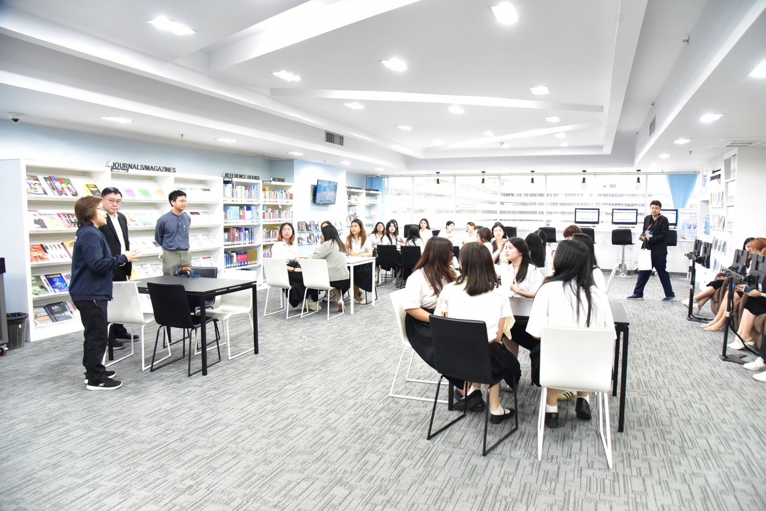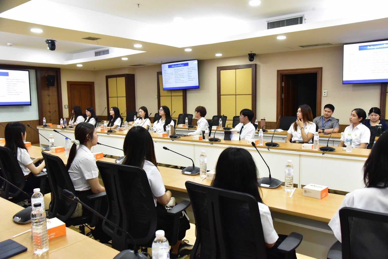 ผู้อำนวยการสำนักสิทธิมนุษยชนระหว่างประเทศได้นำเสนอภาพรวมเกี่ยวกับหลักการสิทธิมนุษยชน บทบาทของ กสม. ในการดำเนินงานด้านการคุ้มครองและส่งเสริมสิทธิมนุษยชน การตรวจสอบการละเมิดสิทธิมนุษยชน การแสวงหาข้อเท็จจริง กรอบความร่วมมือระหว่างสถาบันสิทธิมนุษยชนแห่งชาติ การจัดทำรายงานคู่ขนานตามพันธกรณีระหว่างประเทศ รวมถึงประเด็นสิทธิทางดิจิทัลและความเชื่อมโยงกับปัญญาประดิษฐ์ โดยคณาจารย์และนักศึกษาได้ซักถามและร่วมแลกเปลี่ยนมุมมองต่อประเด็นสิทธิมนุษยชนต่าง ๆ ด้วย นอกจากนี้ คณะศึกษาดูงานยังได้เยี่ยมชมศูนย์สารสนเทศสิทธิมนุษยชน โดยได้รับฟังการบรรยายจากผู้แทนสำนักดิจิทัลสิทธิมนุษยชนเกี่ยวกับการพัฒนาระบบเทคโนโลยีสารสนเทศของ กสม. พร้อมทั้งศึกษากระบวนการรับเรื่องร้องเรียนของ กสม. ซึ่งเป็นส่วนสำคัญในการสนับสนุนการดำเนินงานด้านการคุ้มครองสิทธิมนุษยชนให้เป็นไปอย่างมีประสิทธิภาพ โดยผู้แทนสำนักรับเรื่องร้องเรียนและประสานการคุ้มครองสิทธิมนุษยชนเป็นผู้บรรยายให้แก่คณะ