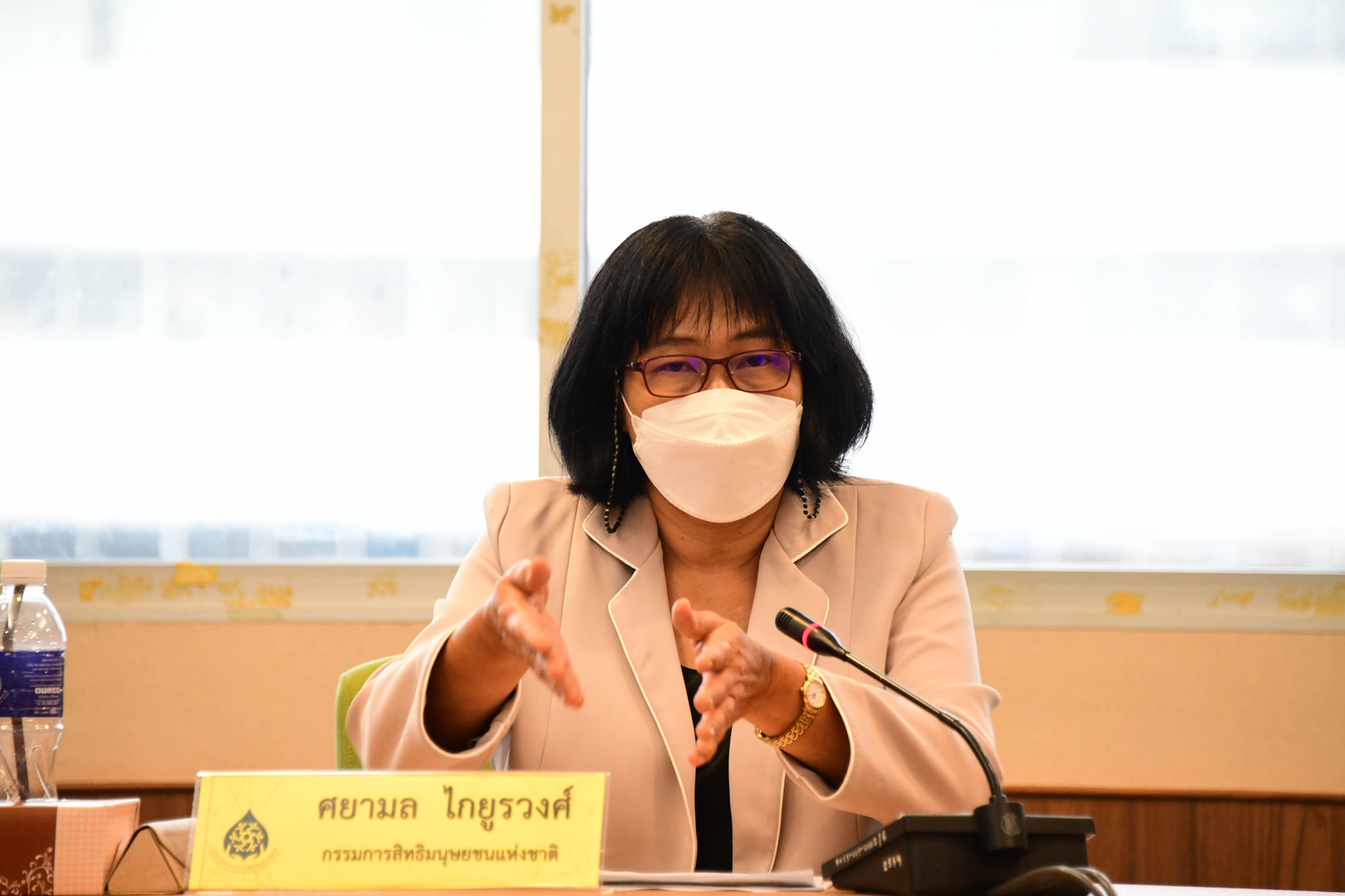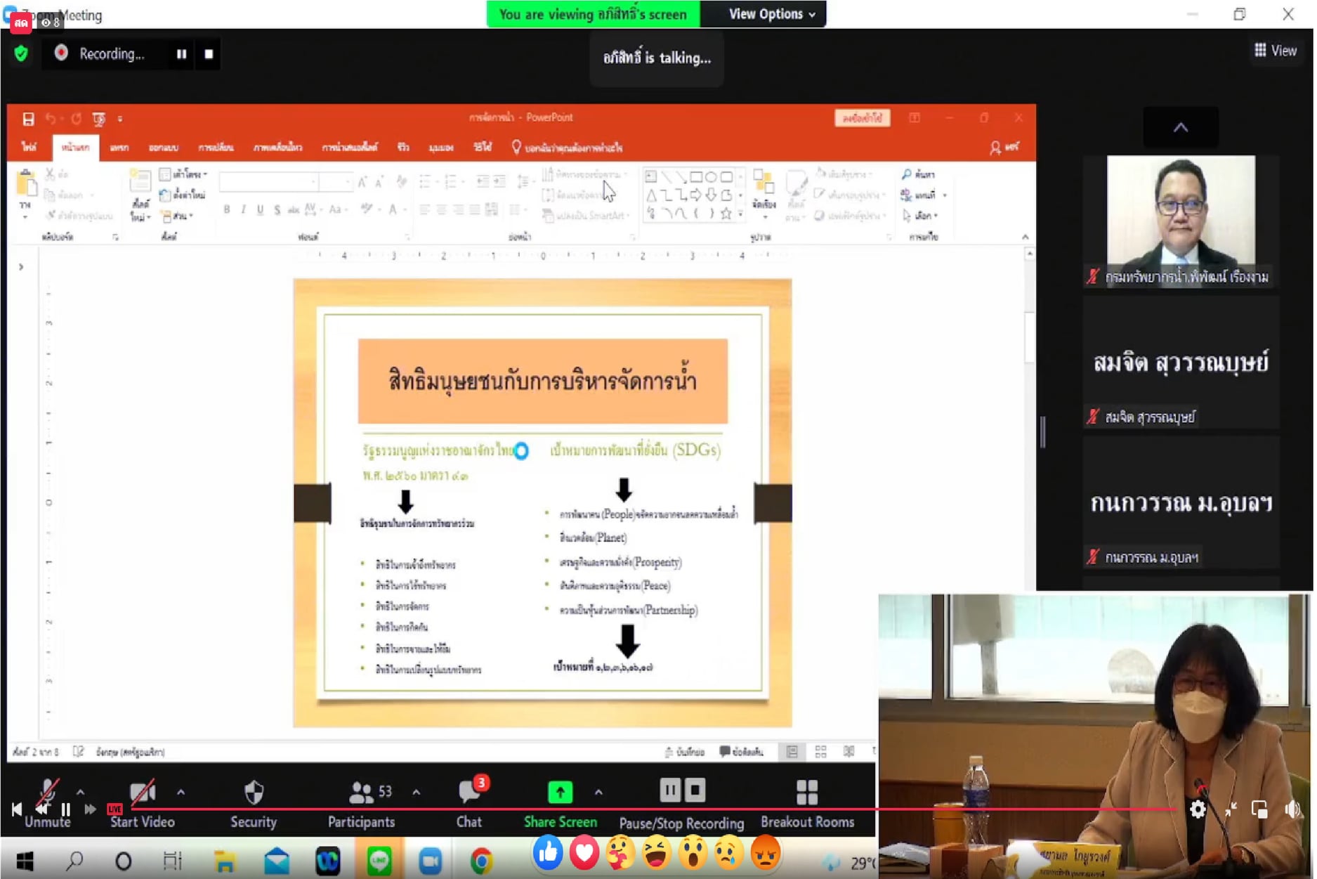 วันที่ 21 เมษายน 2565 คณะกรรมการสิทธิมนุษยชนแห่งชาติ (กสม.) ร่วมกับ ศูนย์ศึกษาสันติภาพและความขัดแย้ง สถาบันวิจัยสังคม จุฬาลงกรณ์มหาวิทยาลัย ศูนย์ศึกษาชาติพันธุ์และการพัฒนา มหาวิทยาลัยเชียงใหม่ และศูนย์จัดการและบริการข้อมูลสาธารณะ วิทยาลัยการเมืองการปกครอง มหาวิทยาลัยมหาสารคาม จัดเวทีเสวนา “Policy Dialogue ก้าวสู่ปีที่ 5 พระราชบัญญัติน้ำแห่งชาติ พ.ศ. 2561 : สิทธิมนุษยชนในการบริหารจัดการน้ำเพื่อการพัฒนาที่ยั่งยืน” โดยมีวัตถุประสงค์เพื่อสนับสนุนให้เกิดการแลกเปลี่ยนข้อมูลระหว่างหน่วยงานรัฐ ภาคประชาสังคม และนักวิชาการเพื่อร่วมกันประเมินสถานการณ์น้ำและปัญหาการบริหารจัดการน้ำ ตลอดจนระดมความคิดเห็นในการกำหนดแนวทางการบริหารจัดการน้ำบนฐานสิทธิมนุษยชนและการพัฒนาที่ยั่งยืน ณ ห้องประชุม 709 สำนักงาน กสม. และผ่านระบบออนไลน์