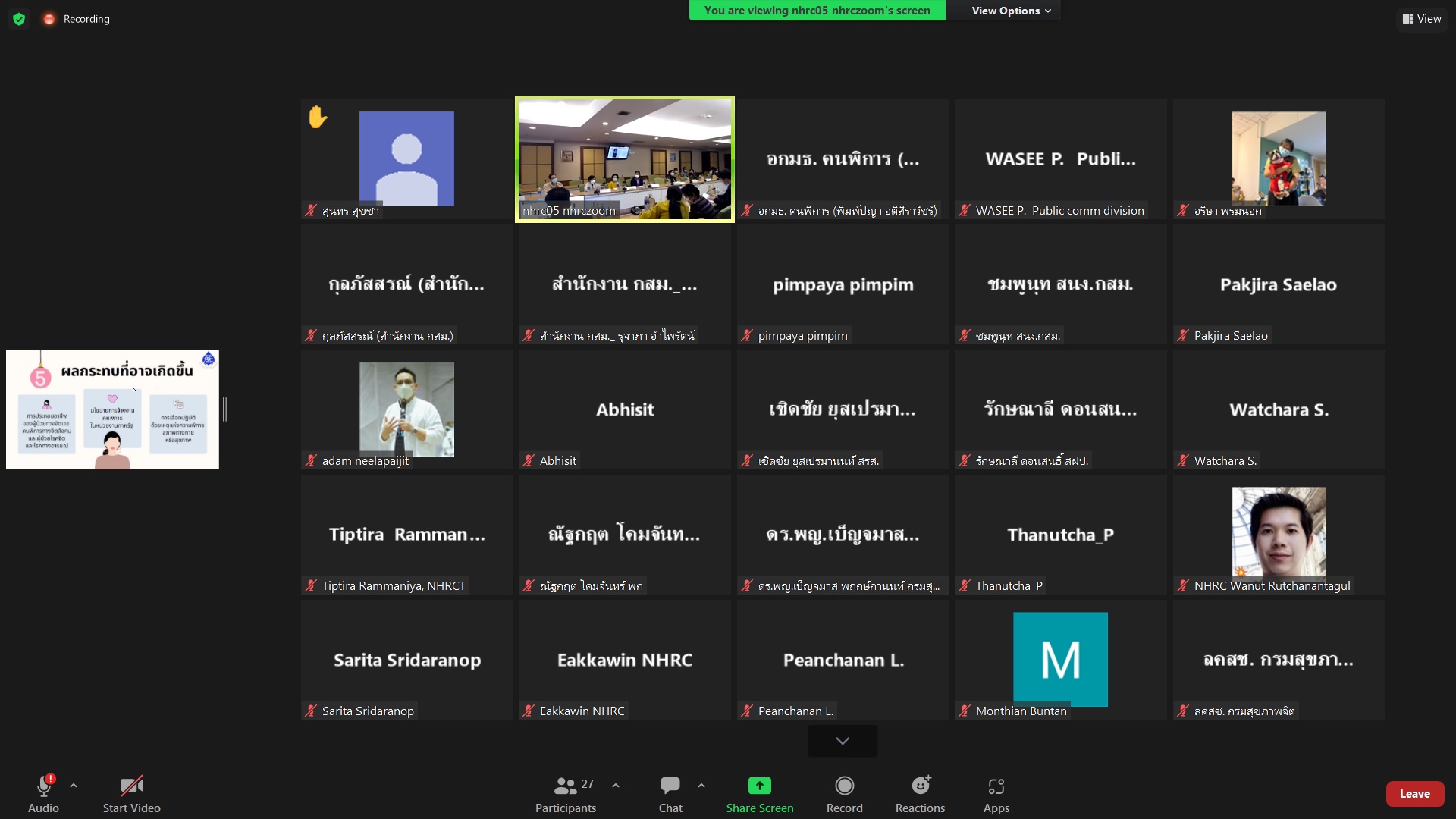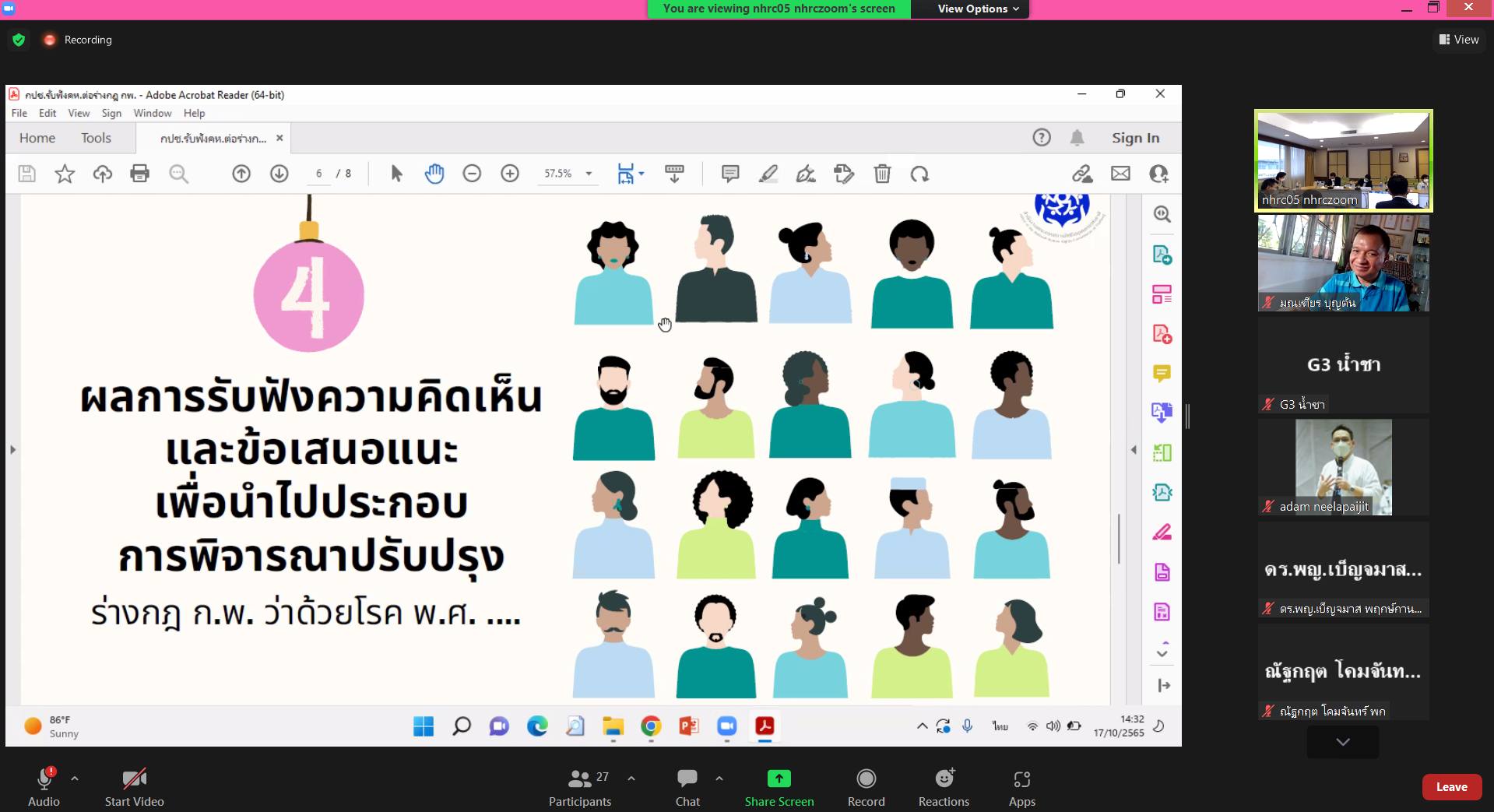 วันที่ 17 ตุลาคม 2565 เวลา 13.30 น. นางสาวพรประไพ กาญจนรินทร์ ประธานกรรมการสิทธิมนุษยชนแห่งชาติ นายวสันต์ ภัยหลีกลี้ และนางสาวสุภัทรา นาคะผิว กรรมการสิทธิมนุษยชนแห่งชาติ พร้อมด้วยนายพิทักษ์พล บุณยมาลิก เลขาธิการคณะกรรมการสิทธิมนุษยชนแห่งชาติ นางสาวรตญา กอบศิริกาญจน์ รองเลขาธิการคณะกรรมการสิทธิมนุษยชนแห่งชาติ ผู้บริหารและเจ้าหน้าที่สำนักงานคณะกรรมการสิทธิมนุษยชนแห่งชาติ ร่วมการประชุม และรับฟังความคิดเห็นต่อกรณีการกำหนดให้โรคจิต หรือโรคอารมณ์ผิดปกติ เป็นลักษณะต้องห้ามของการเข้ารับราชการพลเรือน จัดโดย สำนักงานคณะกรรมการสิทธิมนุษยชนแห่งชาติ โดยเชิญหน่วยงานที่เกี่ยวข้องเข้าร่วมให้ความเห็น ได้แก่ สมาคมเสริมสร้างชีวิต สมาคมสายใยครอบครัว สมาคมเพื่อผู้บกพร่องทางจิตแห่งประเทศไทย สมาคมสภาคนพิการทุกประเภทแห่งประเทศไทย ราชวิทยาลัยจิตแพทย์แห่งประเทศไทย สำนักงานคณะกรรมการข้าราชการพลเรือน กรมสุขภาพจิต กรมส่งเสริมและพัฒนาคุณภาพชีวิตคนพิการ และคณะอนุกรรมาธิการกิจการคนพิการ วุฒิสภา ร่วมแลกเปลี่ยนความคิดเห็น ณ ห้องประชุม 709 สำนักงานคณะกรรมการสิทธิมนุษยชนแห่งชาติ และผ่านสื่ออิเล็กทรอนิกส์ในรูปแบบสื่อออนไลน์ (Zoom meeting)