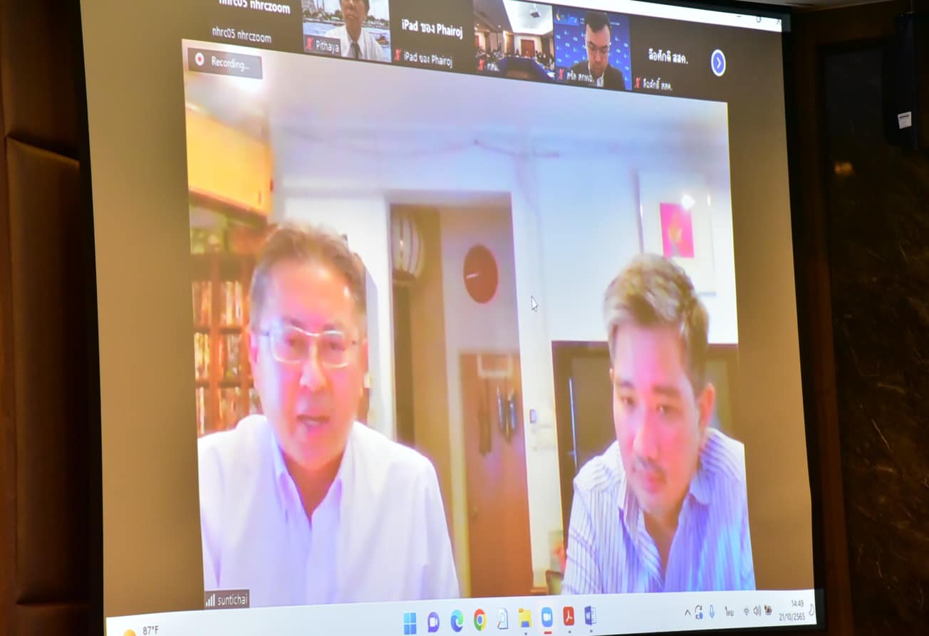 วันที่ 21 ตุลาคม 2565 เวลา 14.30 - 16.30 น. นางสาวศยามล ไกยูรวงศ์ นายสุชาติ เศรษฐมาลินี และนางสาวสุภัทรา นาคะผิว กรรมการสิทธิมนุษยชนแห่งชาติ นายพิทักษ์พล บุณยมาลิก เลขาธิการคณะกรรมการสิทธิมนุษยชนแห่งชาติ นางสาวรตญา กอบศิริกาญจน์ นายชนินทร์ เกตุปราชญ์ และนางหรรษา บุญรัตน์ รองเลขาธิการคณะกรรมการสิทธิมนุษยชนแห่งชาติ พร้อมด้วยนายพิทยา จินาวัฒน์ และนายไพโรจน์ พลเพชร ที่ปรึกษาประจำคณะกรรมการสิทธิมนุษยชนแห่งชาติ ประชุมร่วมกับคณาจารย์มหาวิทยาลัยบูรพา นำโดย ผศ.สกฤติ อิสริยานนท์ หัวหน้าภาควิชารัฐศาสตร์ รศ.โอฬาร ถิ่นบางเตียว อาจารย์ประจำภาควิชารัฐศาสตร์ ดร.ชิตาพร พิศลยบุตร โต๊ะวิเศษกุล อาจารย์ประจำภาควิชานิติศาสตร์ คณะรัฐศาสตร์และนิติศาสตร์ และผู้แทนสำนักงานคณะกรรมการนโยบายเขตพัฒนาพิเศษภาคตะวันออก (สกพอ.) เพื่อหารือเกี่ยวกับการพัฒนาหลักสูตรธุรกิจกับสิทธิมนุษยชน ณ ห้องเสวนา ชั้น 6 สำนักงานคณะกรรมการสิทธิมนุษยชนแห่งชาติ และผ่านระบบออนไลน์ (Zoom meeting)