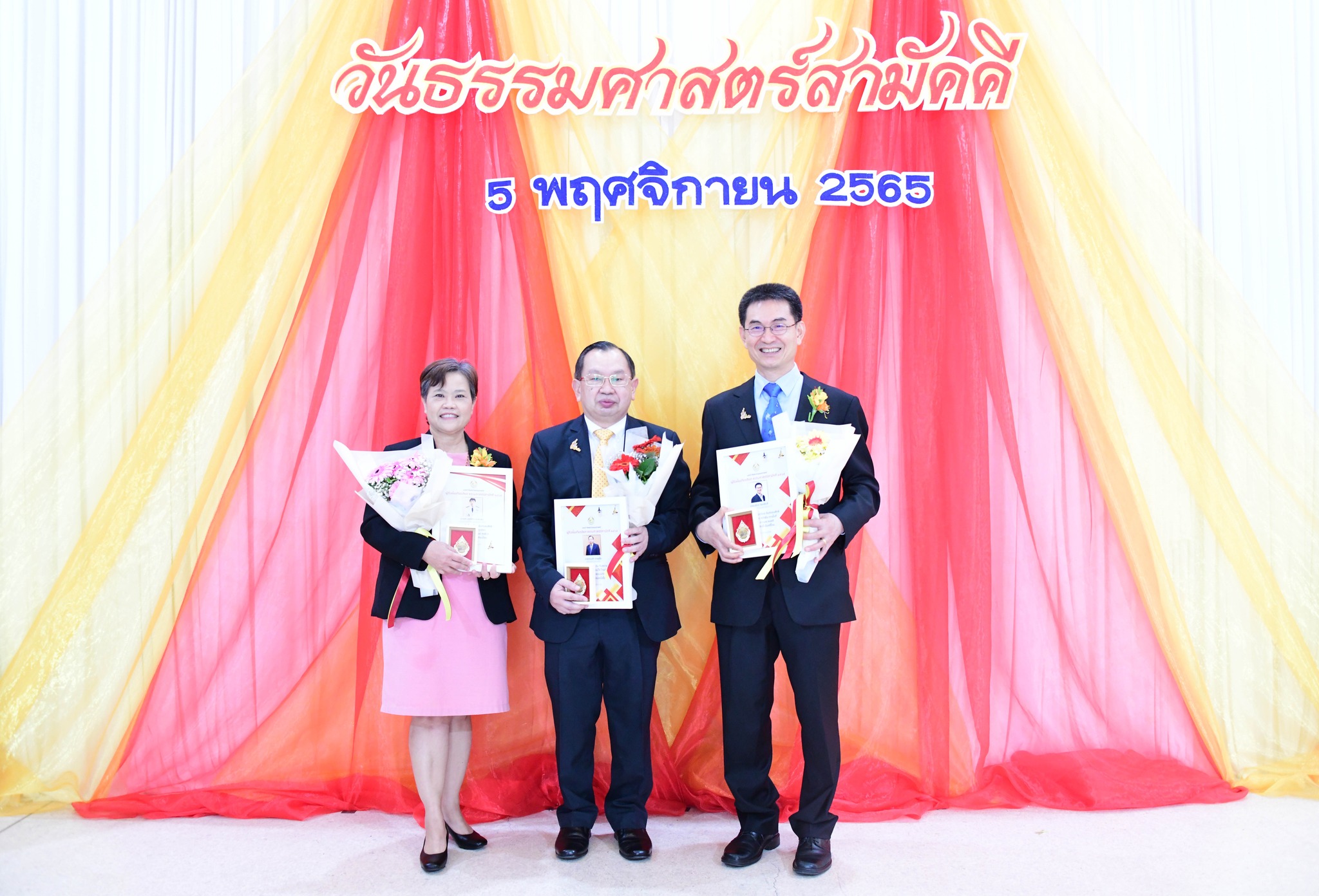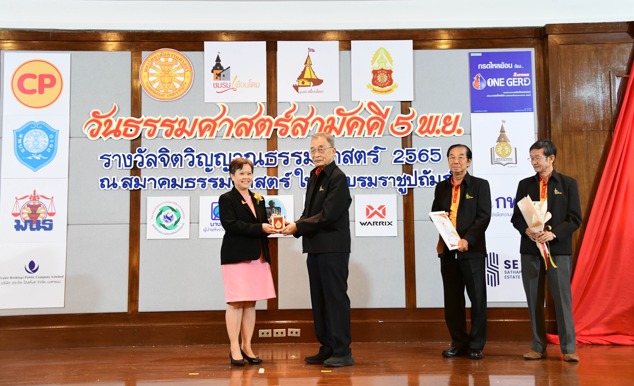 วันที่ 5 พฤศจิกายน 2565 เวลา 10.00 น. ที่สมาคมธรรมศาสตร์ ในพระบรมราชูปภัมภ์ ผู้ช่วยศาสตราจารย์สุชาติ เศรษฐมาลินี นายวสันต์ ภัยหลีกลี้ และนางสาวสุภัทรา นาคะผิว กรรมการสิทธิมนุษยชนแห่งชาติ รับมอบเข็มเกียรติยศธรรมศาสตร์สามัคคี 2565 เนื่องในโอกาสวันธรรมศาสตร์สามัคคี 5 พฤศจิกายน