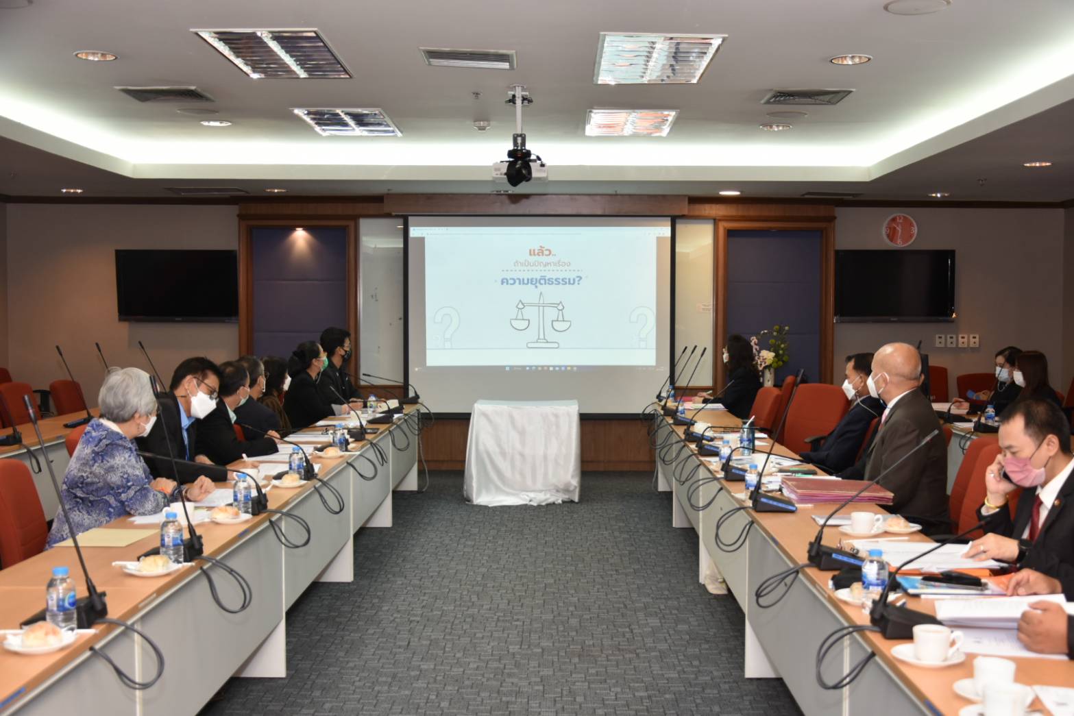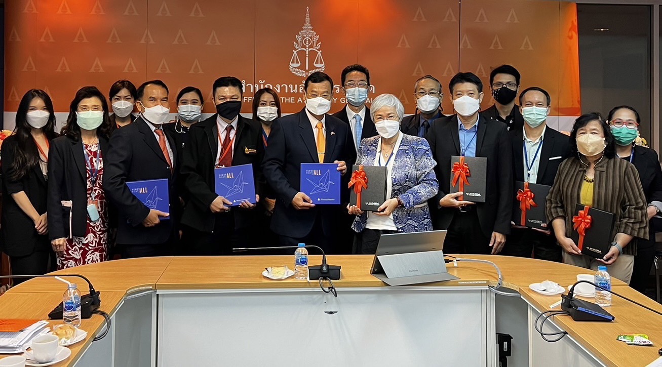 วันที่ 24 พฤศจิกายน 2565 เวลา 10.00 น. นางสาวปิติกาญจน์ สิทธิเดช กรรมการสิทธิมนุษยชนแห่งชาติพร้อมด้วย นายชนินทร์ เกตุปราชญ์ รองเลขาธิการคณะกรรมการสิทธิมนุษยชนแห่งชาติ เเละเจ้าหน้าที่สำนักงาน กสม. ประชุมขับเคลื่อนการดำเนินงานตามบันทึกข้อตกลงว่าด้วยความร่วมมือด้านการคุ้มครองสิทธิมนุษยชนและช่วยเหลือทางกฎหมายแก่ประชาชน ร่วมกับสำนักงานอัยการสูงสุด เพื่อจัดทำเเผนปฏิบัติการตามบันทึกข้อตกลงระหว่าง คณะกรรมการสิทธิมนุษยชนแห่งชาติ (กสม.) เเละสำนักงานอัยการสูงสุด ในการนี้ ที่ประชุมได้จัดตั้งคณะทำงานเพื่อร่วมกันดำเนินงานทั้งสองฝ่าย โดยมี หม่อมหลวงศุภกิตต์ จรูญโรจน์ เลขาธิการสถาบันนิติวัชร์ เเละ นายวิษณุ หาญนัทธี รองอธิบดีอัยการ สำนักงานคุ้มครองสิทธิเเละช่วยเหลือทางกฎหมายเเก่ประชาชน พร้อมผู้บริหารสำนักงานอัยการสูงสุด ให้การต้อนรับ ณ ห้องประชุม 701 สำนักงานอัยการสูงสุด ศูนย์ราชการเฉลิมพระเกียรติฯ อาคารราชบุรีดิเรกฤทธิ์