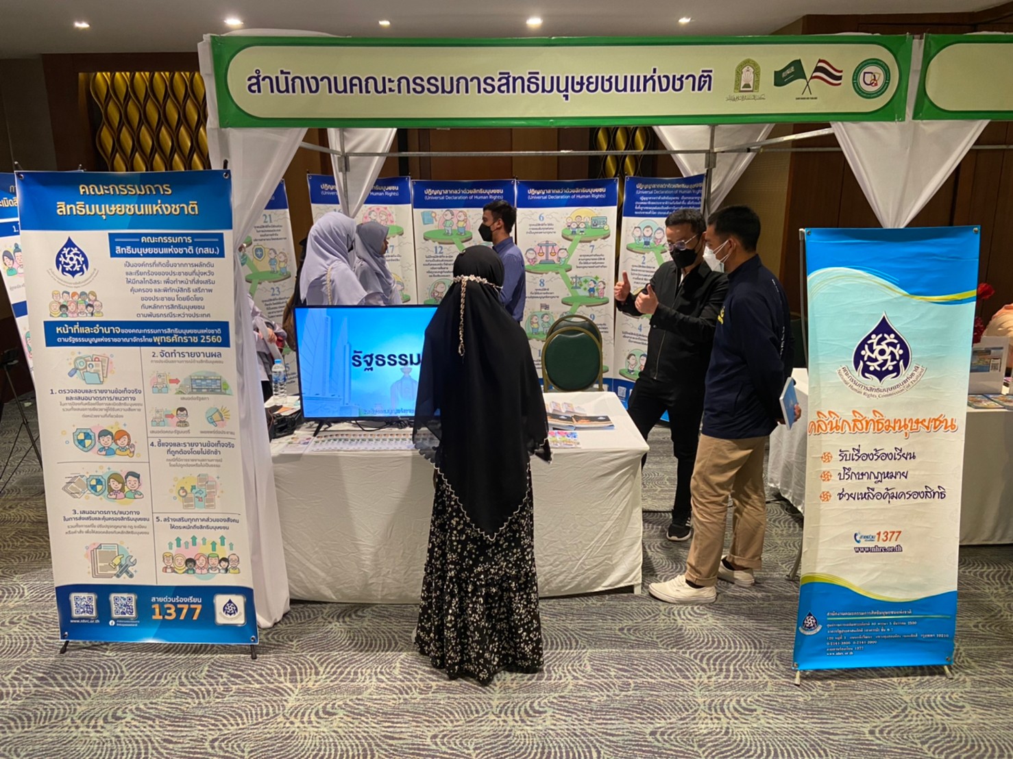 ทั้งนี้ สำนักงานคณะกรรมการสิทธิมนุษยชนแห่งชาติพื้นที่ภาคใต้ ได้ร่วมจัดนิทรรศการเรื่อง สิทธิมนุษยชนตามหลักการสากลและให้บริการคลินิกสิทธิมนุษยชนสำหรับการรับเรื่องร้องเรียน และการให้คำปรึกษาแก่ผู้เข้าร่วมงานด้วย ซึ่งเยาวชนผู้เข้าร่วมโครงการมีความสนใจโดยเข้าชมนิทรรศการสิทธิมนุษยชนและใช้บริการขอคำปรึกษาเกี่ยวกับปัญหาการละเมิดสิทธิมนุษยชนในพื้นที่ภาคใต้จำนวนมาก นอกจากนี้ ยังมีหน่วยงานที่ร่วมจัดนิทรรศการในงานดังกล่าว อาทิ สำนักงานศาลปกครอง สำนักงานคณะกรรมการป้องกันและปราบปรามการทุจริตแห่งชาติ (สำนักงาน ป.ป.ช.) สำนักงานคณะกรรมการการเลือกตั้ง (สำนักงาน ก.ก.ต.) กรมการศาสนา กรมหม่อนไหม กรมกิจการเด็กและเยาวชน กรมการจัดหางาน และการท่องเที่ยวแห่งประเทศไทย (ททท.)
