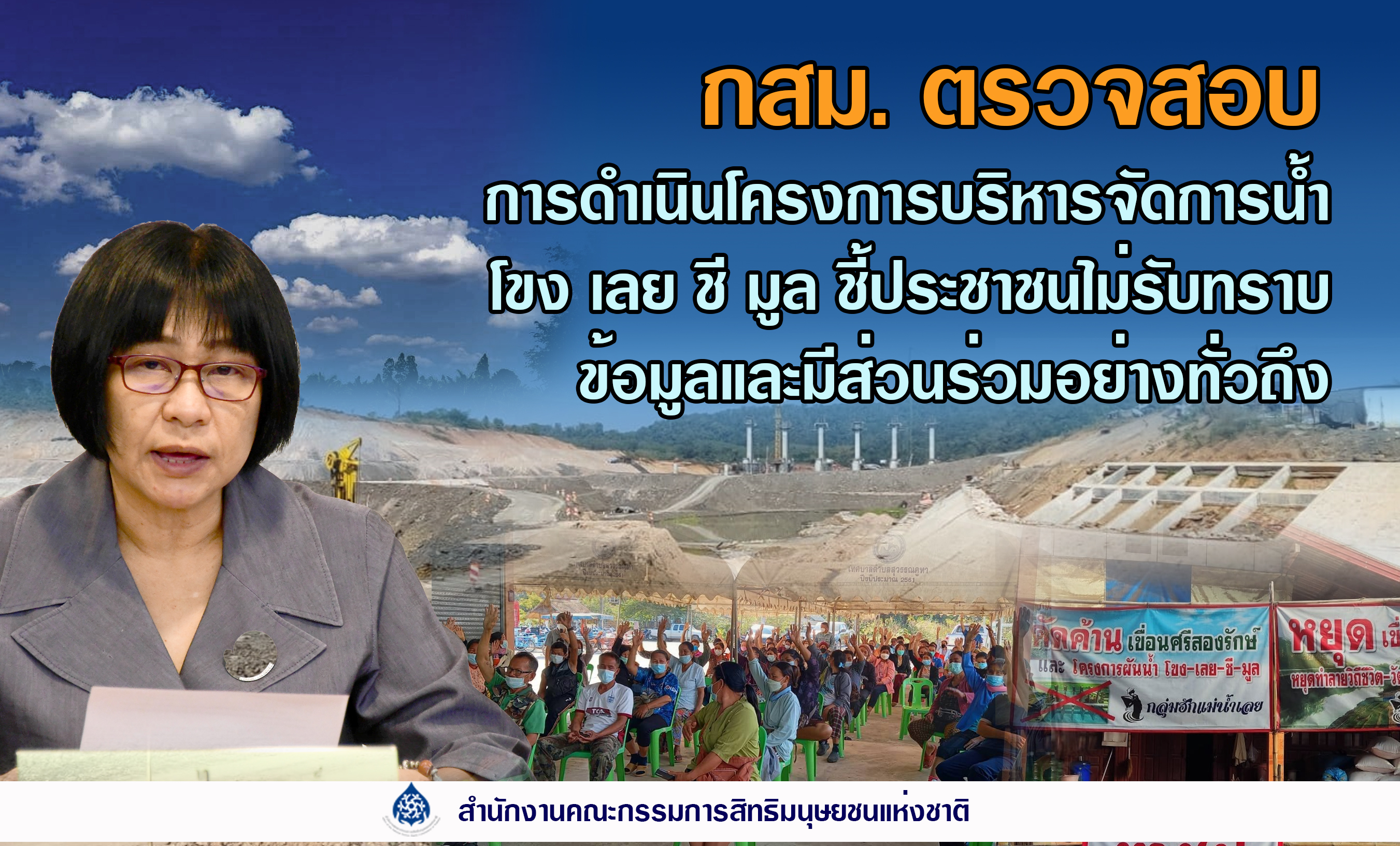 2. กสม. ตรวจสอบการดำเนินโครงการบริหารจัดการน้ำ โขง เลย ชี มูลฯ ชี้ประชาชนไม่ได้รับทราบข้อมูลและมีส่วนร่วมในการบริหารจัดการน้ำอย่างทั่วถึง แนะ สทนช. และกรมชลฯ ทบทวนโครงการ