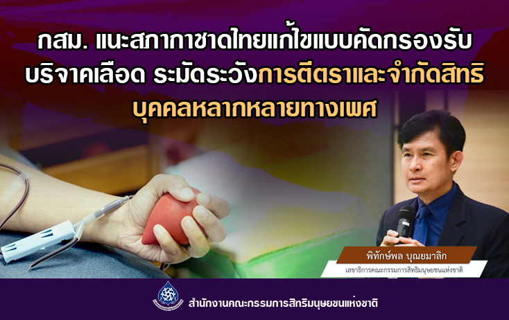 2. กสม. ตรวจสอบกรณีสภากาชาดไทย ปฏิเสธรับบริจาคเลือดจากหญิงข้ามเพศ แนะแก้ไขแบบคัดกรองความเสี่ยงที่ไม่ตีตราและจำกัดสิทธิผู้บริจาคที่มีความหลากหลายทางเพศ