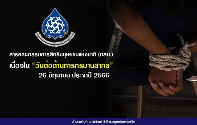 เนื่องใน “วันต่อต้านการทรมานสากล” 26 มิถุนายน ซึ่งถูกกำหนดขึ้นโดยองค์การสหประชาชาติให้เป็นวันช่วยเหลือเหยื่อจากการทรมานสากล ประจำปีนี้ กสม. ขอยืนยันถึงหลักสิทธิและเสรีภาพในชีวิตและร่างกายของทุกคนที่จะต้องไม่ตกอยู่ภายใต้การทรมาน การประติบัติหรือการลงโทษอื่นที่โหดร้ายไร้มนุษยธรรม หรือที่ย่ำยีศักดิ์ศรี และขอให้ทุกภาคส่วนได้ร่วมมือกันขับเคลื่อนและขจัดอุปสรรคในการบังคับใช้กฎหมายป้องกันการทรมานและบังคับสูญหาย