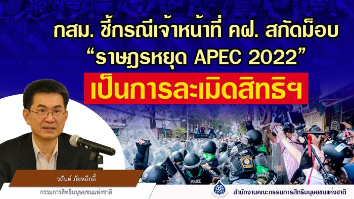 1. กสม. ชี้ เจ้าหน้าที่ คฝ. ใช้ความรุนแรงสกัดกั้นผู้ชุมนุม “ราษฎรหยุด APEC 2022” เป็นการละเมิดสิทธิ กระทบเสรีภาพการนำเสนอข่าวสารของสื่อมวลชน