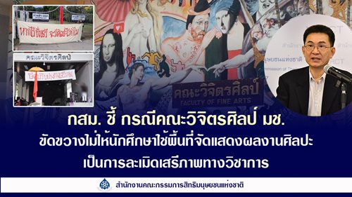 กสม. แถลงข่าวเด่นประจำสัปดาห์ ครั้งที่ 18/2566 กสม. ชี้ คณะวิจิตรศิลป์ มช. ขวางการเข้าใช้พื้นที่หอศิลปวัฒนธรรมในการจัดแสดงผลงานศิลปะของนักศึกษา กระทบต่อเสรีภาพทางวิชาการ