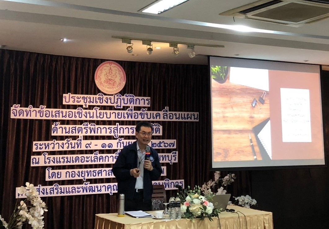 เมื่อวันที่ 11 กันยายน 2567 เวลา 09.00 น. นายวสันต์  ภัยหลีกลี้ กรรมการสิทธิมนุษยชนแห่งชาติ ร่วมเป็นวิทยากรบรรยาย เรื่อง แนวทางการส่งเสริมสถานภาพสตรีพิการที่สอดคล้องกับสิทธิมนุษยชนและพันธกรณีระหว่างประเทศ ในการประชุมเชิงปฏิบัติการจัดทำข้อเสนอเชิงนโยบายเพื่อขับเคลื่อนแผนด้านสตรีพิการสู่การปฏิบัติ จัดโดย กรมส่งเสริมและพัฒนาคุณภาพชีวิตคนพิการ ระหว่างวันที่ 9 - 11 กันยายน 2567 ณ โรงแรมเดอะ เล็คกาซี่ จังหวัดนนทบุรี มีวัตถุประสงค์เพื่อจัดทำข้อเสนอแนะเชิงนโยบายต่อการขับเคลื่อนงานด้านการพัฒนาสตรีพิการและข้อเสนอแนะในการสร้างความเข้มแข็งเครือข่ายสตรีพิการ โดยผู้เข้าร่วมกิจกรรมดังกล่าว ประกอบด้วย สตรีพิการ แกนนำเครือข่ายสตรีพิการ ผู้ดูแลคนพิการ อาสาสมัคร ล่ามภาษามือ และเจ้าหน้าที่กรมส่งเสริมและพัฒนาคุณภาพชีวิตคนพิการ