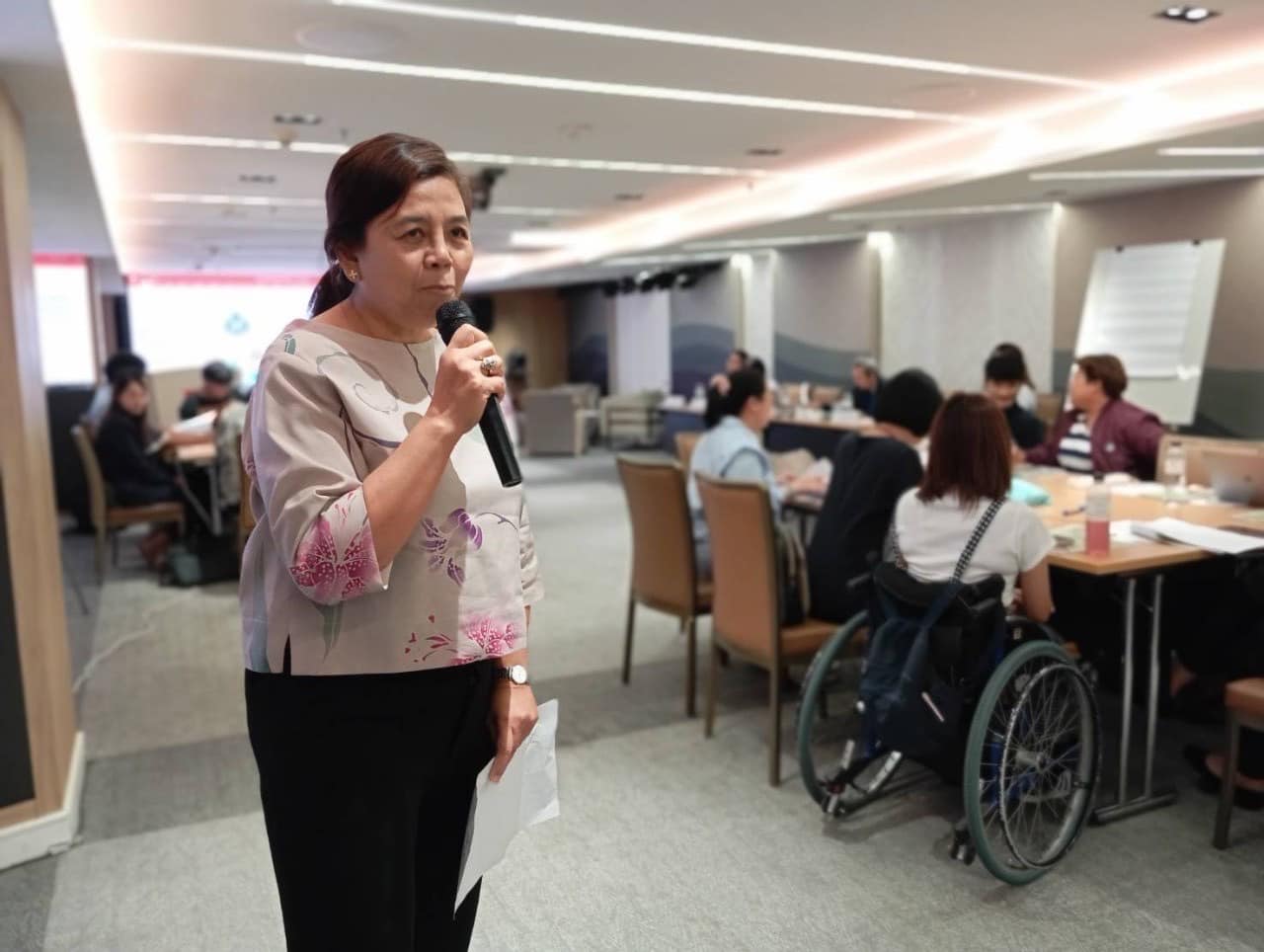 ในช่วงบ่าย กสม.สุภัทรา ได้ร่วมแลกเปลี่ยนความคิดเห็นกับผู้เข้าร่วมโครงการ ภายหลังกิจกรรมการชมสื่อที่มีเนื้อเรื่องเกี่ยวข้องกับประเด็นสิทธิมนุษยชนเพื่อให้ผู้เข้าร่วมกิจกรรมได้มีความรู้ ความเข้าใจที่สามารถนำไปสู่การจัดทำเนื้อหาหรือการเล่าเรื่องราว” (Story Telling) ในการผลิตสื่อการเรียนรู้สิทธิมนุษยชนศึกษา โดยมี กสม. สุชาติ เศรษฐมาลินี และที่ปรึกษาประจำ กสม. ร่วมรับชมสื่อดังกล่าวด้วย