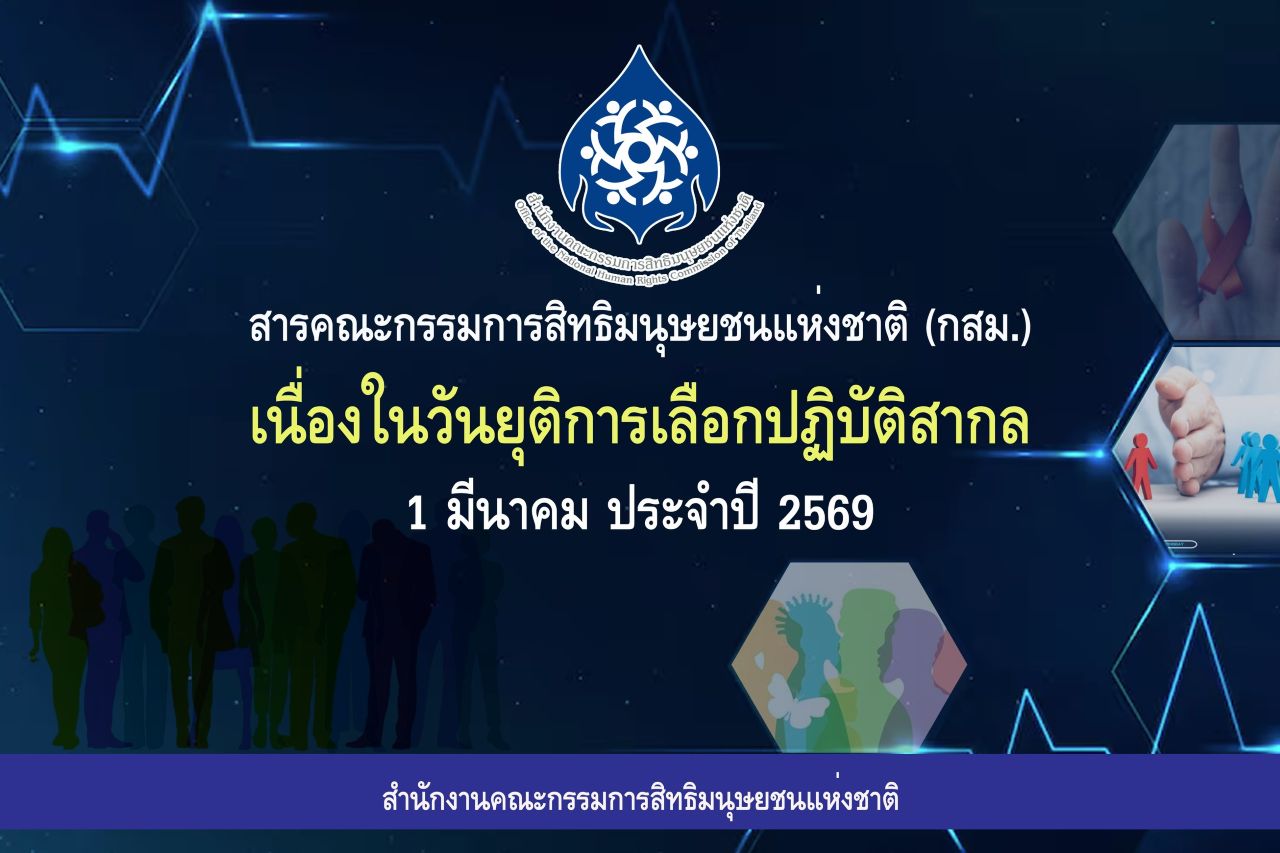 เนื่องในวันยุติการเลือกปฏิบัติสากล (Zero Discrimination Day) 1 มีนาคม ประจำปี 2569 โดยโครงการเอดส์แห่งสหประชาชาติ (UNAIDS) ภายใต้หัวข้อ “People First” หรือการให้ความสำคัญกับผู้คนเป็นอันดับแรก กสม. ขอเน้นย้ำถึงความสำคัญของการขจัดการเลือกปฏิบัติอย่างเป็นระบบ เพื่อให้คนทุกกลุ่มได้มีและใช้สิทธิของตนได้อย่างเสมอภาคและเท่าเทียมกันในฐานะมนุษย์ โดยขอยืนยันอย่างต่อเนื่องให้รัฐบาลเร่งผลักดันกฎหมายขจัดการเลือกปฏิบัติต่อบุคคลเพื่อเป็นกฎหมายกลางที่สร้างหลักประกันว่าคนทุกกลุ่มจะไม่ถูกเลือกปฏิบัติ หน่วยงานของรัฐต้องเป็นตัวอย่างที่ดีในการเป็นหน่วยงานที่ปราศจากการเลือกปฏิบัติโดยดำเนินการสร้างความตระหนักรู้ให้กับเจ้าหน้าที่รัฐ สื่อ และประชาชน รวมทั้งยกเลิกกฎหมาย กฎ ระเบียบ ประกาศ คำสั่ง นโยบาย ที่มีลักษณะเป็นการเลือกปฏิบัติ