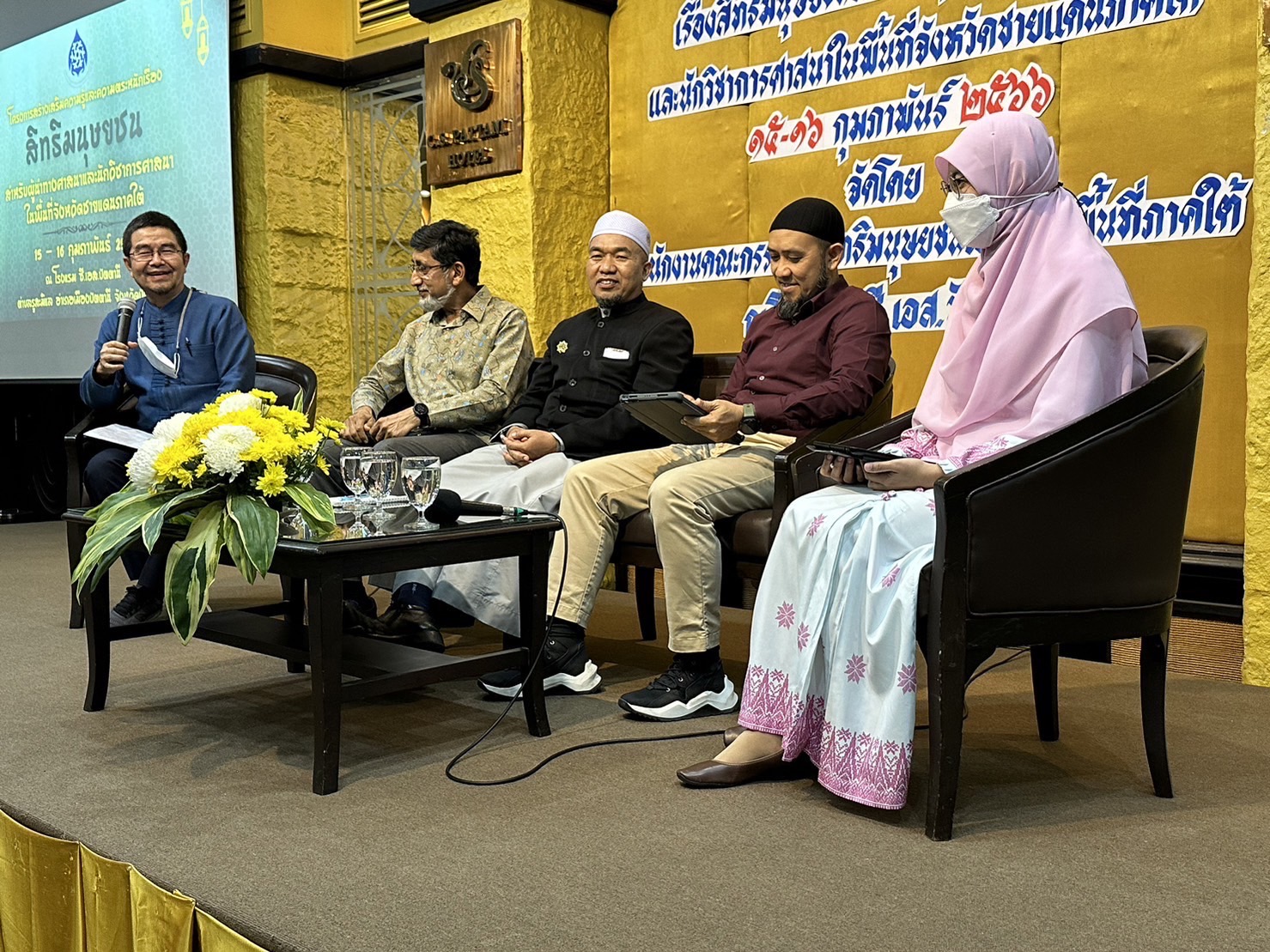 วันที่ 15 กุมภาพันธ์ 2566 ช่วงเช้า ผู้ช่วยศาสตราจารย์สุชาติ เศรษฐมาลินี กรรมการสิทธิมนุษยชนแห่งชาติ เป็นวิทยากรบรรยายพิเศษเรื่อง “อิสลามกับสิทธิมนุษยชนในจังหวัดชายแดนภาคใต้” จากนั้นเป็นการอภิปราย และแลกเปลี่ยนความคิดเห็นเรื่อง “ความมั่นคง : สถานการณ์ ความคิด ความจริง ความเสี่ยง และความคาดหวัง” โดยนายดนัย มู่สา ผู้ทรงคุณวุฒิ กสม. ด้านการส่งเสริมสิทธิมนุษยชนและสิทธิมนุษยชนศึกษา