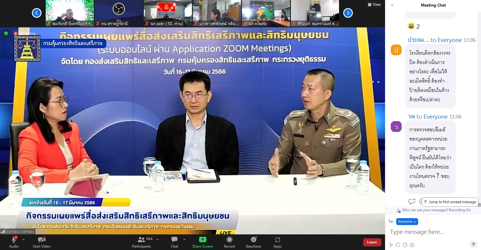 วันที่ 17 มีนาคม 2566 เวลา 10.30 น. นายวสันต์ ภัยหลีกลี้ กรรมการสิทธิมนุษยชนแห่งชาติ ร่วมเป็นวิทยากรบรรยายให้ความรู้ในหัวข้อ “ภัยคุกคามทาง Cyber ละเมิดสิทธิคนไทย” ในกิจกรรมเผยแพร่สื่อส่งเสริมสิทธิเสรีภาพและสิทธิมนุษยชน จัดโดย กรมคุ้มครองสิทธิและเสรีภาพ กระทรวงยุติธรรม ณ OK Mass Studio