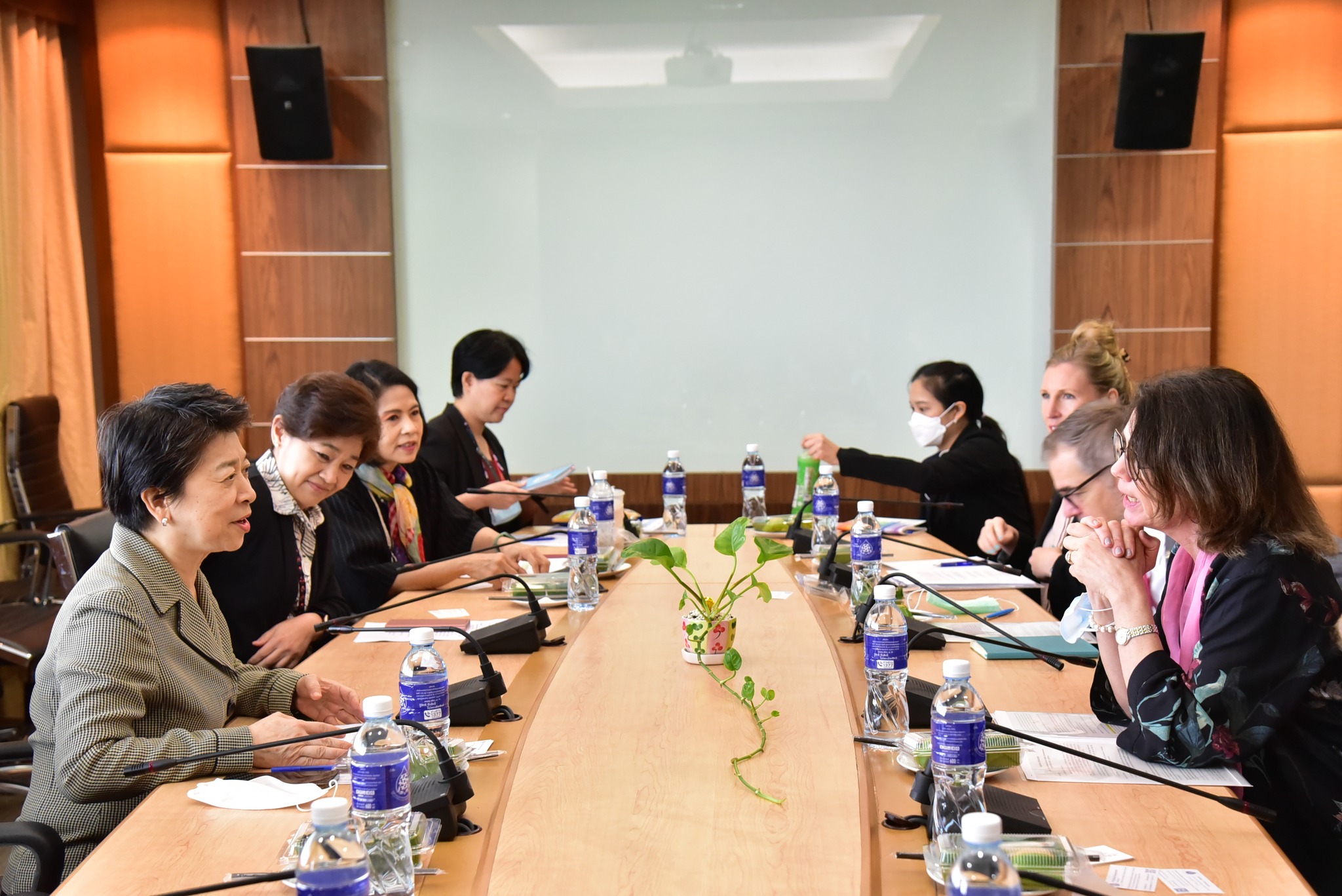 วันที่ 23 มีนาคม 2566 เวลา 10.00 น. คณะกรรมการสิทธิมนุษยชนแห่งชาติ (กสม.) โดยนางสาวพรประไพ กาญจนรินทร์ ประธานกรรมการสิทธิมนุษยชนแห่งชาติ และนางสาวปิติกาญจน์ สิทธิเดช กรรมการสิทธิมนุษยชนแห่งชาติ พร้อมด้วยนางหรรษา บุญรัตน์ รองเลขาธิการสำนักงานคณะกรรมการสิทธิมนุษยชนแห่งชาติ ประชุมร่วมกับ ดร. เซซิเลีย รุธสเติร์ม-รูอีน เอกอัครราชทูตเพื่อประชาธิปไตย สิทธิมนุษยชน และหลักนิติธรรม นายยูน ออสเตริม เกรินดาห์ล เอกอัครราชทูตสวีเดนประจำประเทศไทย และคณะ ในโอกาสขอเข้าพบเพื่อหารือเกี่ยวกับสถานการณ์ด้านสิทธิมนุษยชนในประเทศไทย และโอกาสในการสร้างความร่วมมือเพื่อขับเคลื่อนงานด้านสิทธิมนุษยชนร่วมกับ กสม. ต่อไป ณ ห้องประชุมประธาน กสม. ชั้น 7 สำนักงานคณะกรรมการสิทธิมนุษยชนแห่งชาติ