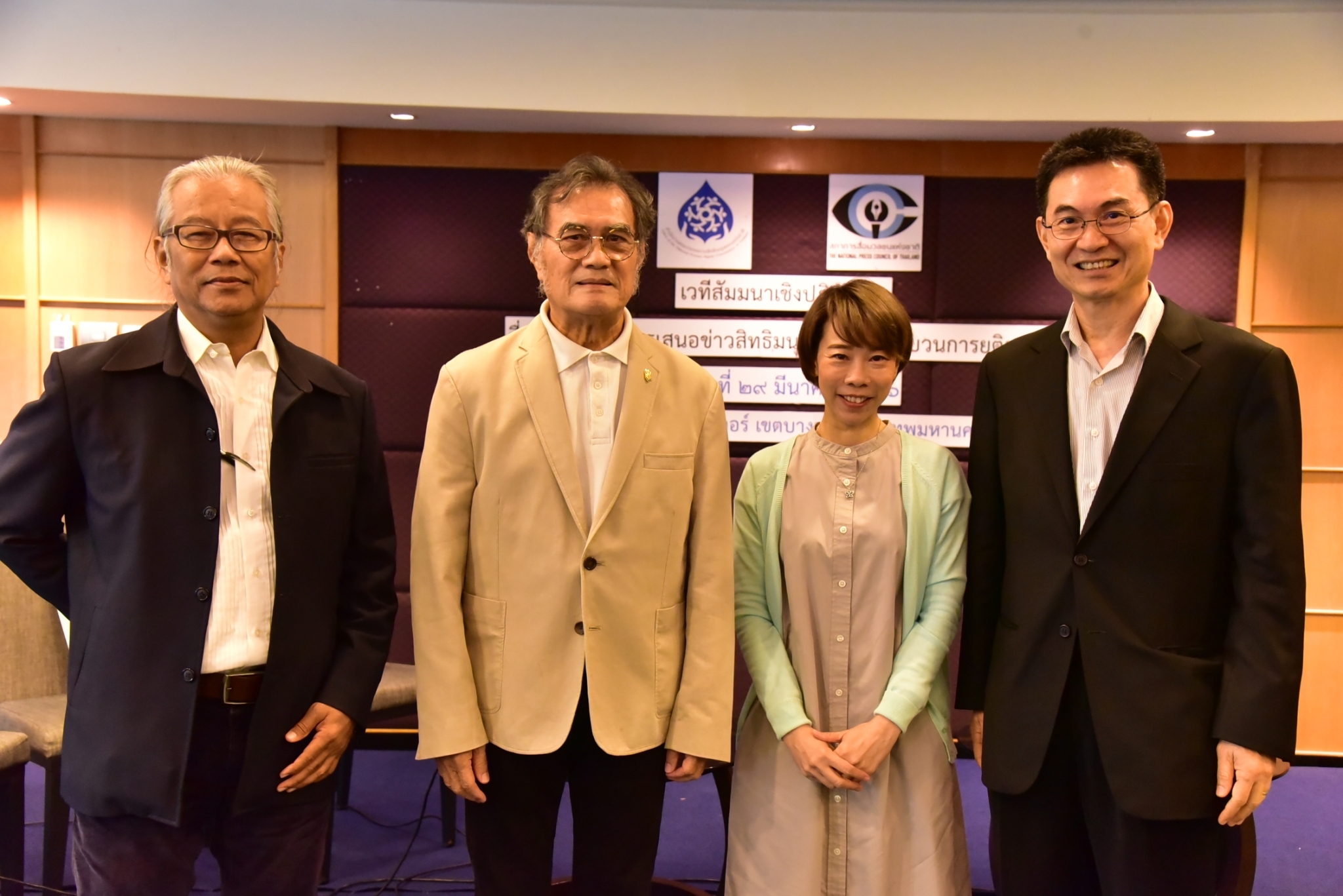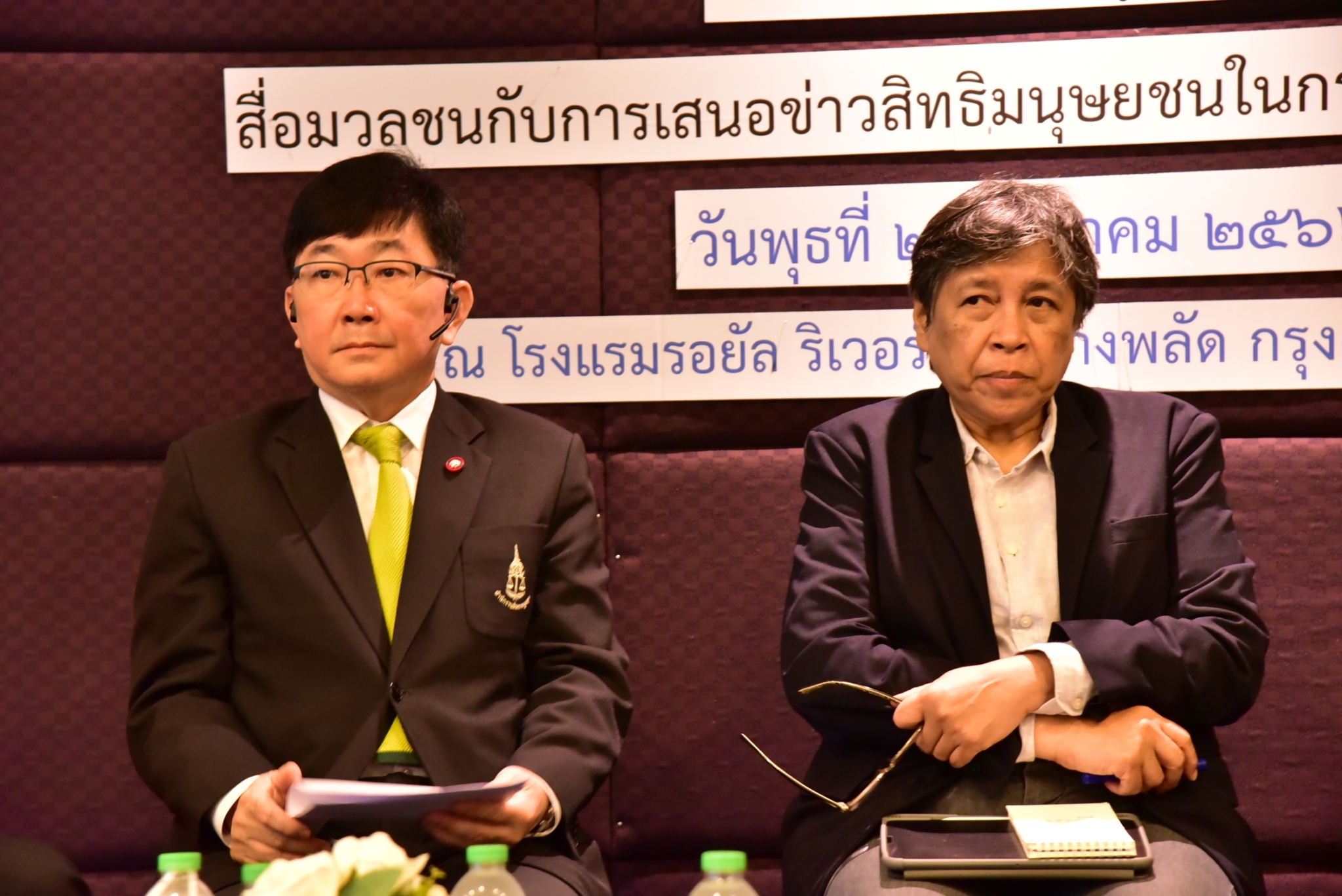 จากนั้นมีการเสวนาหัวข้อ “ปัญหาการละเมิดสิทธิมนุษยชนของสื่อมวลชนในการเสนอข่าวกระบวนการยุติธรรมทางอาญา” โดยผู้แทนภาคส่วนต่าง ๆ ได้แก่ นายโกศลวัฒน์ อินทุจันทร์ยง รองอธิบดีอัยการ สำนักงานคุ้มครองสิทธิและช่วยเหลือทางกฎหมายแก่ประชาชน นายวิเชียร ชุบไธสง นายกสภาทนายความ พ.ต.ท. ธ เทพ ไชยชาญบุตร รองโฆษกสำนักงานตำรวจแห่งชาติ นางสาวสารี อ๋องสมหวัง เลขาธิการสภาองค์กรของผู้บริโภค นายสรวิศ ลิมปรังษี ผู้พิพากษาหัวหน้าศาลประจำสำนักประธานศาลฎีกา และนายชาย ปถะคามินทร์ ผู้อำนวยการบริหาร สภาการสื่อมวลชนแห่งชาติ ซึ่งมีประเด็นที่น่าสนใจให้ร่วมขบคิด เช่น วิจารณญานในการส่งต่อภาพของเหยื่อหรือผู้ต้องหาให้แก่สื่อมวลชนโดยผู้เข้าถึงเหตุการณ์ในคดีอาชญากรรมเป็นกลุ่มแรก เช่น เจ้าหน้าที่ตำรวจ เจ้าหน้าที่กู้ภัย หรือพยานในเหตุการณ์ กับความเหมาะสมและจำเป็นในการใช้ข้อมูลประกอบการปฏิบัติหน้าที่ ความท้าทายของสื่อมวลชนในการปฏิบัติงานตามจริยธรรมวิชาชีพและการนำเสนอข่าวเชิงคุณภาพท่ามกลางความกดดันของการแข่งขันทางธุรกิจ และความไม่เชื่อมั่นของประชาชนต่อกระบวนการยุติธรรมอันเป็นเหตุให้สื่อมวลชนกลายเป็นผู้นำเสนอข่าวในลักษณะที่ทำหน้าที่พิพากษาผู้ตกเป็นข่าวเสียเอง เป็นต้น
