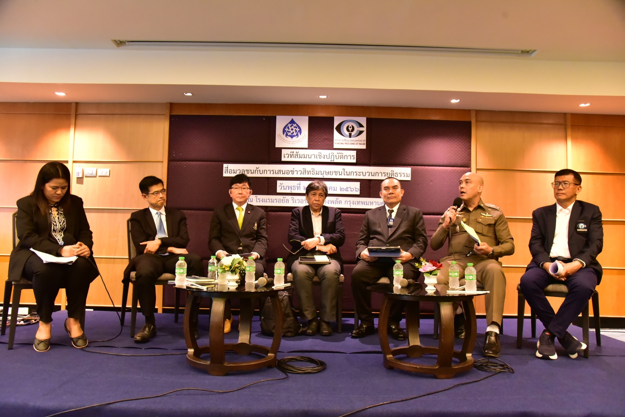 วันที่ 29 มีนาคม 2566 ที่โรงแรมรอยัลริเวอร์ กรุงเทพมหานคร สำนักงานคณะกรรมการสิทธิมนุษยชนแห่งชาติ (สำนักงาน กสม.) ร่วมกับ สภาการสื่อมวลชนแห่งชาติ จัดเวทีสัมมนาเชิงปฏิบัติการหัวข้อ “สื่อมวลชนกับการเสนอข่าวสิทธิมนุษยชนในกระบวนการยุติธรรม” โดยมีวัตถุประสงค์เพื่อทบทวนหลักการและแนวปฏิบัติที่เกี่ยวข้องกับการนำเสนอข่าวในกระบวนการยุติธรรมทางอาญาให้สอดคล้องกับหลักการด้านสิทธิมนุษยชน และเพื่อให้สื่อมวลชนได้ร่วมยกระดับในการปกป้องและส่งเสริมสิทธิมนุษยชนในการปฏิบัติต่อผู้ตกเป็นข่าว เช่น ผู้เสียหาย ผู้ต้องหา จำเลย พยาน และประชาชนทั่วไป