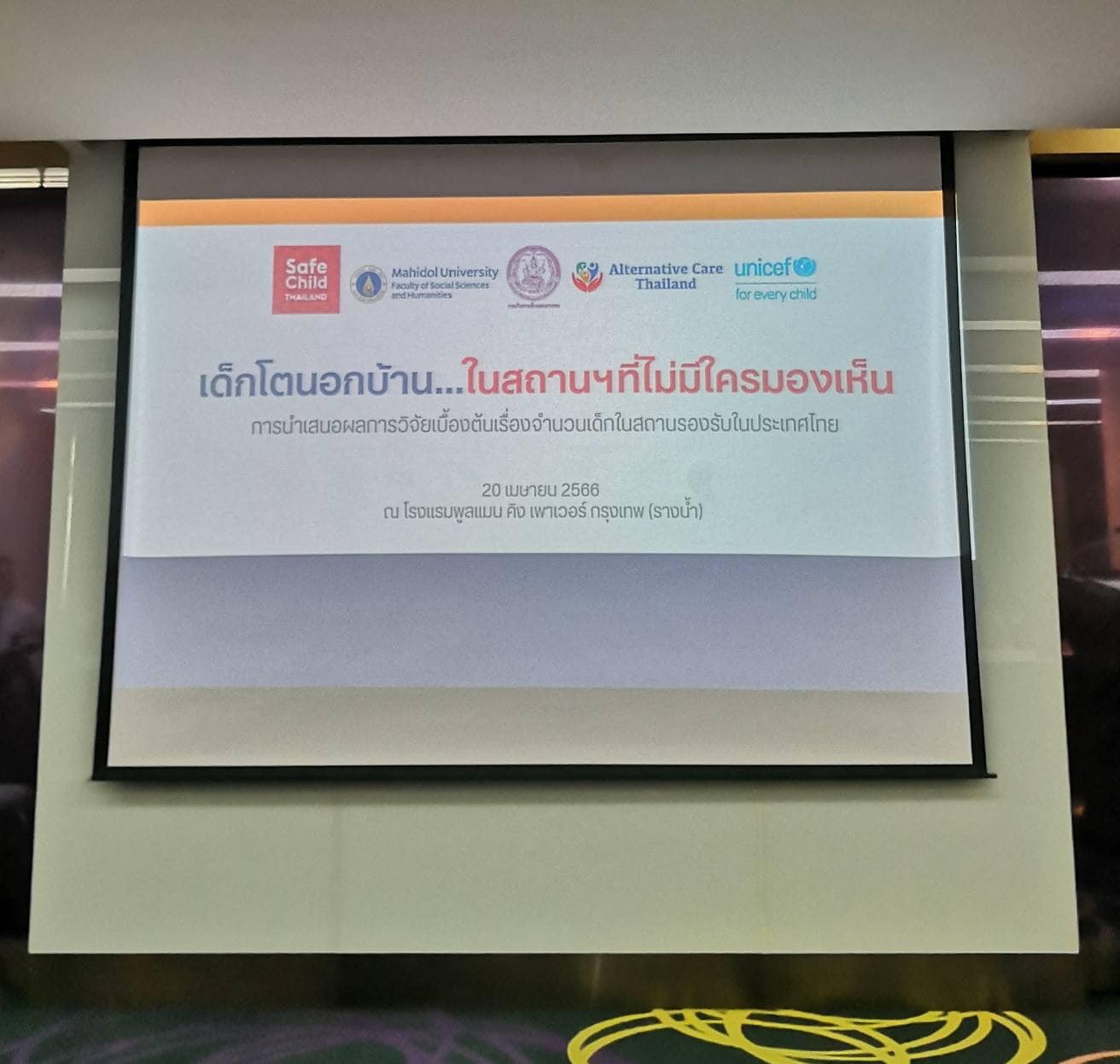 ร่วมกับองค์การยูนิเซฟ ประเทศไทย โดยมีนางสรวงมณฑ์ สิทธิสมาน ที่ปรึกษาประจำคณะกรรมการสิทธิมนุษยชนแห่งชาติ และเจ้าหน้าที่สำนักงาน กสม. เข้าร่วมรับฟังด้วย ณ โรงแรมพูลแมน คิงเพาเวอร์ กรุงเทพ