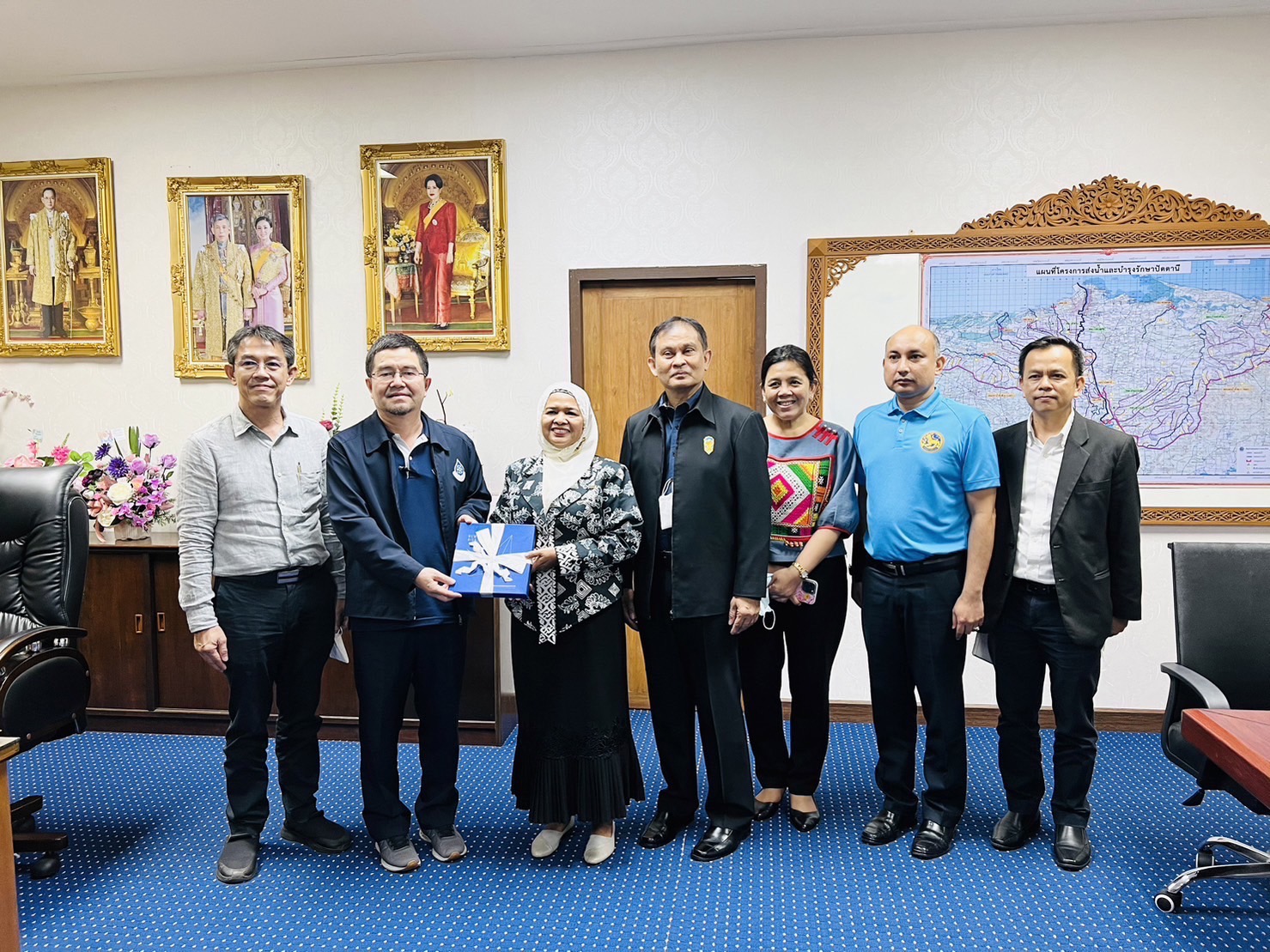 จากนั้น เวลา 15.00 น. กรรมการสิทธิมนุษยชนแห่งชาติและคณะ ได้เข้าพบนางพาตีเมาะ สะดียามู ผู้ว่าราชการจังหวัดปัตตานี ณ ห้องปฏิบัติการผู้ว่าราชการจังหวัดปัตตานี ศาลากลางจังหวัดปัตตานี เพื่อหารือแนวทางความร่วมมือการส่งเสริมบทบาทของภาคประชาสังคมในการทำงานเพื่อส่งเสริมสิทธิมนุษยชน โดยร่วมกันพิจารณาให้จังหวัดปัตตานีเป็นจังหวัดต้นแบบที่บูรณาการมิติสิทธิมนุษยชนในแผนยุทธศาสตร์ของจังหวัดปัตตานี โดยเฉพาะการส่งเสริมศักยภาพสตรีให้เป็นผู้นำในการพัฒนา