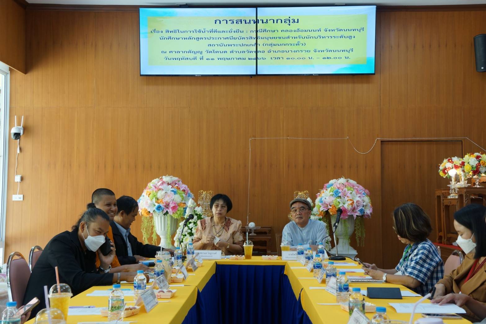 เมื่อวันพฤหัสบดีที่ 11 พฤษภาคม 2566 นางสาวศยามล ไกยูรวงศ์ กรรมการสิทธิมนุษยชนแห่งชาติ และนายไพโรจน์ พลเพชร ที่ปรึกษาประจำคณะกรรมการสิทธิมนุษยชนแห่งชาติ ลงพื้นที่ดูสภาพแวดล้อมคลองอ้อมนนท์ บริเวณท่าน้ำวัดโตนด ต.วัดชลอ อ.บางกรวย จ.นนทบุรี  และสนทนากลุ่มร่วมกับนักศึกษาสถาบันพระปกเกล้า หลักสูตรประกาศนียบัตรสิทธิมนุษยชนสำหรับนักบริหารระดับสูง รุ่นที่ 3 (ปสม.3) เพื่อให้คำปรึกษาการทำรายงานกลุ่ม เรื่อง สิทธิในการใช้น้ำที่ดีและยั่งยืน : กรณีศึกษา คลองอ้อมนนท์ จังหวัดนนทบุรี ณ ศาลากตัญญู วัดโตนด  โดยมีชุมชนและหน่วยงานในพื้นที่ร่วมสนทนาด้วย ได้แก่ เจ้าอาวาสวัดโตนด กำนันตำบลบางสีทอง ปราชญ์ชุมชน ปราชญ์เกษตรทุเรียน อ.บางกรวย อุปนายกสมาคมอนุรักษ์สิ่งแวดล้อมชุมชนไทย ผู้อำนวยการกองสาธารณสุขและสิ่งแวดล้อม เทศบาลเมืองบางกรวย ผู้อำนวยการสำนักงานสิ่งแวดล้อมและควบคุมมลพิษที่ 6 ผู้อำนวยการสำนักงานทรัพยากรธรรมชาติและสิ่งแวดล้อมจังหวัดนนทบุรี