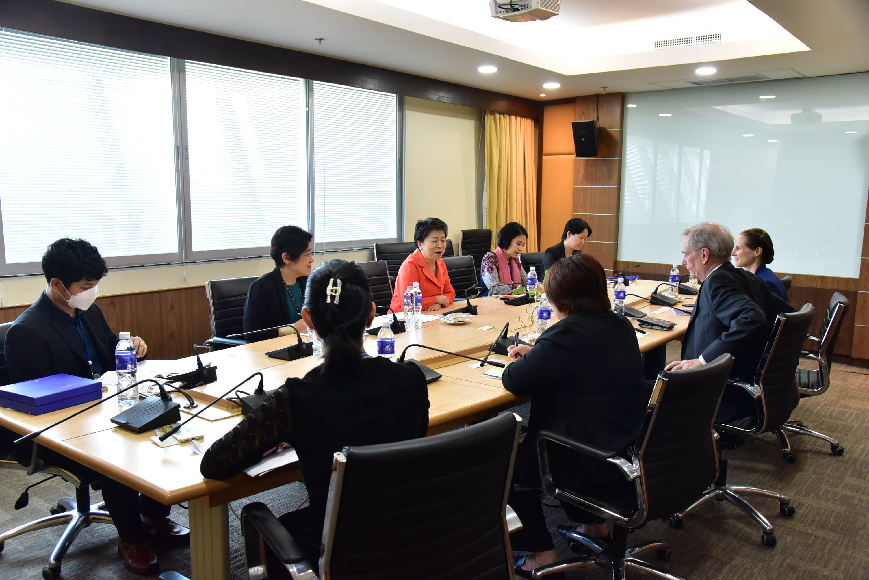 วันพฤหัสบดีที่ 18 พฤษภาคม 2566 เวลา 14.00 น. ประธานกรรมการสิทธิมนุษยชนแห่งชาติ พรประไพ กาญจนรินทร์ และคณะ ประชุมหารือร่วมกับนายรอเบิร์ต เอฟ. โกเด็ก (Mr. Robert F. Godec) เอกอัครราชทูตวิสามัญผู้มีอำนาจเต็มแห่งสหรัฐอเมริกาประจำประเทศไทย และคณะ ในประเด็นสิทธิมนุษยชนและแนวทางความร่วมมือระหว่างสำนักงานคณะกรรมการสิทธิมนุษยชนแห่งชาติกับสหรัฐอเมริกาด้านสิทธิมนุษยชน ณ ห้องประชุมประธาน กสม. ชั้น 7 สำนักงานคณะกรรมการสิทธิมนุษยชนแห่งชาติ