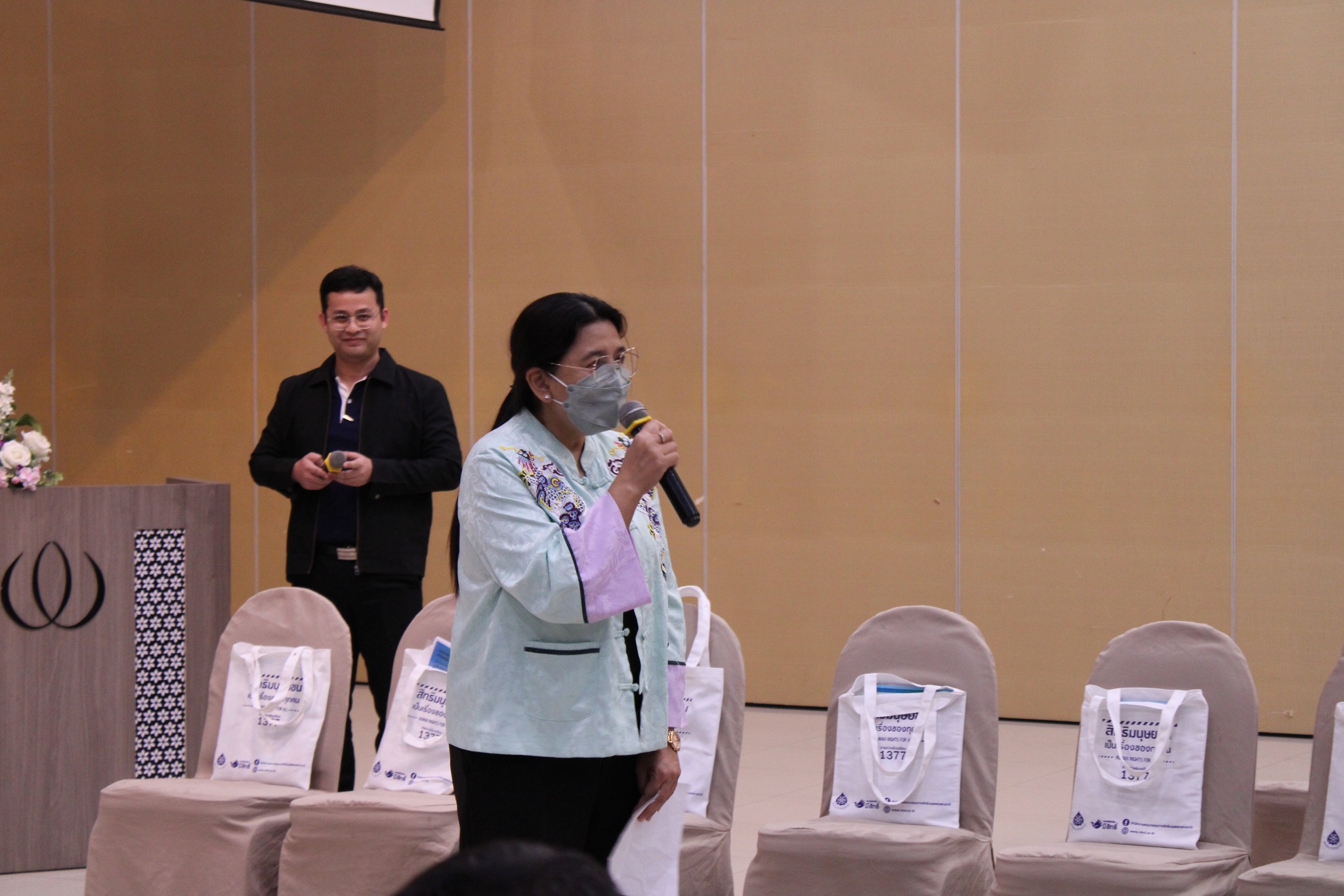 กรรมการสิทธิมนุษยชนแห่งชาติกล่าวว่า คณะกรรมการสิทธิมนุษยชนแห่งชาติ (กสม.) เป็นองค์กรอิสระตามรัฐธรรมนูญจัดตั้งและการดำเนินงานตามหลักการปารีส (Paris Principles) ถือเป็นสถาบันสิทธิมนุษยชนระดับชาติ (National Human Rights Institution) โดยมีหน้าที่และอำนาจตามบทบัญญัติ มาตรา 247 รัฐธรรมนูญแห่งราชอาณาจักรไทย พ.ศ 2560 และ มาตรา 26 พระราชบัญญัติประกอบรัฐธรรมนูญว่าด้วยคณะกรรมการสิทธิมนุษยชนแห่งชาติ พ.ศ. 2560 จากนั้นได้บรรยายในเรื่องของ “บทบาทและคำนิยามของนักปกป้องสิทธิมนุษยชน” ว่าเมื่อปี พ.ศ. 2541 สมัชชาใหญ่แห่งสหประชาชาติ ได้รับรองปฏิญญาสากลว่าด้วยนักปกป้องสิทธิมนุษยชน มีสาระสำคัญ คือ การรับรองสิทธิของบุคคลทุกคนที่ส่งเสริมและคุ้มครองสิทธิมนุษยชน เช่น การแลกเปลี่ยนข้อมูลข่าวสาร การแสดงความคิดเห็น การมีส่วนร่วมในการบริหารกิจการสาธารณะ รวมถึงเสนอปัญหาการดำเนินงานของรัฐที่เป็นอุปสรรคหรือมีผลกระทบด้านสิทธิมนุษยชน ภายใต้การดำเนินงานอย่างสันติ โดยรัฐมีหน้าที่ในการประกันสิทธิมนุษยชนของทุกคนเพื่อคุ้มครองบุคคลจากการถูกคุมคามและการใช้ความรุนแรง ซึ่งในประเทศไทยยังไม่มีการนิยามคำว่า นักปกป้องสิทธิมนุษยชนอย่างชัดเจน มีเพียงแต่การกำหนดนิยามเชิงปฏิบัติของตนที่แตกต่างกันไป เช่น “ผู้พิทักษ์สิทธิมนุษยชน” “นักสิทธิมนุษยชน” หรือ “ผู้ปฏิบัติงานด้านสิทธิมนุษยชน” โดยในรายงานผลการประเมินสถานการณ์ด้านสิทธิมนุษยชนของประเทศไทย ปี 2562 – 2565 พบว่าสถานการณ์ปัญหาที่ส่งผลกระทบต่อนักปกป้องสิทธิมนุษยชนส่วนใหญ่เกี่ยวข้องกับการดำเนินคดี ซึ่งรวมถึงการดำเนินคดีเชิงยุทธศาสตร์เพื่อต่อต้านการมีส่วนร่วมของสาธารณชนหรือการฟ้องปิดปาก (SLAPPs) ในช่วงสุดท้ายได้กล่าวถึง กลไกคุ้มครองนักปกป้องสิทธิมนุษยชนได้รับการบัญญัติไว้ในกฎหมายต่าง ๆ เช่น การแก้ไขประมวลกฎหมายวิธีพิจารณาความอาญามาตรา 161/1 และมาตรา 165/2 พระราชบัญญัติคุ้มครองพยานในคดีอาญา (ฉบับที่ 2) พ.ศ. 2565 แผนปฏิบัติการระดับชาติว่าด้วยธุรกิจกับสิทธิมนุษยชน (ประเด็นนักปกป้องสิทธิมนุษยชนถูกกำหนดเป็นประเด็นสำคัญหลักบรรจุอยู่ในแผน) เป็นต้น รวมถึงการคุ้มครองพยานหลักฐาน และการกลั่นแกล้งเพื่อขัดขวางการดำเนินงานของนักปกป้องสิทธิมนุษยชน นอกจากนี้ยังกล่าวถึง ช่องทางการรับเรื่องร้องเรียน ภายใต้การดำเนินงานของ กสม. กับการคุ้มครอง และส่งเสริมสิทธิมนุษยชนของนักปกป้องสิทธิมนุษยชน ในกรณีที่มีการละเมิดสิทธิมนุษยชนเพื่อตรวจสอบและให้ข้อเสนอแนะต่อหน่วยงานที่เกี่ยวข้อง และแก้ไขปัญหาอย่างเป็นธรรม