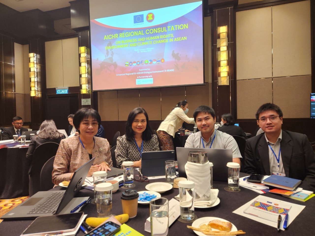 ระหว่างวันที่ 29-30 พฤษภาคม 2566 นางสาวศยามล ไกยูรวงศ์ กรรมการสิทธิมนุษยชนแห่งชาติ พร้อมด้วยเจ้าหน้าที่สำนักงานคณะกรรมการสิทธิมนุษยชนแห่งชาติ (สำนักงาน กสม.) เข้าร่วม “การประชุมหารือระดับภูมิภาคว่าด้วยธุรกิจและสิทธิมนุษยชน สิ่งแวดล้อม และการเปลี่ยนแปลงสภาพภูมิอากาศในอาเซียน (Regional Consultation on Business and Human Rights, Environment and Climate Change in ASEAN)” จัดโดย ผู้แทนมาเลเซียในคณะกรรมาธิการระหว่างรัฐบาลอาเซียน (ASEAN Intergovernmental Commission on Human Rights: AICHR) ร่วมกับกรอบความร่วมมือระหว่างสถาบันสิทธิมนุษยชนแห่งชาติในภูมิภาคเอเชีย-แปซิฟิก (Asia-Pacific Forum of National Human Rights Institutions: APF) โดยความสนับสนุนของสหภาพยุโรป ณ โรงแรมอินเตอร์คอนติเนนตัล กรุงกัวลาลัมเปอร์ สาธารณรัฐมาเลเซีย