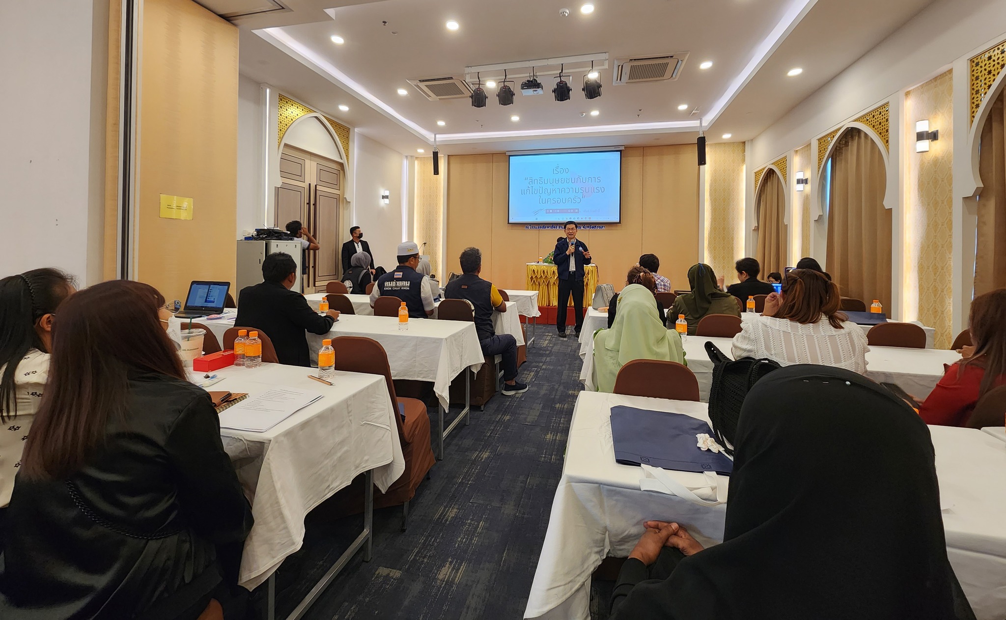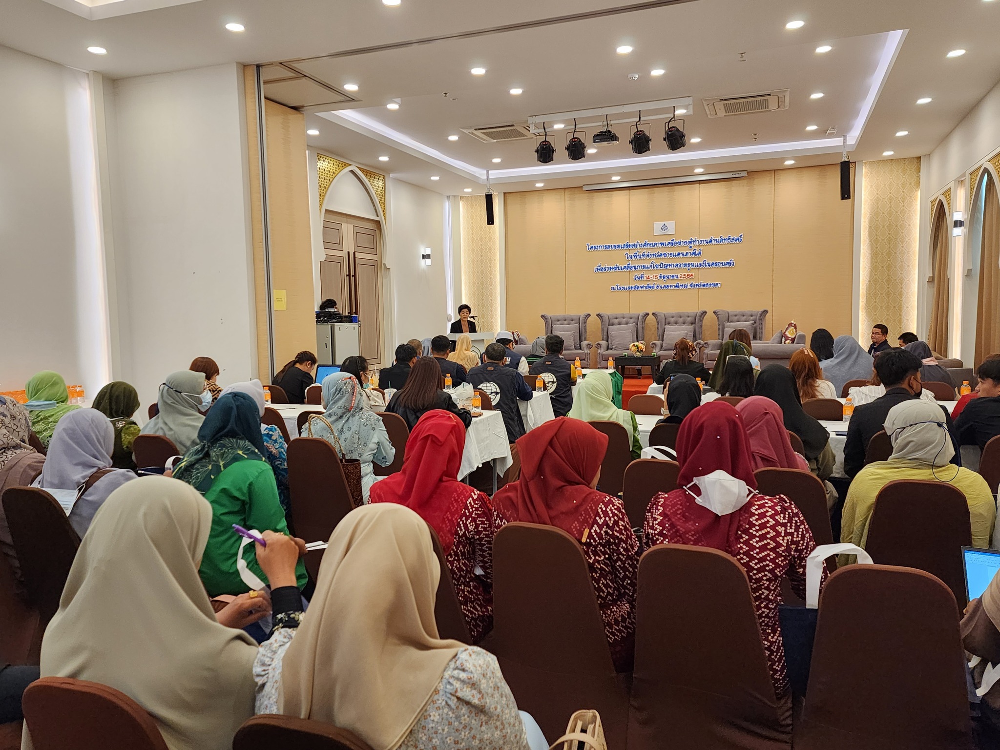 ทั้งนี้กิจกรรมการอบรมดังกล่าว จัดขึ้นระหว่างวันที่ 14 – 15 มิถุนายน 2566 โดยมีวัตถุประสงค์เพื่อรับฟังสถานการณ์ปัญหาความรุนแรงต่อสตรีและครอบครัวในพื้นที่จังหวัดชายแดนภาคใต้ ซึ่งมีบริบทของสภาพสังคมที่อ่อนไหวและซับซ้อนกว่าพื้นที่อื่น ๆ และเพื่อเสริมสร้างให้เครือข่ายสตรีมุสลิมในพื้นที่จังหวัดชายแดนภาคใต้มีความรู้ ความเข้าใจ และเกิดความตระหนักรู้ในเรื่องสิทธิมนุษยชน รวมทั้งพัฒนาศักยภาพผู้แทนเครือข่ายสตรีมุสลิมในพื้นที่จังหวัดชายแดนภาคใต้ ให้สามารถสื่อสาร ถ่ายทอดความรู้ และสร้างความตระหนักรู้ถึงความสำคัญของสิทธิมนุษยชนให้แก่สตรีมุสลิมในชุมชนของตนเองได้ ตลอดจนพัฒนาให้เครือข่ายสตรีมุสลิมในพื้นที่จังหวัดชายแดนภาคใต้เป็นกลไกด้านสิทธิมนุษยชนระดับพื้นที่ ซึ่งในปีนี้ ประเด็น “การแก้ไขปัญหาความรุนแรงในครอบครัว” เป็นหนึ่งในห้าประเด็นที่จะขับเคลื่อนผ่านงานสมัชชาสิทธิมนุษยชน ครั้งที่ 2 ที่จะจัดขึ้นระหว่างวันที่ 23 – 24 สิงหาคม 2566 ด้วย