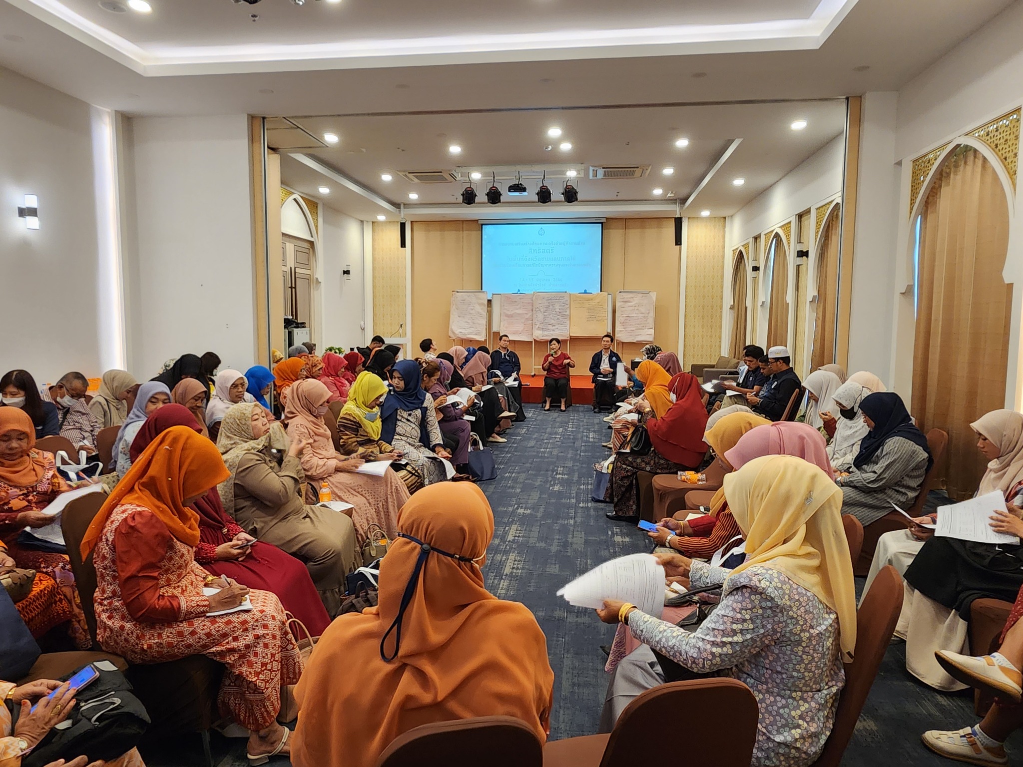 อนึ่ง กิจกรรมการอบรมดังกล่าว จัดขึ้นระหว่างวันที่ 14 – 15 มิถุนายน 2566 โดยมีวัตถุประสงค์เพื่อรับฟังสถานการณ์ปัญหาความรุนแรงต่อสตรีและครอบครัวในพื้นที่จังหวัดชายแดนภาคใต้ ซึ่งมีบริบทของสภาพสังคมที่อ่อนไหวและซับซ้อนกว่าพื้นที่อื่น ๆ และเพื่อเสริมสร้างให้เครือข่ายสตรีมุสลิมในพื้นที่จังหวัดชายแดนภาคใต้มีความรู้ ความเข้าใจ และเกิดความตระหนักรู้ในเรื่องสิทธิมนุษยชน รวมทั้งพัฒนาศักยภาพผู้แทนเครือข่ายสตรีมุสลิมในพื้นที่จังหวัดชายแดนภาคใต้ ให้สามารถสื่อสาร ถ่ายทอดความรู้ และสร้างความตระหนักรู้ถึงความสำคัญของสิทธิมนุษยชนให้แก่สตรีมุสลิมในชุมชนของตนเองได้ ตลอดจนพัฒนาให้เครือข่ายสตรีมุสลิมในพื้นที่จังหวัดชายแดนภาคใต้เป็นกลไกด้านสิทธิมนุษยชนระดับพื้นที่ ซึ่งในปีนี้ ประเด็น “การแก้ไขปัญหาความรุนแรงในครอบครัว” เป็นหนึ่งในห้าประเด็นที่จะขับเคลื่อนผ่านงานสมัชชาสิทธิมนุษยชน ครั้งที่ 2 ที่จะจัดขึ้นระหว่างวันที่ 23 – 24 สิงหาคม 2566 ด้วย