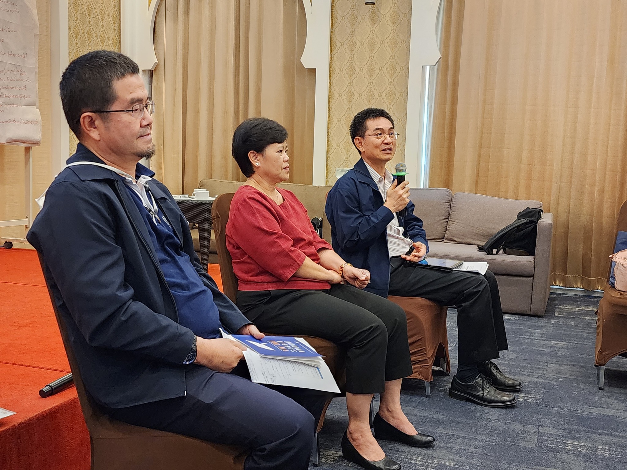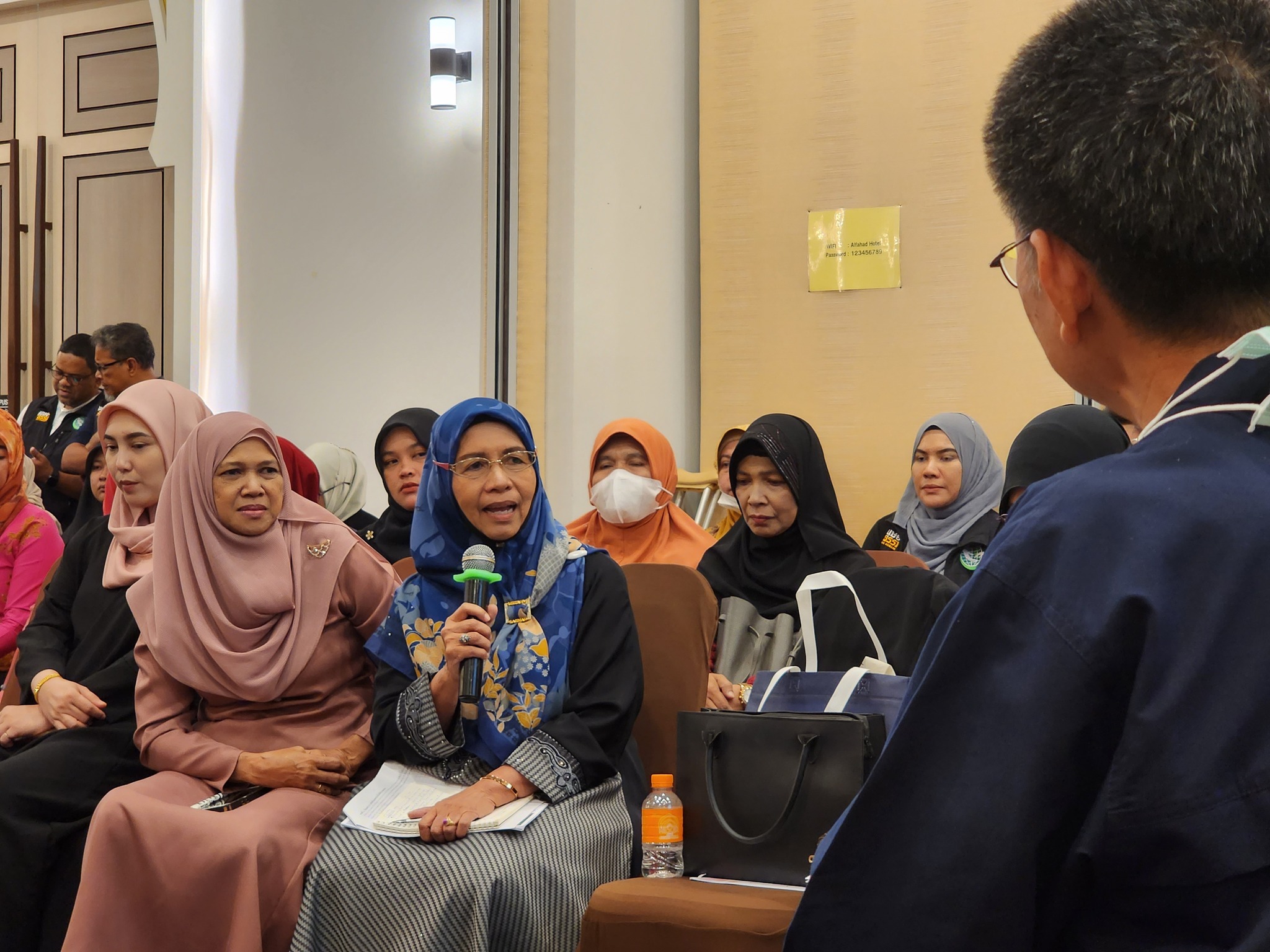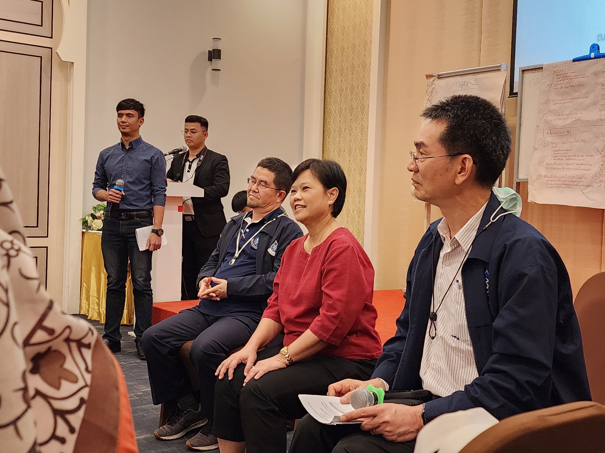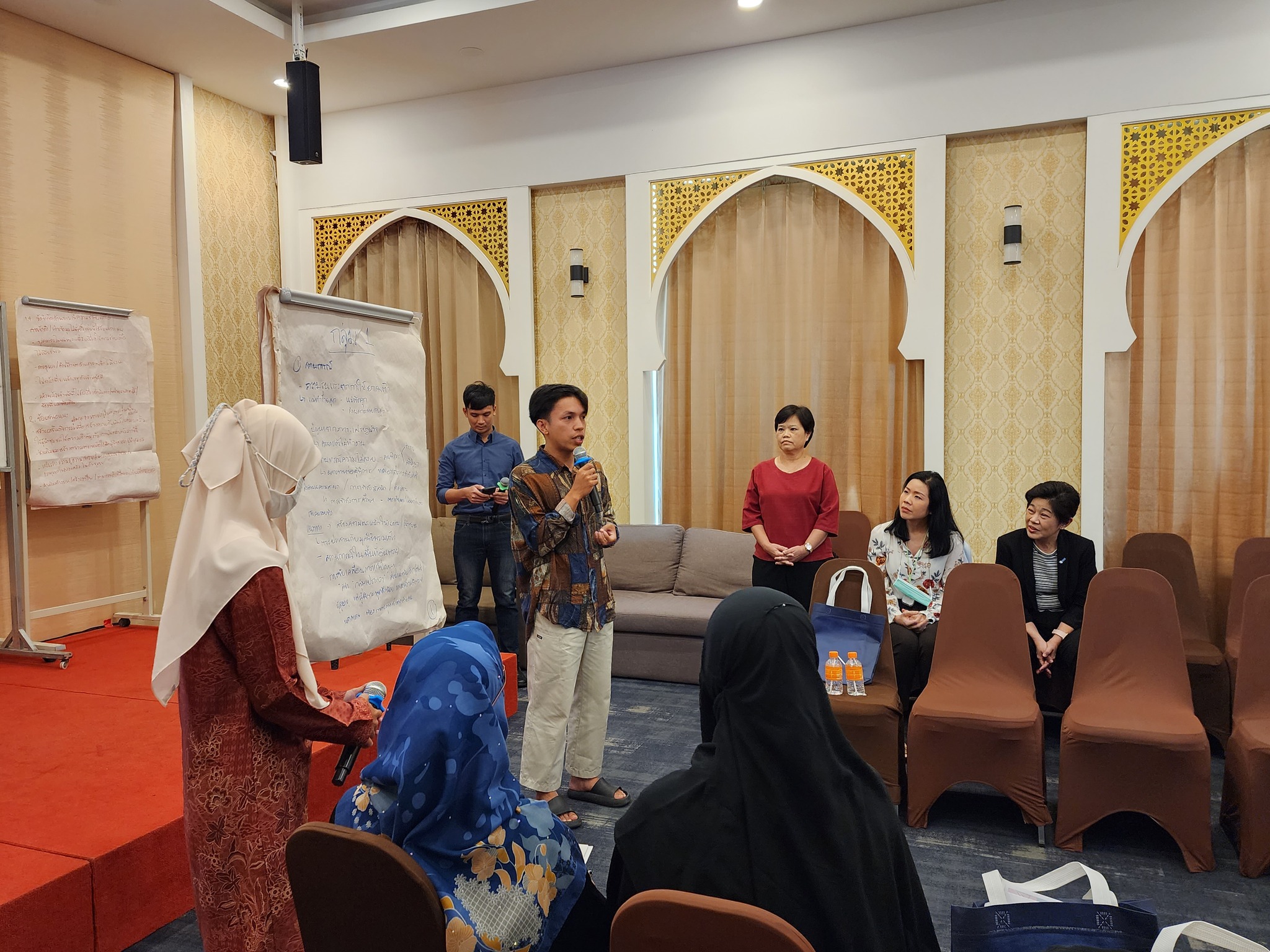 จากนั้น ผู้เข้าร่วมการอบรมได้นำเสนอผลการระดมความคิดเห็นกลุ่มย่อย จากการระดมความเห็นในกิจกรรมวันก่อนหน้า เกี่ยวกับสถานการณ์ความรุนแรงต่อสตรี ข้อเสนอแนะในการแก้ไขปัญหา และ ข้อเสนอแนะต่อ กสม. ในการขับเคลื่อนการแก้ไขปัญหาความรุนแรงต่อสตรีในจังหวัดชายแดนภาคใต้ ในการนี้ ผู้ช่วยศาสตราจารย์สุชาติ เศรษฐมาลินี นายวสันต์ ภัยหลีกลี้ และนางสาวสุภัทรา นาคะผิว กรรมการสิทธิมนุษยชนแห่งชาติ ได้ร่วมตอบข้อซักถามและแลกเปลี่ยนความคิดเห็นในประเด็นการขับเคลื่อนการทำงานกับ กสม. เพื่อแก้ไขปัญหาความรุนแรงต่อสตรีในจังหวัดชายแดนภาคใต้
