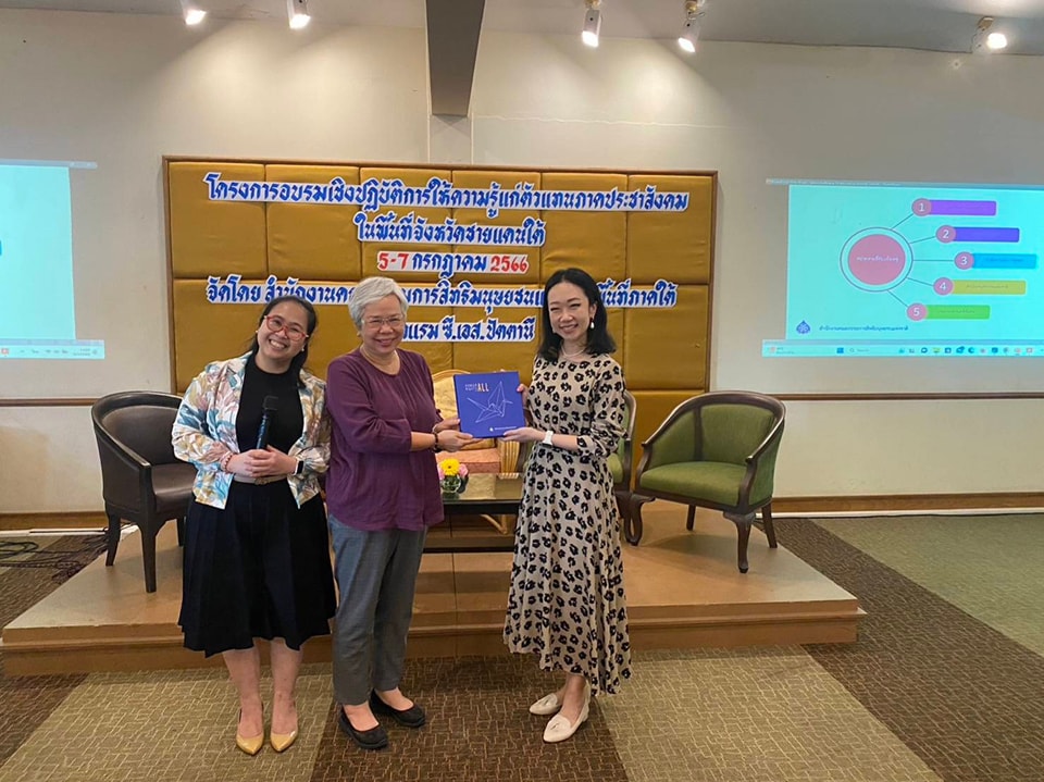 การอบรมดังกล่าวกำหนดจัดระหว่างวันที่ 5 - 7 กรกฎาคม 2566 โดยมีภาคประชาสังคมเข้ารับการอบรมจำนวน 100 คน ซึ่งผู้เข้าร่วมได้ให้ความสนใจรับฟังเเละร่วมอภิปรายเเลกเปลี่ยนความคิดเห็นกับวิทยากรอย่างเข้มข้น ทั้งนี้ โครงการอบรมดังกล่างมุ่งหวังให้เกิดความร่วมมือในการพัฒนาเเละยกระดับกระบวนการบังคับใช้พระราชบัญญัติป้องกันและปราบปรามการทรมานและการกระทำให้บุคคลสูญหาย พ.ศ. 2565 ให้มีประสิทธิภาพ โดยเฉพาะเพื่อให้สอดคล้องกับสภาพปัญหาเฉพาะในพื้นที่จังหวัดชายแดนภาคใต้ซึ่งมีการประกาศใช้กฎหมายในสถานการณ์พิเศษ