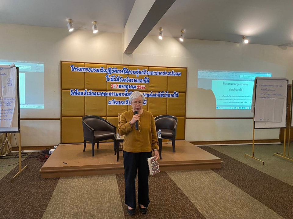 เมื่อวันที่ 7 กรกฎาคม 2566 คณะกรรมการสิทธิมนุษยชนแห่งชาติ (กสม.) โดยนางสาวปิติกาญจน์ สิทธิเดช และผู้ช่วยศาสตราจารย์สุชาติ เศรษฐมาลินี  กรรมการสิทธิมนุษยชนแห่งชาติ เข้าร่วมรับฟังความเห็นและเป็นวิทยากร “โครงการอบรมเชิงปฏิบัติการให้ความรู้แก่ตัวแทนภาคประชาสังคมในพื้นที่จังหวัดชายแดนใต้ เพื่อเสริมศักยภาพในการเฝ้าระวังการทรมานและบังคับสูญหาย” จัดโดย สำนักงาน กสม. ร่วมกับสถาบันนิติวัชร์ สำนักงานอัยการสูงสุด (วันที่สาม) ณ ห้องสะบารัง 2 โรงแรม ซี.เอส.ปัตตานี ตำบลรูสะมิแล อำเภอเมืองปัตตานี จังหวัดปัตตานี