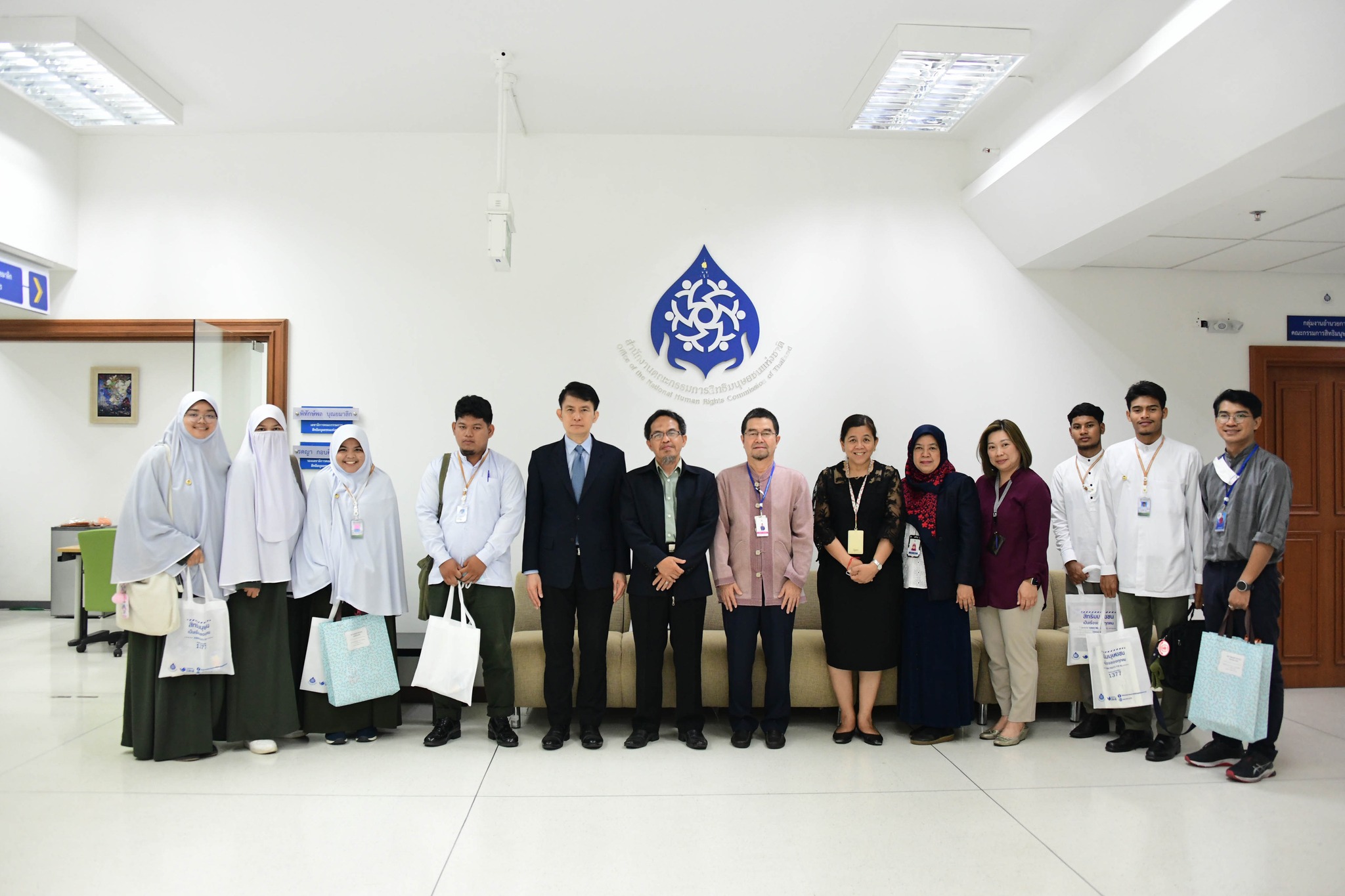 เมื่อวันที่ 18 สิงหาคม 2566 เวลา 09.00 น. ผู้ช่วยศาสตราจารย์สุชาติ เศรษฐมาลินี กรรมการสิทธิมนุษยชนแห่งชาติ และนายพิทักษ์พล บุณยมาลิก เลขาธิการคณะกรรมการสิทธิมนุษยชนแห่งชาติ พร้อมด้วยเจ้าหน้าที่สำนักงานคณะกรรมการสิทธิมนุษยชนแห่งชาติ (สำนักงาน กสม.) ต้อนรับและบรรยายเรื่องบทบาท หน้าที่และอำนาจของคณะกรรมการสิทธิมนุษยชนแห่งชาติ รวมถึงความรู้เรื่องสิทธิมนุษยชนให้แก่อาจารย์และนักศึกษาสาขานิติศาสตร์ คณะอิสลามศึกษาและนิติศาสตร์ มหาวิทยาลัยฟาฏอนี ในโอกาสศึกษาดูงาน ณ สำนักงาน กสม. ศูนย์ราชการเฉลิมพระเกียรติฯ ถนนแจ้งวัฒนะ