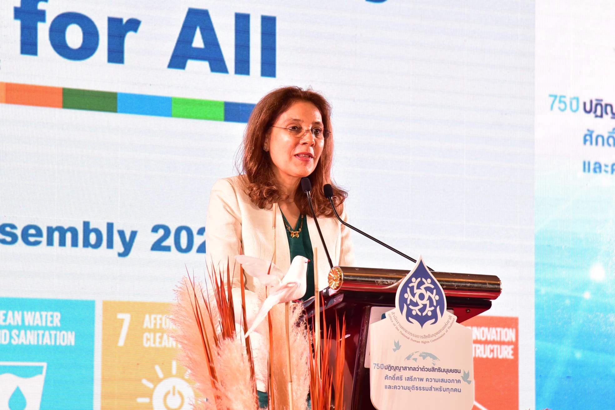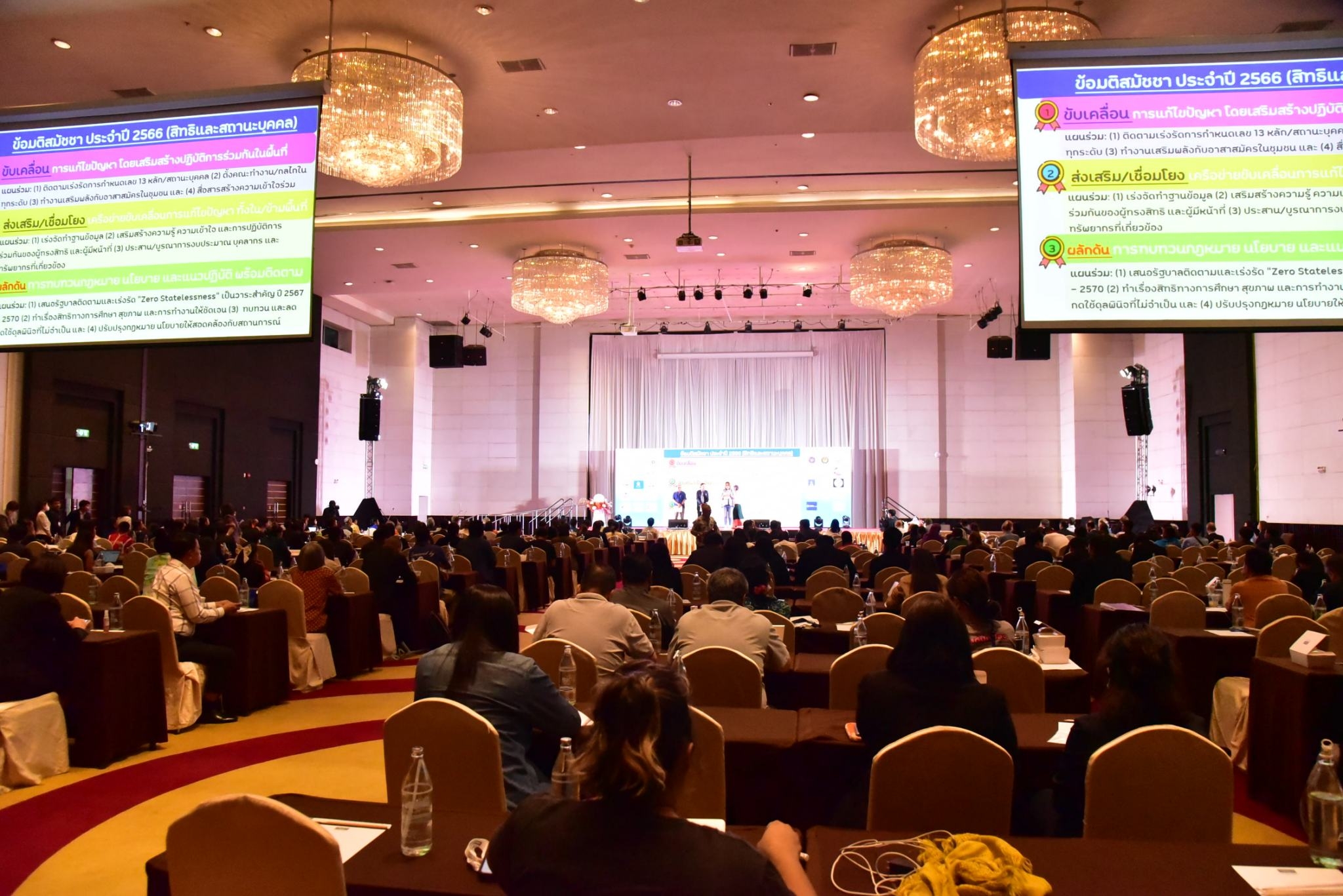 วันที่ 24 สิงหาคม 2566 เวลา 09.00 น. ที่โรงแรมเซ็นทรา บายเซ็นทาราศูนย์ราชการและคอนเวนชันเซ็นเตอร์ แจ้งวัฒนะ คณะกรรมการสิทธิมนุษยชนแห่งชาติ (กสม.) ร่วมกับภาคีเครือข่าย เปิดงาน “สมัชชาสิทธิมนุษยชน ประจำปี 2566” ภายใต้แนวคิด “75 ปี ปฏิญญาสากลว่าด้วยสิทธิมนุษยชน ศักดิ์ศรี เสรีภาพ ความเสมอภาค และความยุติธรรมสำหรับทุกคน” โดยมีนางสาวพรประไพ กาญจนรินทร์ ประธานกรรมการสิทธิมนุษยชนแห่งชาติ เป็นประธานกล่าวเปิด กรรมการสิทธิมนุษยชนแห่งชาติ ได้แก่ นางปรีดา คงแป้น ผู้ช่วยศาสตราจารย์สุชาติ เศรษฐมาลินี นางสาวศยามล ไกยูรวงศ์  นางสาวปิติกาญจน์ สิทธิเดช นายวสันต์ ภัยหลีกลี้ และนางสาวสุภัทรา นาคะผิว พร้อมด้วยผู้บริหารสำนักงาน กสม. รวมทั้งผู้แทนภาคส่วนต่าง ๆ ได้แก่ ผู้แทนองค์การระหว่างประเทศและสถานเอกอัครราชทูตประจำประเทศไทย ผู้บริหารส่วนราชการ ภาควิชาการ ภาคการศึกษา และภาคประชาสังคม เข้าร่วมงาน ณ ที่ตั้งและผ่านระบบออนไลน์กว่า 500 คน ภายหลังจากการเปิดงานสมัชชาสิทธิมนุษยชน มีการปาฐกถา หัวข้อ“ศักดิ์ศรี เสรีภาพ ความเสมอภาค และความยุติธรรมสำหรับทุกคน” โดย Ms. Gita Sabharwal จาก United Nations Resident Coordinator นางพาตีเมาะ  สะดียามู ผู้ว่าราชการจังหวัดปัตตานี  และนายสมชาย  หอมลออ กรรมการป้องกันและปราบปรามการทรมานและการกระทำให้บุคคลสูญหายและที่ปรึกษาอาวุโสมูลนิธิผสานวัฒนธรรม และสมาคมสิทธิเสรีภาพของประชาชน
