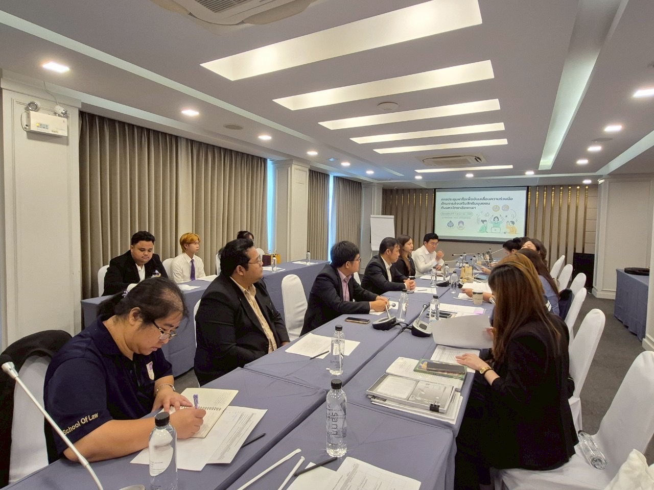 เมื่อวันที่ 8 พฤษภาคม 2568 นางสาวรตญา  กอบศิริกาญจน์ รองเลขาธิการคณะกรรมการสิทธิมนุษยชนแห่งชาติ พร้อมด้วยเจ้าหน้าที่สำนักงานคณะกรรมการสิทธิมนุษยชนแห่งชาติ (สำนักงาน กสม.) ประชุมหารือกับคณบดี ผู้บริหาร และตัวแทนนิสิตคณะนิติศาสตร์ มหาวิทยาลัยพะเยา ณ โรงแรมแสน โฮเทล จังหวัดเชียงราย