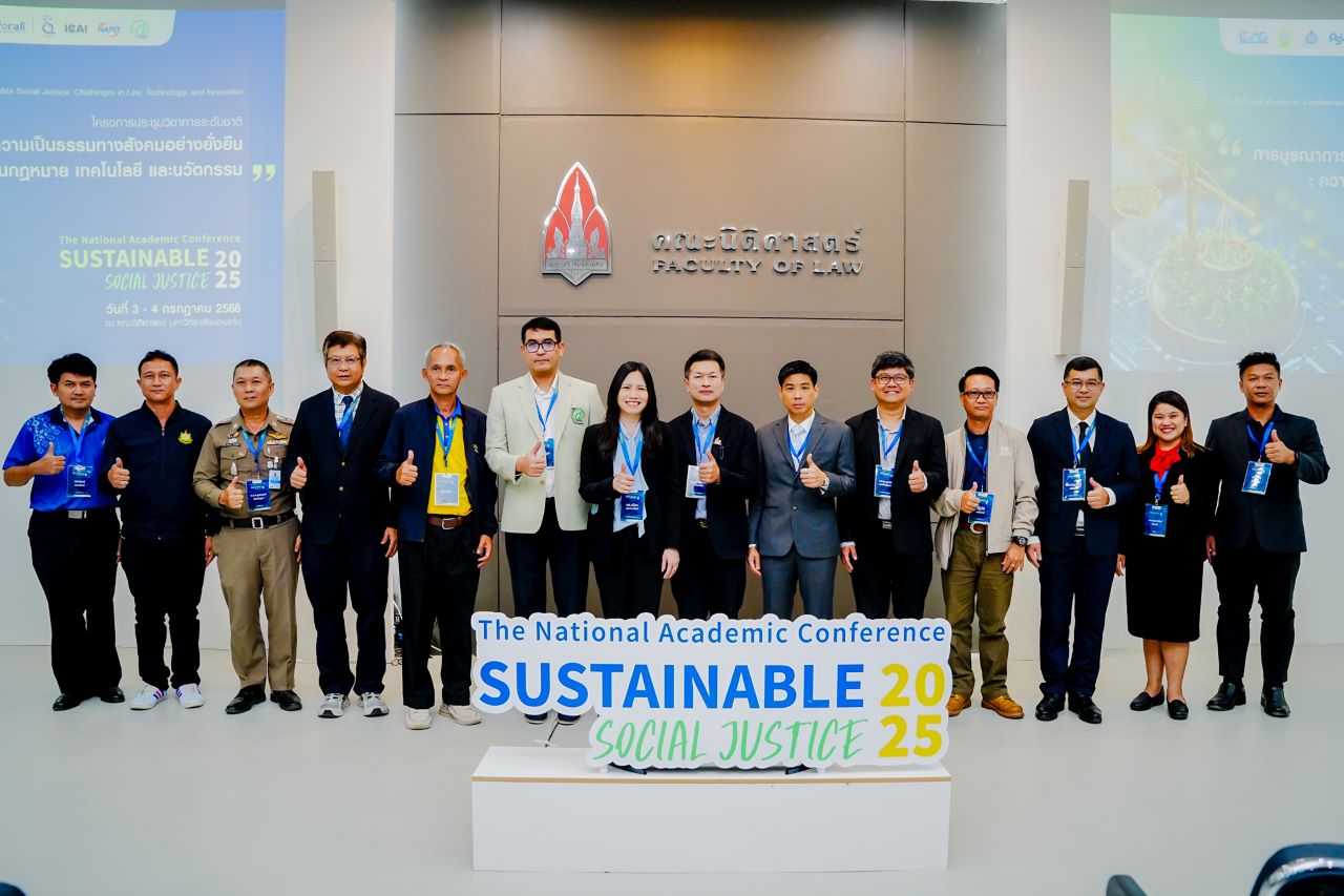 เมื่อวันที่ 3-4 กรกฎาคม พ.ศ. 2568 ที่คณะนิติศาสตร์ มหาวิทยาลัยขอนแก่น สำนักงานคณะกรรมการสิทธิมนุษยชนแห่งชาติ (สำนักงาน กสม.) โดยสำนักงาน กสม. พื้นที่ภาคตะวันออกเฉียงเหนือ ร่วมกับคณะนิติศาสตร์ มหาวิทยาลัยขอนแก่น และภาคีเครือข่ายทางวิชาการ ได้แก่ คณะนิติศาสตร์ มหาวิทยาลัยเชียงใหม่ คณะนิติศาสตร์ มหาวิทยาลัยสงขลานครินทร์ สำนักงานการวิจัยแห่งชาติ (วช.) สมาคมสถาบันอุดมศึกษาสิ่งแวดล้อมไทย สถาบันวิจัยดาราศาสตร์แห่งชาติ (องค์การมหาชน) และ International Center for Academic Integrity (ICAI) จัดการประชุมวิชาการระดับชาติ ภายใต้หัวข้อการบูรณาการเพื่อสร้างความเป็นธรรมทางสังคมอย่างยั่งยืน ความท้าทายด้านกฎหมาย เทคโนโลยี และนวัตกรรม โดยมีวัตถุประสงค์เพื่อเปิดพื้นที่ทางวิชาการสำหรับแลกเปลี่ยนองค์ความรู้ระหว่างนักวิจัย และภาคีเครือข่าย ทั้งในระดับประเทศและภูมิภาค และเพื่อบูรณาการองค์ความรู้ข้ามสายโดยเฉพาะประเด็นเกี่ยวกับความเป็นธรรมทางสังคม และการพัฒนาอย่างยั่งยืน เพื่อตอบสนองต่อความท้าทายของสังคมไทยและสังคมโลกในยุคปัจจุบัน โดยมีเวทีเสวนาวิชาการเพื่อแลกเปลี่ยนองค์ความรู้และผลงานจากนักวิชาการทั่วประเทศกว่า 30 ผลงาน ครอบคลุมหลากหลายศาสตร์ ซึ่งแบ่งเวทีออกดังนี้