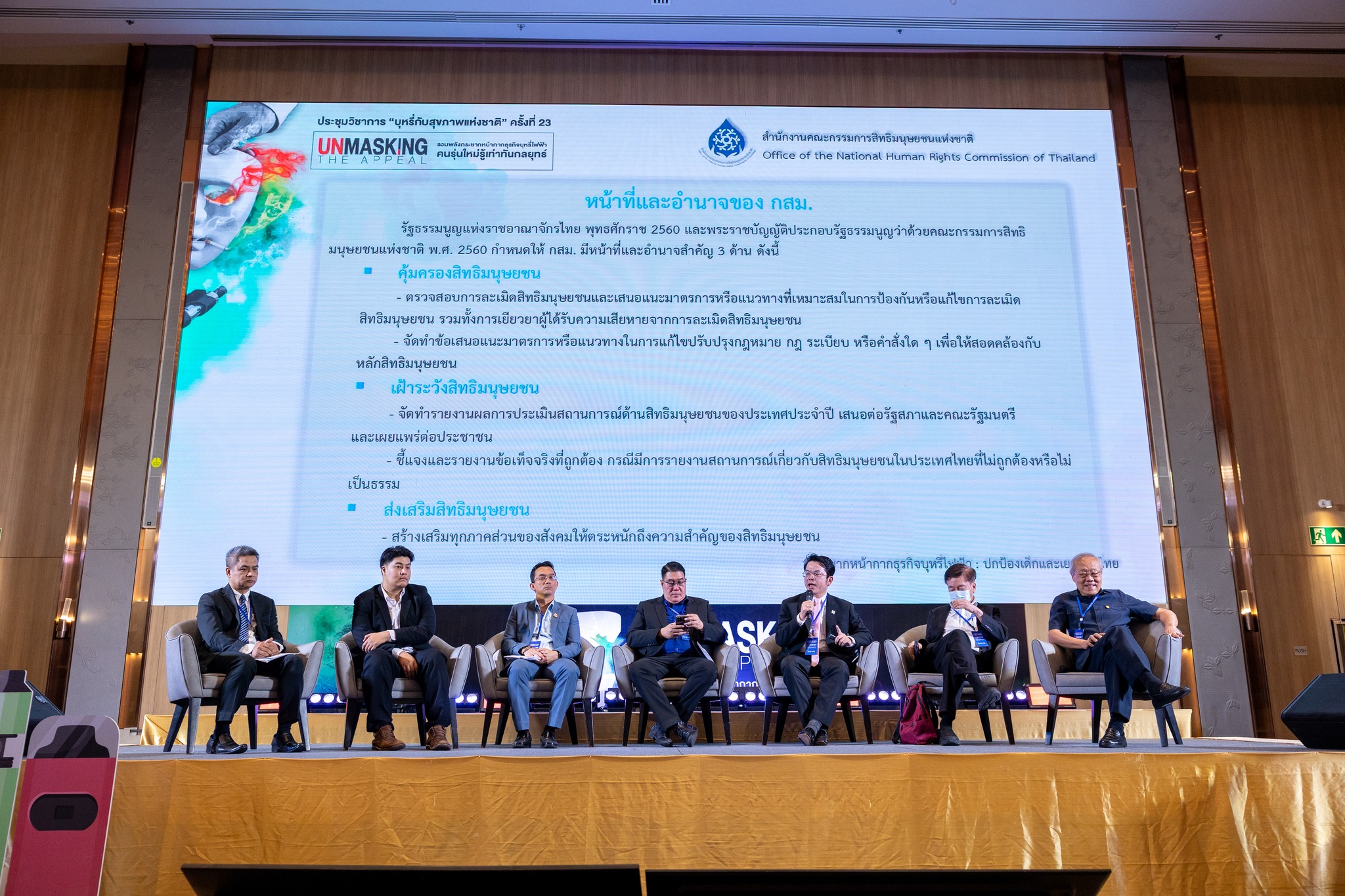เมื่อวันที่ 5 สิงหาคม 2568 นายภาณุพันธ์  สมสกุล ที่ปรึกษาสำนักงานคณะกรรมการสิทธิมนุษยชนแห่งชาติ (สำนักงาน กสม.) ได้รับมอบหมายจากเลขาธิการคณะกรรมการสิทธิมนุษยชนแห่งชาติ ร่วมเป็นวิทยากรในการประชุมวิชาการ “บุหรี่กับสุขภาพแห่งชาติ” ครั้งที่ 23 เรื่อง “รวมพลังกระชากหน้ากากธุรกิจบุหรี่ไฟฟ้า : คนรุ่นใหม่รู้เท่าทันกลยุทธ์” จัดโดย ศูนย์วิจัยและจัดการความรู้เพื่อการควบคุมยาสูบ (ศจย.) คณะแพทยศาสตร์โรงพยาบาลรามาธิบดี มหาวิทยาลัยมหิดล