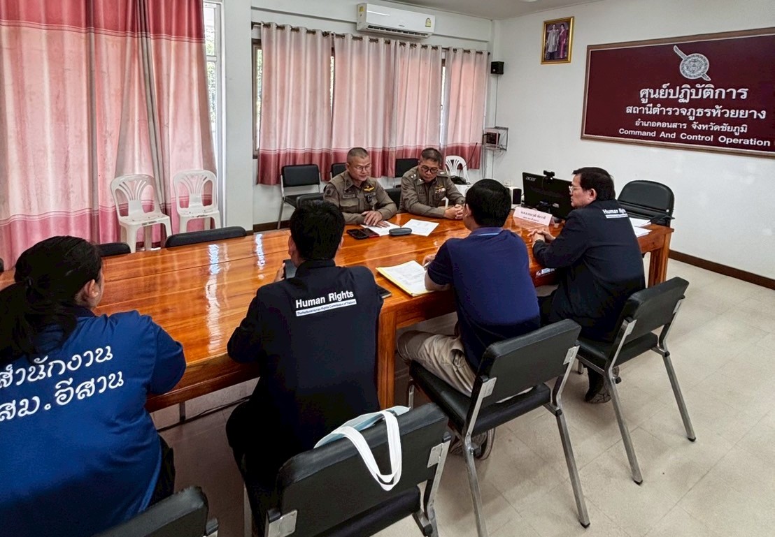 วันที่ 8 สิงหาคม 2568 ผู้อำนวยการสำนักงาน กสม.พื้นที่ภาคตะวันออกเฉียงเหนือ พร้อมคณะเจ้าหน้าที่ ได้เข้าพบและรับฟังข้อเท็จจริงจากรองผู้กำกับการสถานีตำรวจห้วยยาง พร้อมเจ้าหน้าที่ตำรวจที่เกี่ยวข้อง ณ สถานีตำรวจภูธรห้วยยาง อำเภอคอนสาร จังหวัดชัยภูมิ