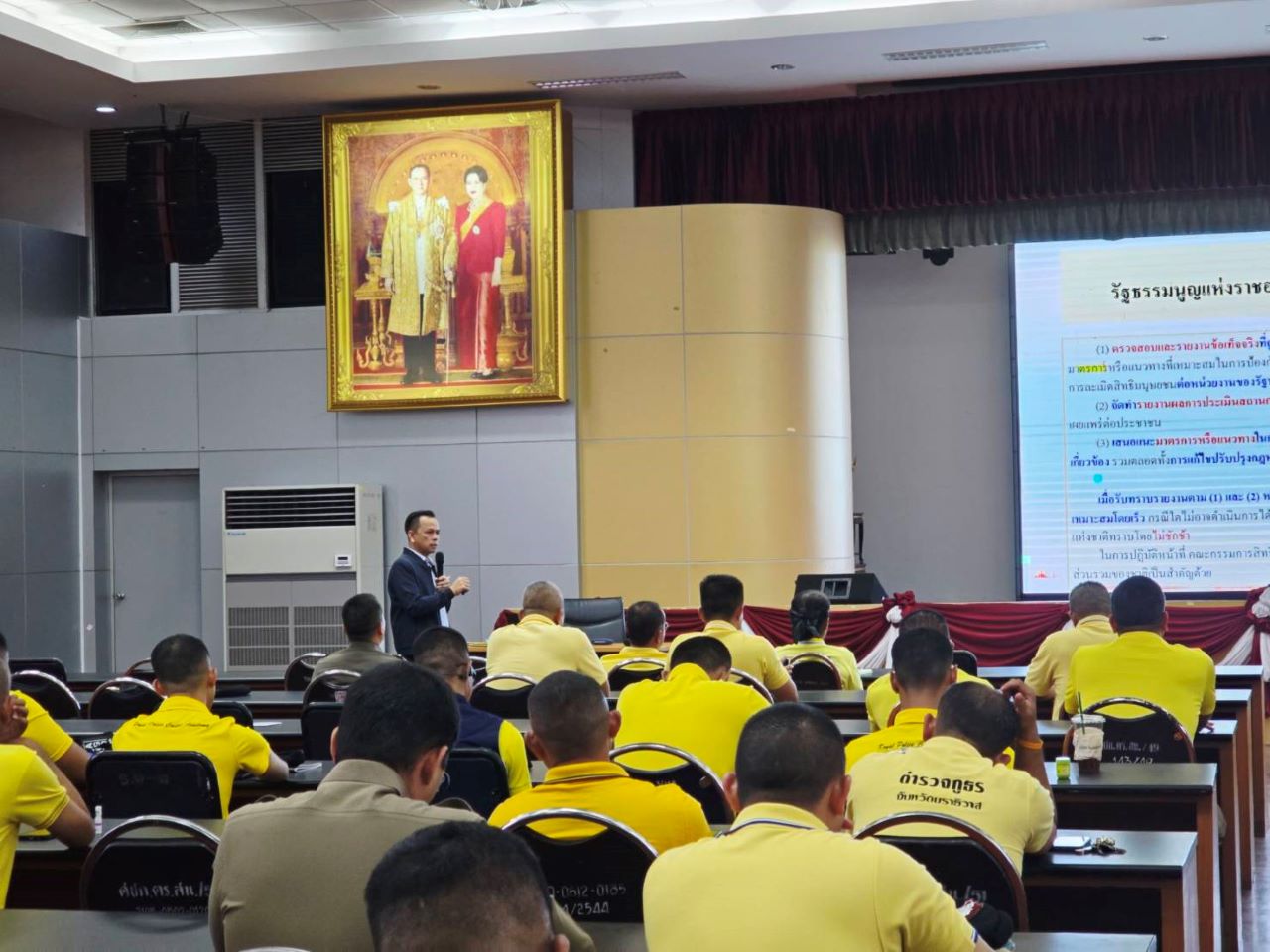 เมื่อวันที่ 18 สิงหาคม พ.ศ. 2568 เวลา 13.00 น. ที่ศูนย์ฝึกอบรมตำรวจภาค 9 ตำบลสะเตง อำเภอเมืองยะลา จังหวัดยะลา นายสุเรนทร์  ปะดุกา ผู้อำนวยการสำนักงานคณะกรรมการสิทธิมนุษยชนแห่งชาติพื้นที่ภาคใต้ (สำนักงาน กสม. พื้นที่ภาคใต้) ได้รับมอบหมายจากเลขาธิการคณะกรรมการสิทธิมนุษยชนแห่งชาติให้เป็นวิทยากรบรรยายให้ความรู้ในหัวข้อ “สิทธิมนุษยชน และสิทธิ เสรีภาพตามรัฐธรรมนูญ” ตามโครงการฝึกอบรมหลักสูตรพัฒนาประสิทธิภาพการปฏิบัติงานของข้าราชการตำรวจในสังกัดตำรวจภูธรภาค 9 โดยมีกลุ่มเป้าหมายได้แก่ ข้าราชการตำรวจระดับสารวัตรถึงรองสารวัตร สายงานสอบสวน จำนวน 225 นาย