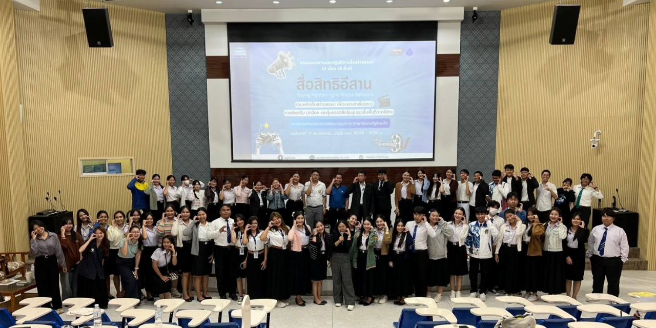 เมื่อวันที่ 17 พฤศจิกายน 2568 ที่คณะครุศาสตร์และการพัฒนามนุษย์ มหาวิทยาลัยราชภัฏร้อยเอ็ด จังหวัดร้อยเอ็ด สำนักงานคณะกรรมการสิทธิมนุษยชนแห่งชาติพื้นที่ภาคตะวันออกเฉียงเหนือ (สำนักงาน กสม. พื้นที่ภาคตะวันออกเฉียงเหนือ) ร่วมกับกองบรรณาธิการ Thai PBS Locals ฝ่ายพัฒนานักสื่อสารพลเมือง สำนักเครือข่ายและการมีส่วนร่วมสาธารณะ Thai PBS จัดกิจกรรมการอบรมเชิงปฏิบัติการ “สื่อสิทธิอีสาน : Young Human Rights Media Network” ครั้งที่ 1 ให้แก่นักศึกษาสาขาวิชาสังคมศาสตร์ คณะครุศาสตร์และการพัฒนามนุษย์ มหาวิทยาลัยราชภัฏร้อยเอ็ด และนักศึกษาจากสถาบันอื่น ๆ ในภาคตะวันออกเฉียงเหนือ รวมจำนวน 85 คน โดยมีวัตถุประสงค์เพื่อสร้างเครือข่ายนักสื่อสารสิทธิมนุษยชนคนรุ่นใหม่ภายในสถาบันอุดมศึกษาต่าง ๆ โดยการเรียนรู้สิทธิมนุษยชนและปฏิบัติการสื่อสารอย่างสร้างสรรค์เพื่อบอกเล่าเรื่องราวการส่งเสริม ปกป้อง และคุ้มครอง สิทธิมนุษยชนในพื้นที่ ผ่านทักษะการผลิตสื่อที่หลากหลาย ( Multi-Platform) และร่วมเป็นส่วนหนึ่งในการสร้างระบบนิเวศการสื่อสารสาธารณะท้องถิ่น โดยปฏิบัติการสื่อสารเพื่อบอกเล่าเรื่องราวสิทธิมนุษยชนในภาคอีสาน รวมถึงเพื่อสร้างพื้นที่การทำงานและขยายความร่วมมือด้านสิทธิมนุษยชนกับเครือข่ายสถาบันอุดมศึกษาในพื้นที่ภูมิภาคอย่างต่อเนื่อง