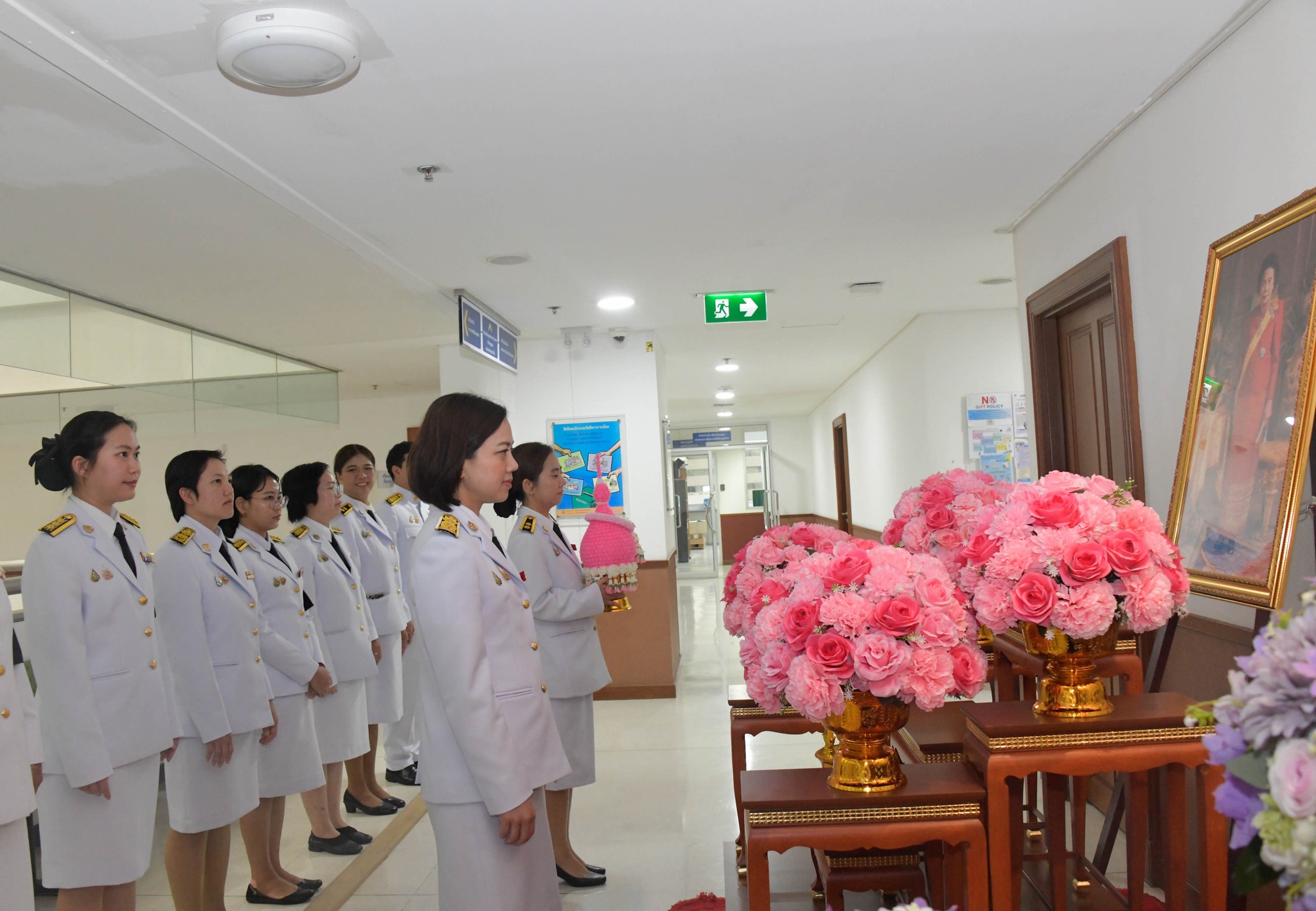 จากนั้น เวลา 11.00 น. ผู้อำนวยการสำนักสิทธิมนุษยชนระหว่างประเทศ พร้อมด้วยเจ้าหน้าที่สำนักงานคณะกรรมการสิทธิมนุษยชนแห่งชาติ ถวายแจกันดอกไม้ หน้าพระบรมฉายาลักษณ์สมเด็จพระเจ้าภคินีเธอ เจ้าฟ้าเพชรรัตนราชสุดา สิริโสภาพัณณวดี เนื่องในโอกาสวันคล้ายวันประสูติครบ 100 ปี ณ บริเวณหน้าห้องรับรอง 604 สำนักงานคณะกรรมการสิทธิมนุษยชนแห่งชาติ
