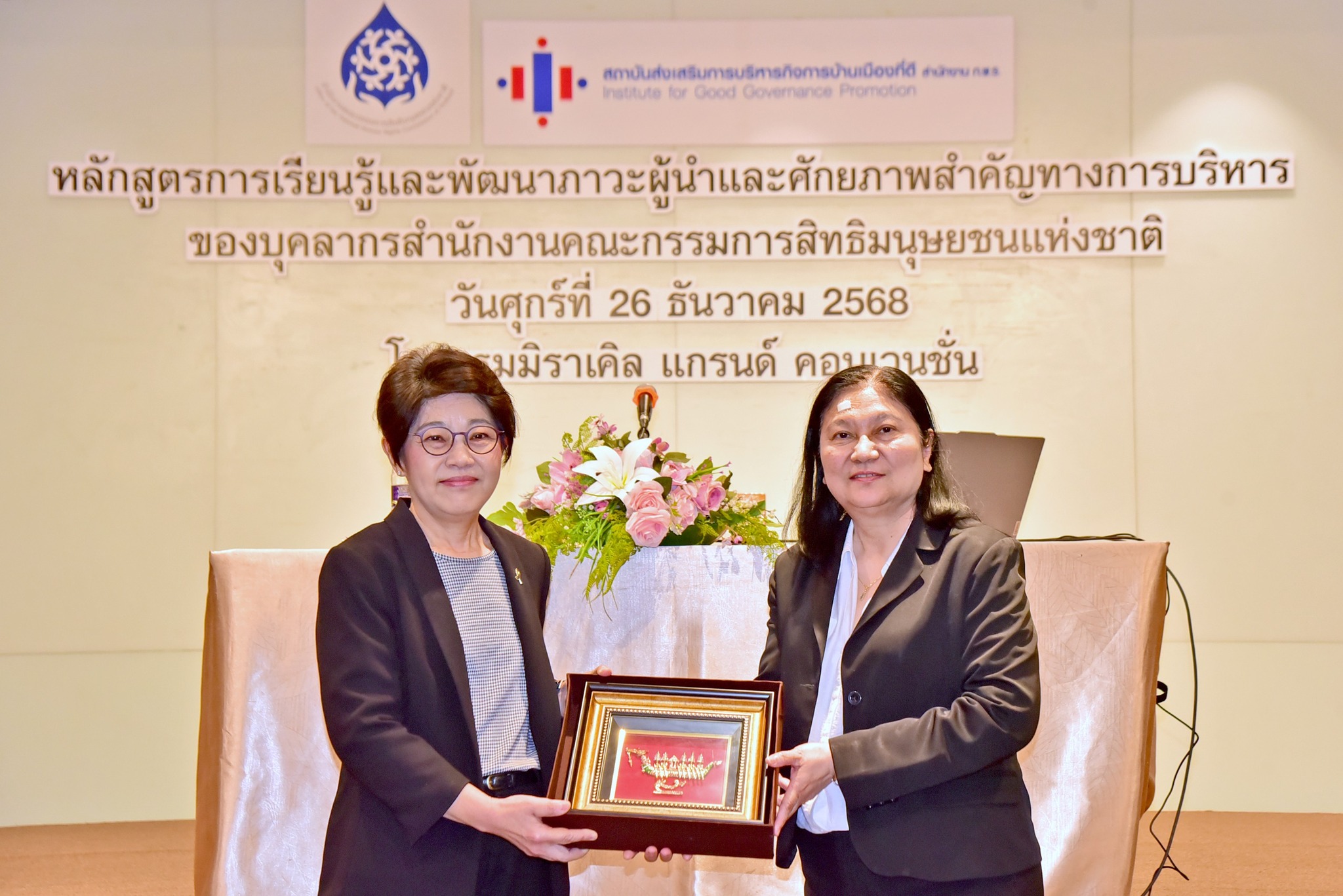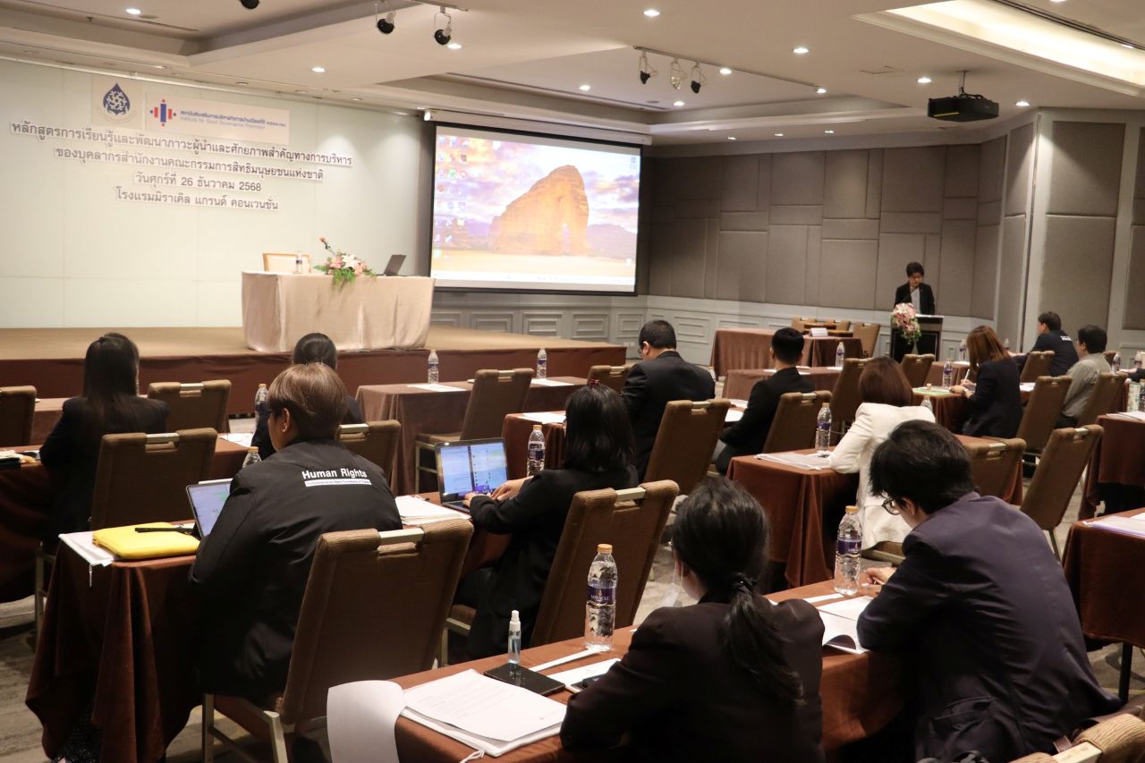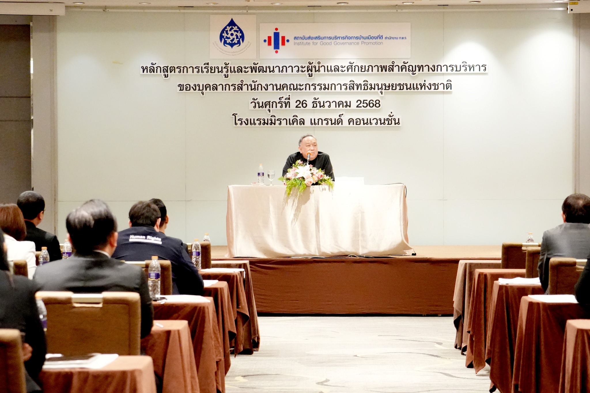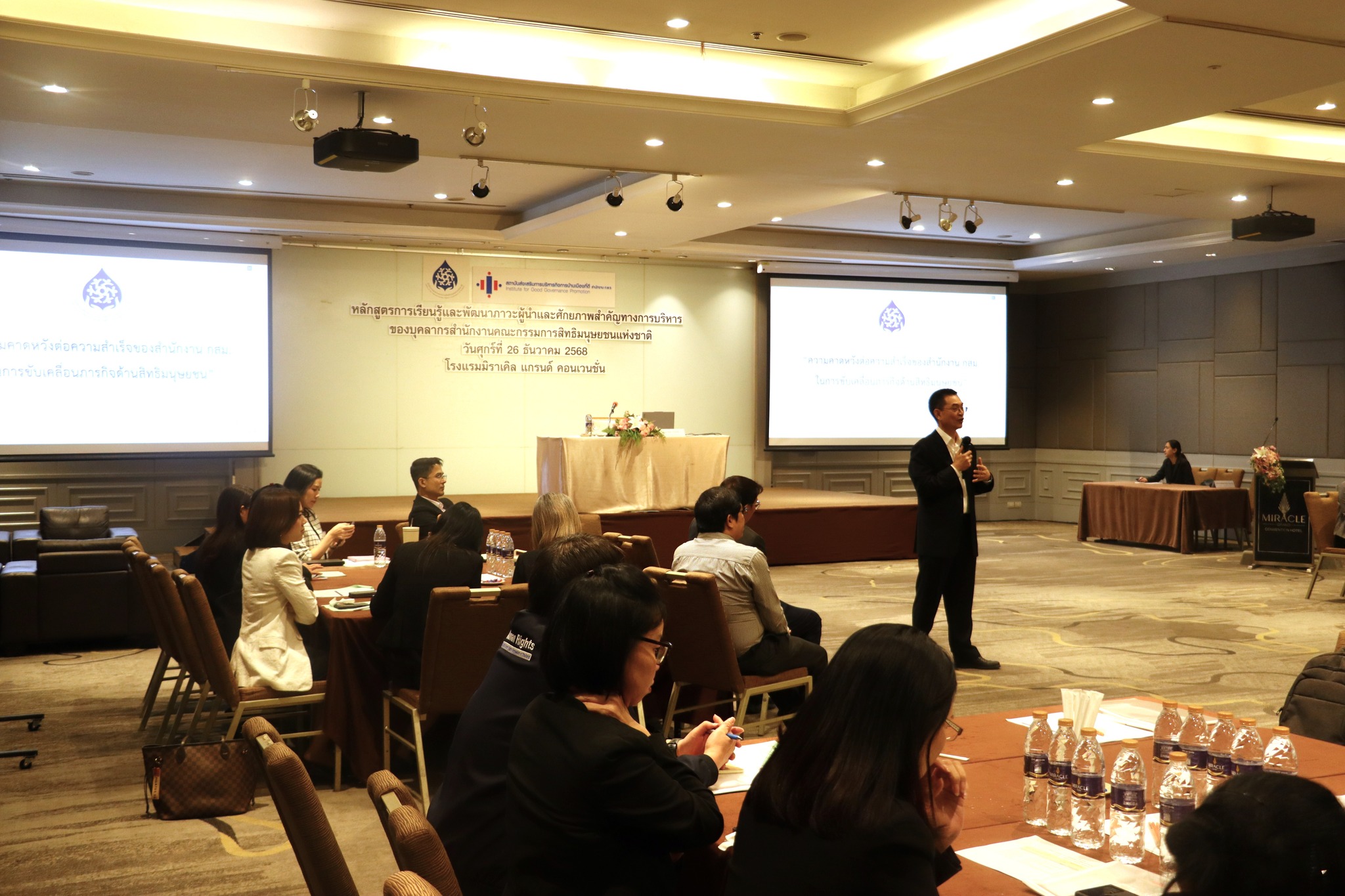 เมื่อวันที่ 26 ธันวาคม 2568 เวลา 09.15 น. ที่ห้องประชุม แมจิก (Magic) 2 ชั้น 2 โรงแรมมิราเคิล แกรนด์ คอนเวนชั่น ถนนวิภาวดีรังสิต หลักสี่ กรุงเทพมหานคร นางสาวหรรษา  หอมหวล เลขาธิการคณะกรรมการสิทธิมนุษยชนแห่งชาติ แสดงวิสัยทัศน์ด้านการพัฒนาบุคลากรสำนักงาน กสม. และกล่าวเปิดการอบรมหลักสูตรการเรียนรู้และพัฒนาภาวะผู้นำและศักยภาพทางการบริหารของบุคลากรสำนักงาน กสม. ภายใต้โครงการพัฒนาศักยภาพทางการบริหารของบุคลากร: หลักสูตรการพัฒนาศักยภาพทางการบริหารสำหรับผู้บริหารสำนักงาน กสม. เพื่อพัฒนาความรู้ ความสามารถ ทักษะ และคุณลักษณะที่จำเป็นของนักบริหารให้สอดคล้องกับบทบาทและหน้าที่ความรับผิดชอบในปัจจุบัน ตลอดจนเสริมสร้างและยกระดับสมรรถนะด้านการบริหารให้สามารถปรับมุมมอง แนวคิด วิธีการทำงาน การสื่อสาร และกระบวนการแก้ไขปัญหาให้เหมาะสมกับสถานการณ์และบริบทขององค์กร เพื่อเตรียมความพร้อมสำหรับการเข้าสู่ตำแหน่งทางการบริหารที่สูงขึ้นในอนาคต