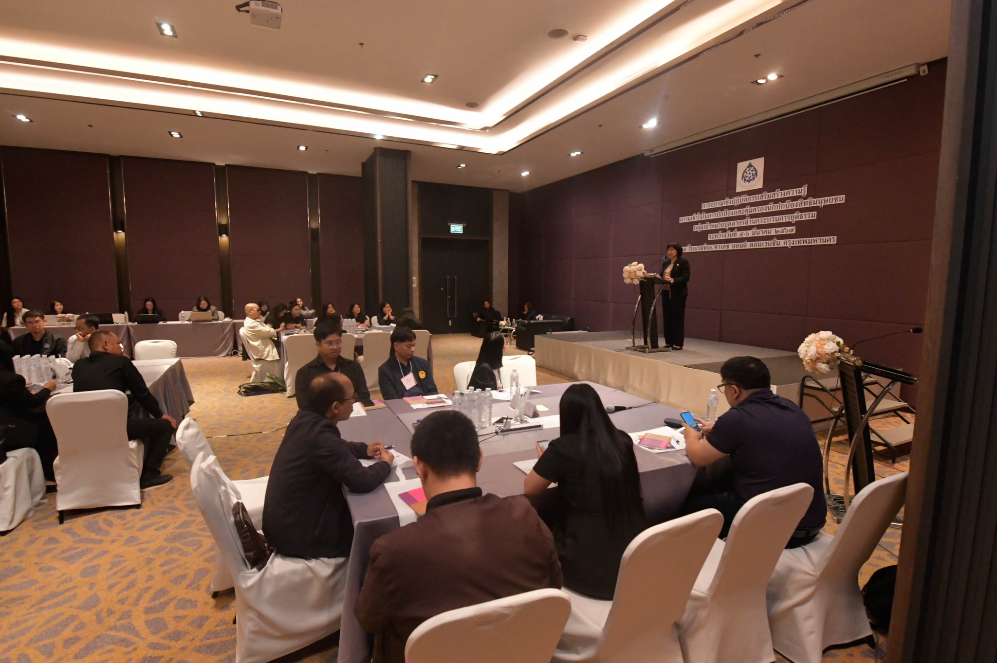เมื่อวันที่ 5 – 6 มีนาคม 2569 สำนักงานคณะกรรมการสิทธิมนุษยชนแห่งชาติ (สำนักงาน กสม.) จัดการอบรมเชิงปฏิบัติการเสริมสร้างความรู้ ความเข้าใจในการปกป้องและคุ้มครองนักปกป้องสิทธิมนุษยชนแก่บุคลากรด้านกระบวนการยุติธรรม ภายใต้โครงการเสริมสร้างความรู้ ความเข้าใจ และความตระหนักด้านสิทธิมนุษยชน โรงแรม ทีเค. พาเลซ แอนด์ คอนเวนชั่น แจ้งวัฒนะ เขตหลักสี่ กรุงเทพมหานคร โดยมีวัตถุประสงค์เพื่อสร้างความรู้ความเข้าใจด้านกฎหมาย หลักการสิทธิมนุษยชน และบทบาทของนักปกป้องสิทธิมนุษยชน ในการนำองค์ความรู้ไปบูรณาการขับเคลื่อนงานตามภารกิจของหน่วยงานที่หนุนเสริมความเข้มแข็งในการปกป้องและคุ้มครองนักปกป้องสิทธิมนุษยชนจากการถูกละเมิดในรูปแบบต่างๆ ในการนี้นางสาวศยามล ไกยูรวงศ์ กรรมการสิทธิมนุษยชนแห่งชาติ เป็นประธานเปิดการอบรมและเป็นผู้ดำเนินรายการในเวทีเสวนาแลกเปลี่ยนความรู้เกี่ยวกับสิทธิมนุษยชนและบทบาทของนักปกป้องสิทธิมนุษยชน นายไพโรจน์ พลเพชร ที่ปรึกษาประจำคณะกรรมการสิทธิมนุษยชนแห่งชาติ ร่วมเป็นวิทยากร และนางสาววรพร นรเศรษฐวิวัฒน์ ที่ปรึกษาสำนักงาน กสม. ด้านสิทธิมนุษยชน กล่าวชี้แจงวัตถุประสงค์การอบรม ทั้งนี้ มีผู้เข้าร่วมอบรมจากสำนักงานยุติธรรมจังหวัด ศูนย์ดำรงธรรมจังหวัด กรมคุ้มครองสิทธิและเสรีภาพ กระทรวงยุติธรรม และเจ้าหน้าที่สำนักงาน กสม. เข้าร่วมจำนวน 40 คน