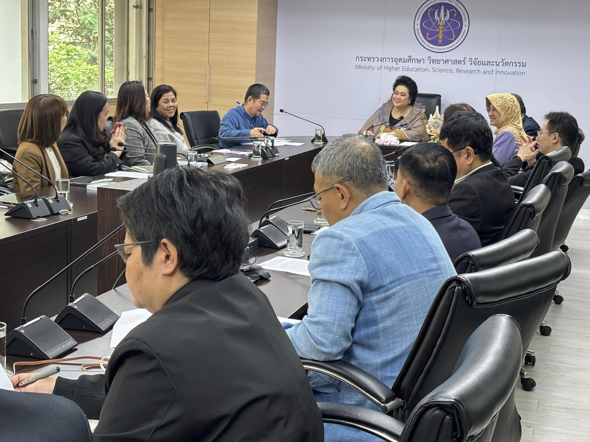 วันที่ 22 มกราคม 2568 เวลา 15.00 น. ที่กระทรวงการอุดมศึกษา วิทยาศาสตร์ วิจัยและนวัตกรรม (อว.) ผู้ช่วยศาสตราจารย์สุชาติ เศรษฐมาลินี กรรมการสิทธิมนุษยชนแห่งชาติ พร้อมด้วยนางสาวรตญา  กอบศิริกาญจน์ รองเลขาธิการคณะกรรมการสิทธิมนุษยชนแห่งชาติ ผู้บริหารและเจ้าหน้าที่สำนักงานคณะกรรมการสิทธิมนุษยชนแห่งชาติ ได้เข้าพบ นางสาวศุภมาส อิศรภักดี รัฐมนตรีว่าการกระทรวง อว. นายศุภชัย ใจสมุทร ผู้ช่วยรัฐมนตรีประจำกระทรวง อว. แพทย์หญิงเพชรดาว โต๊ะมีนา ที่ปรึกษารัฐมนตรีว่าการกระทรวง อว. ศาสตราจารย์ศุภชัย ปทุมนากุล ปลัดกระทรวง อว. ผู้บริหารและเจ้าหน้าที่ อว. เพื่อประสานความร่วมมือด้านการส่งเสริมสิทธิมนุษยชน โดยได้ร่วมแลกเปลี่ยนความคิดเห็นเกี่ยวกับแนวทางการบูรณาการการทำงานร่วมกันในประเด็นเกี่ยวกับการจัดทำแนวนโยบายและแนวปฏิบัติด้านสิทธิมนุษยชน การจัดทำหลักสูตรสิทธิมนุษยชนศึกษาหรือคู่มือการสอน การจัดทำวิจัย การจัดอบรม การจัดกิจกรรมด้านสิทธิมนุษยชน และความคืบหน้าร่างบันทึกข้อตกลงความร่วมมือด้านการส่งเสริมสิทธิมนุษยชนศึกษาเพื่อเป็นกรอบการดำเนินงาน