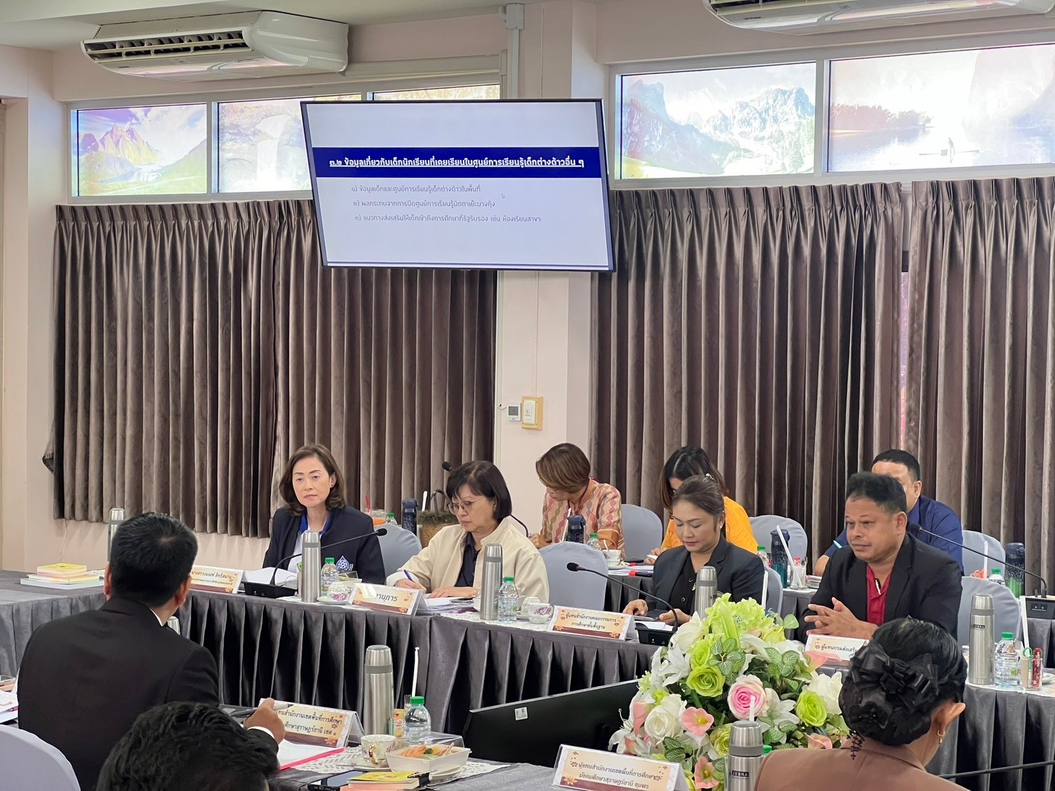 เมื่อวันที่ 6 กุมภาพันธ์ 2568 ที่ห้องประชุมชลธี สำนักงานเขตพื้นที่การศึกษามัธยมศึกษาสุราษฎร์ธานี ชุมพร ตำบลมะขามเตี้ย อำเภอเมืองสุราษฎร์ธานี จังหวัดสุราษฎร์ธานี กรรมการสิทธิมนุษยชนแห่งชาติ และคณะ ประชุมรับฟังข้อมูลสถานการณ์การขับเคลื่อนการจัดการศึกษาขั้นพื้นฐานให้แก่เด็กต่างด้าวในพื้นที่จังหวัดสุราษฎร์ธานี จากผู้แทนสำนักงานคณะกรรมการการศึกษาขั้นพื้นฐาน สำนักงานเขตพื้นที่การศึกษามัธยมศึกษาสุราษฎร์ธานี ชุมพร สำนักงานเขตพื้นที่การศึกษาประถมศึกษาสุราษฎร์ธานี 1-3 สำนักงานศึกษาธิการจังหวัดสุราษฎร์ธานี สำนักงานส่งเสริมการเรียนรู้จังหวัดสุราษฎร์ธานี องค์การบริหารส่วนจังหวัดสุราษฎร์ธานี เทศบาลท่าข้าม และโรงเรียนที่รับเด็กนักเรียนจากศูนย์การเรียนรู้มิตตาเย๊ะบางกุ้งและศูนย์การเรียนรู้เด็กต่างด้าวอื่น เพื่อติดตามข้อมูลเด็กนักเรียนที่เข้าเรียนและที่ยังไม่ได้เข้าเรียนในระบบการศึกษาของไทย รวมทั้งรับฟังปัญหา อุปสรรค ข้อจำกัดในการรับเข้าเรียนหลักสูตรไทย ได้แก่ ภาษาที่ใช้ในการสื่อสาร เอกสารแสดงตน หลักฐานทางการศึกษา อายุของเด็กตามช่วงชั้น ความพร้อมของบุคลากร อาคารสถานที่ รวมทั้งความกังวลใจของผู้ปกครอง ชุมชน และความประสงค์ของผู้ปกครองชาวเมียมา ตลอดจนหารือแนวทางในการจัดการศึกษาที่เหมาะสมกับเด็กกลุ่มนี้ โดยคำนึงถึงมิติต่าง ๆ อาทิ ด้านมนุษยธรรม สิทธิมนุษยชน ความมั่นคง เศรษฐกิจ และสังคม อย่างไรก็ตาม นโยบายเกี่ยวกับการแก้ไขปัญหาดังกล่าวต้องมีความชัดเจน เพื่อให้หน่วยงานในพื้นที่สามารถปฏิบัติได้อย่างถูกต้อง