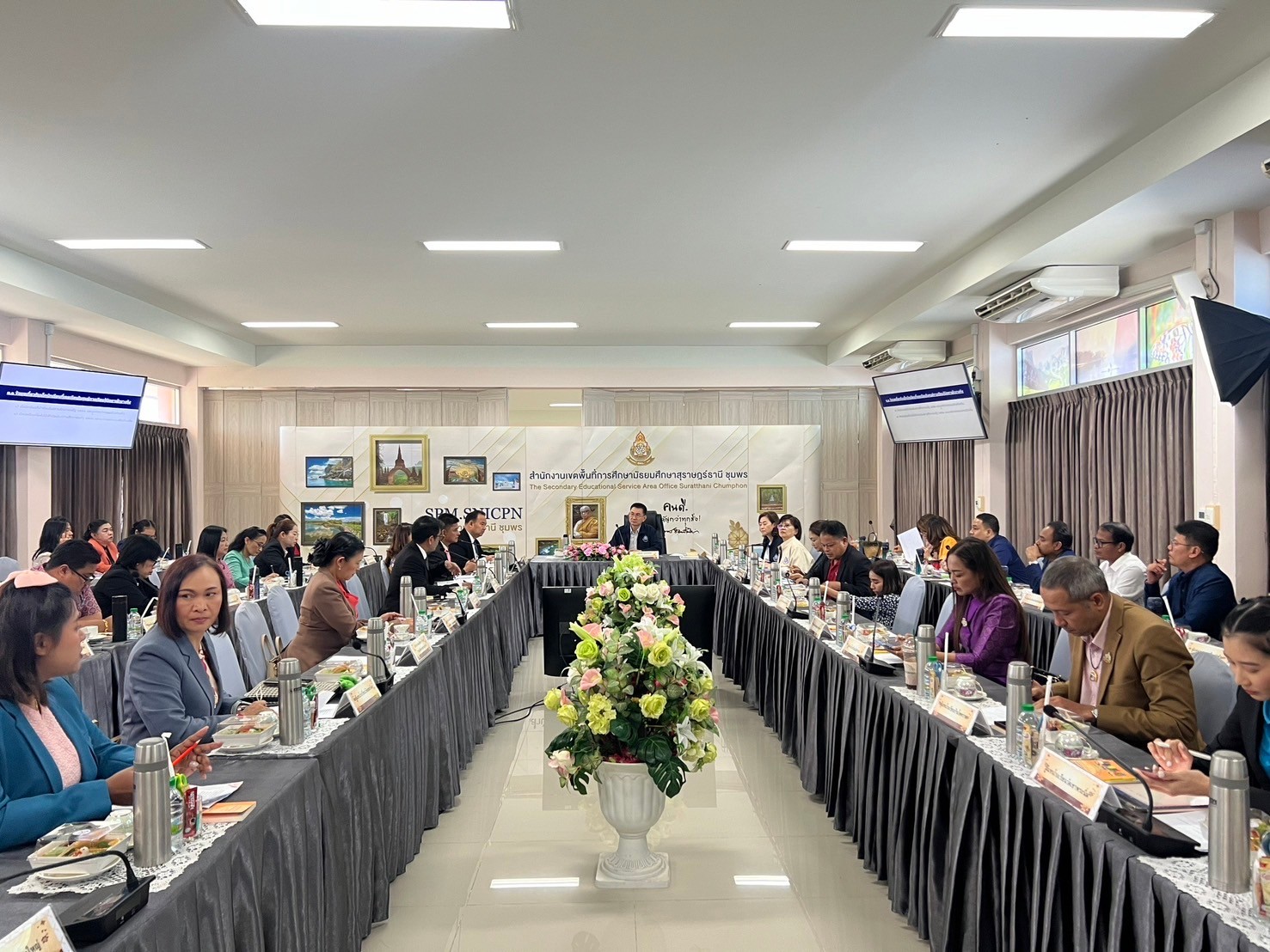 จากนั้น ได้เข้าร่วมประชุม ณ ห้องประชุมศาลาดุริยะประพันธ์ วัดสมหวัง ตำบลวัดประดู่ อำเภอเมืองสุราษฎร์ธานี จังหวัดสุราษฎร์ธานี เพื่อรับฟังข้อมูลสถานการณ์การจัดการศึกษาขั้นพื้นฐานให้แก่เด็กต่างด้าวในพื้นที่ จากผู้ปกครอง นักเรียน เจ้าอาวาสวัดสมหวัง เจ้าอาวาสวัดถนนสุวรรณประดิษฐ์ และผู้เกี่ยวข้อง เพื่อหารือแนวทางในการจัดการศึกษาที่เหมาะสมกับเด็ก รวมทั้งรับฟังข้อมูลเกี่ยวกับปัญหา อุปสรรค ข้อจำกัดในการเข้ารับการศึกษา ความกังวลใจและความประสงค์ของผู้ปกครอง .