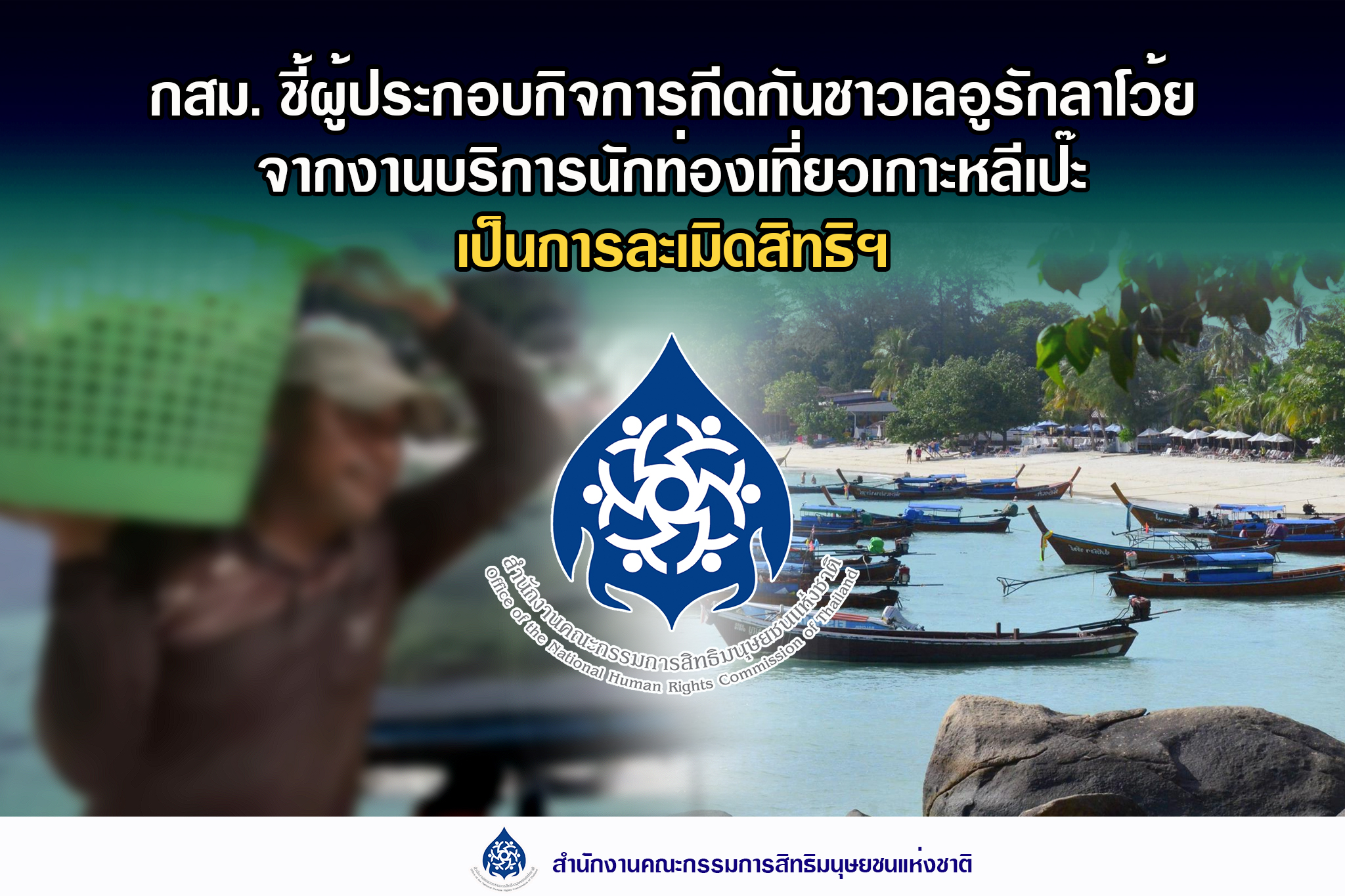 1. กสม. ชี้กรณีผู้ประกอบกิจการกีดกันกลุ่มชาติพันธุ์ชาวเลอูรักลาโว้ยจากงานบริการนักท่องเที่ยวเกาะหลีเป๊ะเป็นการละเมิดสิทธิฯ แนะอุทยานแห่งชาติตะรุเตา และสำนักงานเจ้าท่าสตูล แก้ไขปัญหา