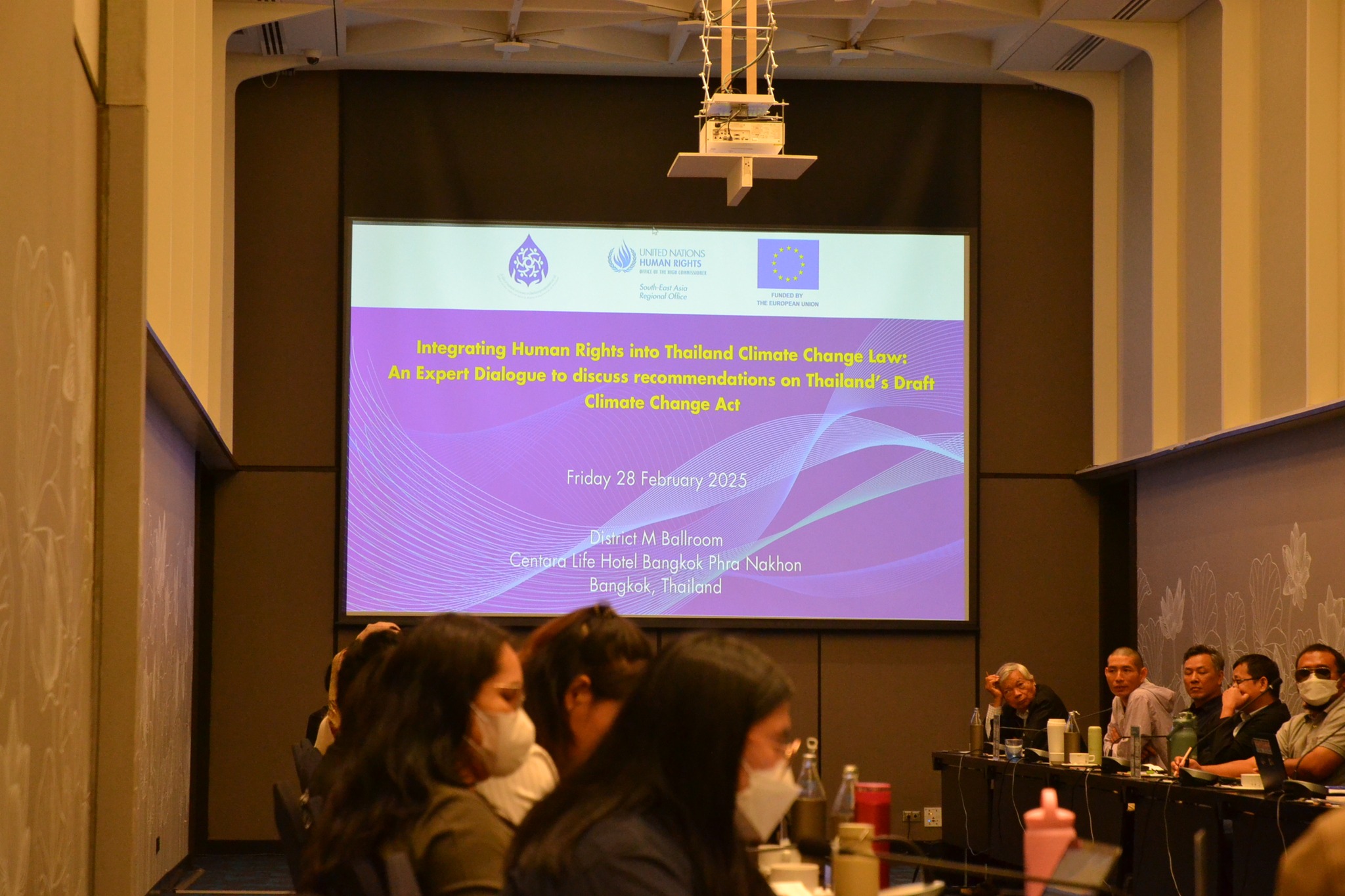 วันที่ 28 กุมภาพันธ์ 2568 นางสาวศยามล ไกยูรวงศ์ กรรมการสิทธิมนุษยชนแห่งชาติ เปิดการสัมมนาระดับผู้เชี่ยวชาญเพื่อหารือข้อเสนอแนะต่อร่างพระราชบัญญัติการเปลี่ยนแปลงสภาพภูมิอากาศ จัดโดย สำนักงาน กสม. ร่วมกับสำนักงานข้าหลวงใหญ่สิทธิมนุษยชนแห่งสหประชาชาติ (OHCHR) เพื่อหารือเกี่ยวกับการบูรณาการที่อิงหลักสิทธิมนุษยชนเข้ากับการพัฒนากฎหมาย นโยบาย และมาตรการเพื่อแก้ไขวิกฤตการเปลี่ยนแปลงสภาพภูมิอากาศ โดยมีผู้แทนองค์กรภาคประชาสังคม นักวิชาการ และกลุ่มชาติพันธุ์ เข้าร่วมแลกเปลี่ยนความคิดเห็นราว 40 คน ณ โรงแรมเซ็นทารา ไลฟ์ บางกอก พระนคร