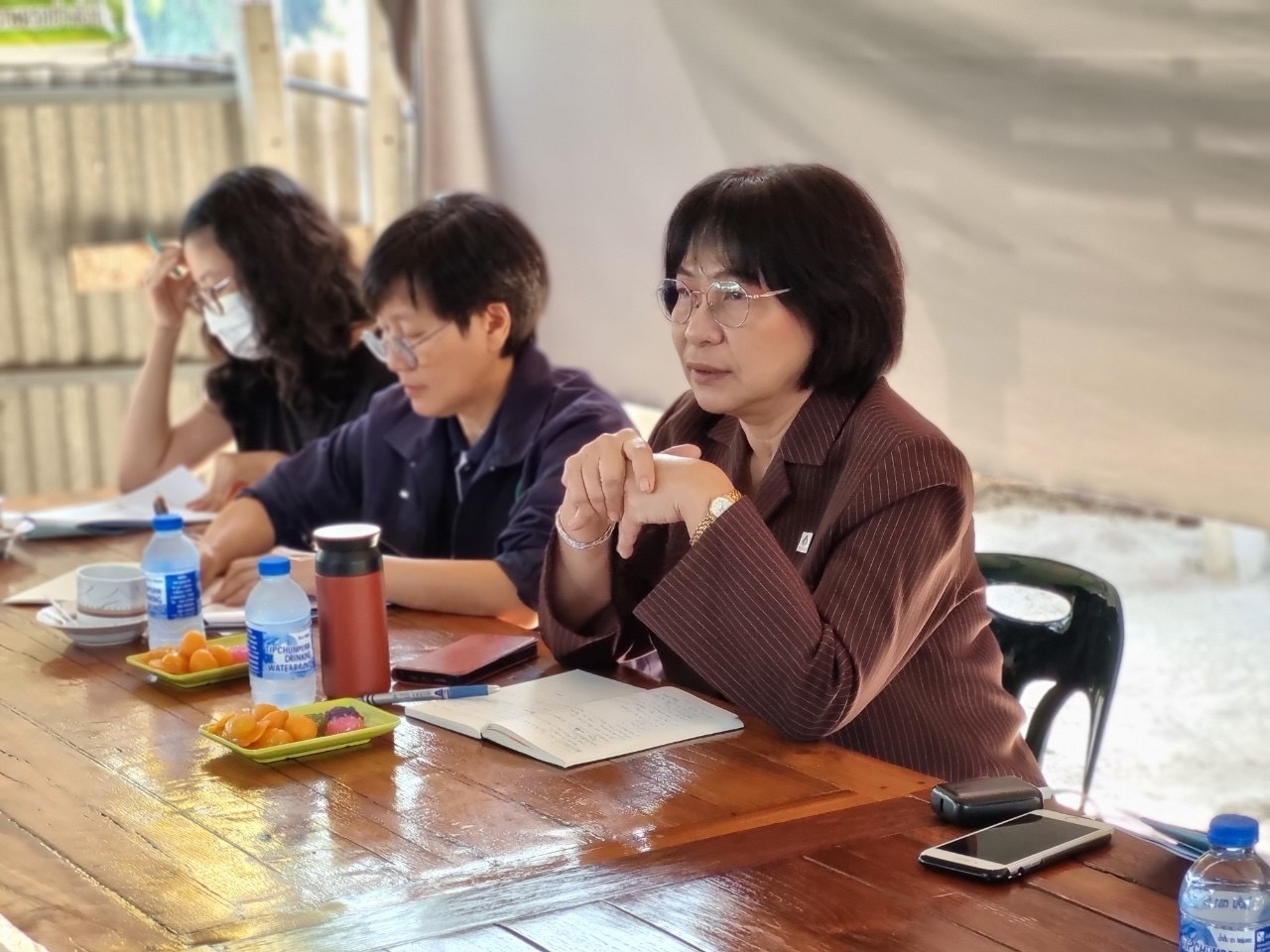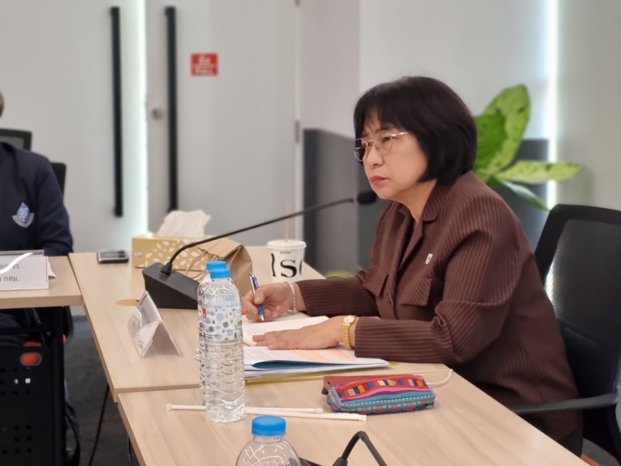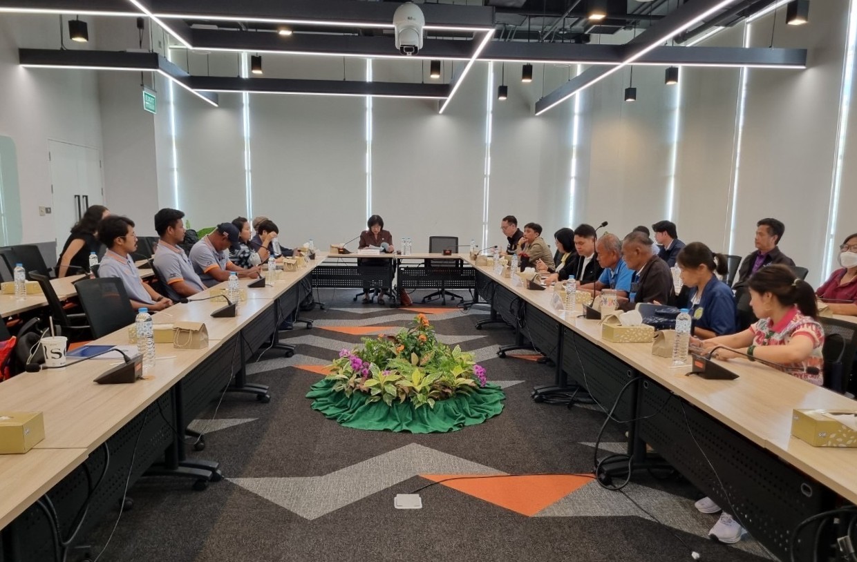 ต่อมาเวลา 13.30 น. ที่ห้องประชุม BRI-206 ชั้น 2 อาคารวิจัยและนวัตกรรมกระบวนการชีวภาพ (BRI) มหาวิทยาลัยเทคโนโลยีพระจอมเกล้าธนบุรี วิทยาเขตบางขุนเทียน กรุงเทพมหานคร กรรมการสิทธิมนุษยชนแห่งชาติและคณะ ประชุมหารือร่วมกับผู้แทนปลัดกรุงเทพมหานคร ผู้แทนผู้อำนวยการเขตบางขุนเทียน ผู้แทนประมงพื้นที่กรุงเทพมหานคร และเกษตรกรเพาะเลี้ยงสัตว์น้ำที่ได้รับผลกระทบ โดยที่ประชุมได้แลกเปลี่ยนข้อมูลสภาพปัญหา การดำเนินการแก้ไขปัญหาที่ได้ดำเนินการไปแล้ว ข้อจำกัดและอุปสรรคในการดำเนินการ ข้อคิดเห็นและข้อเสนอแนะ และหารือร่วมกันถึงแนวทางในการเยียวยาเกษตรกรผู้ได้รับผลกระทบ และแนวทางการแก้ไขปัญหาเพื่อลดการระบาดของปลาหมอคางดำอย่างเร่งด่วนและต่อเนื่อง